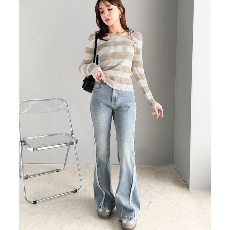 例えば、ハイウエストのデニムと合わせれば、カジュアルながらも洗練された雰囲気に。