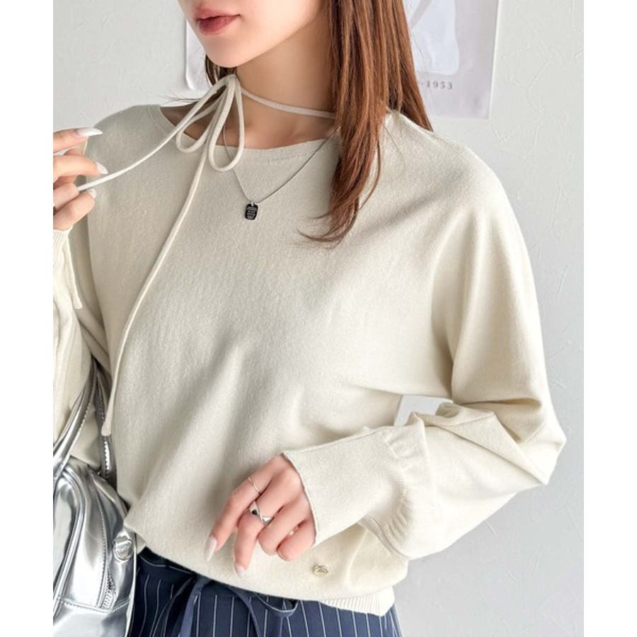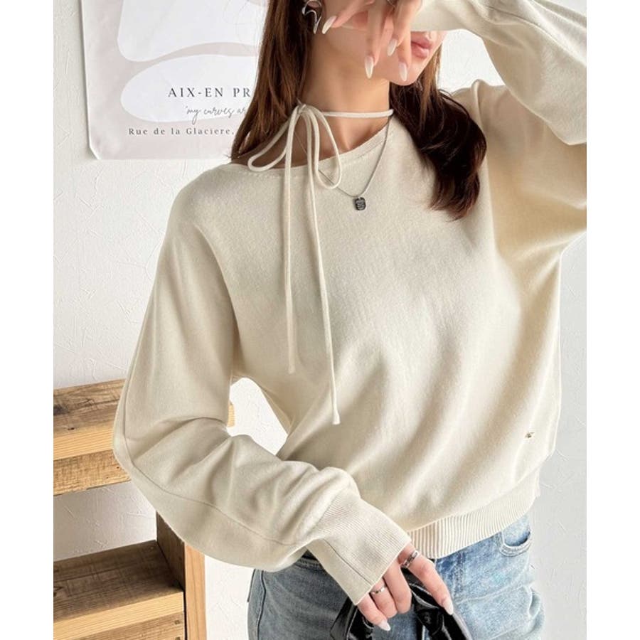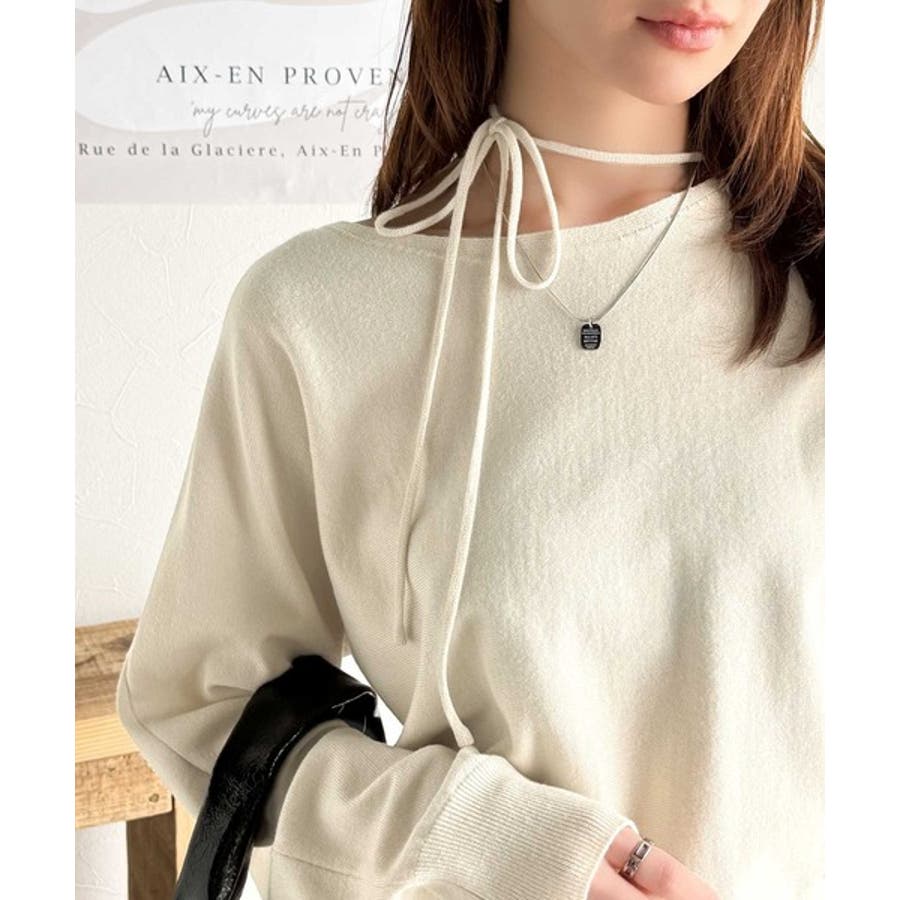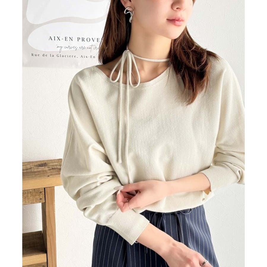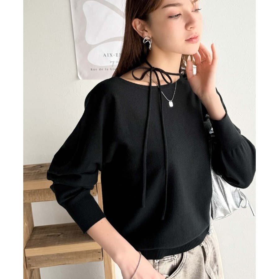 女性らしさ満点のリボンデザインがポイントのドルマンニット。