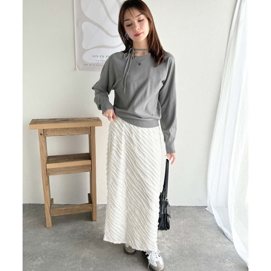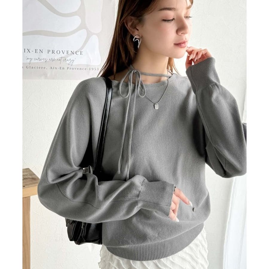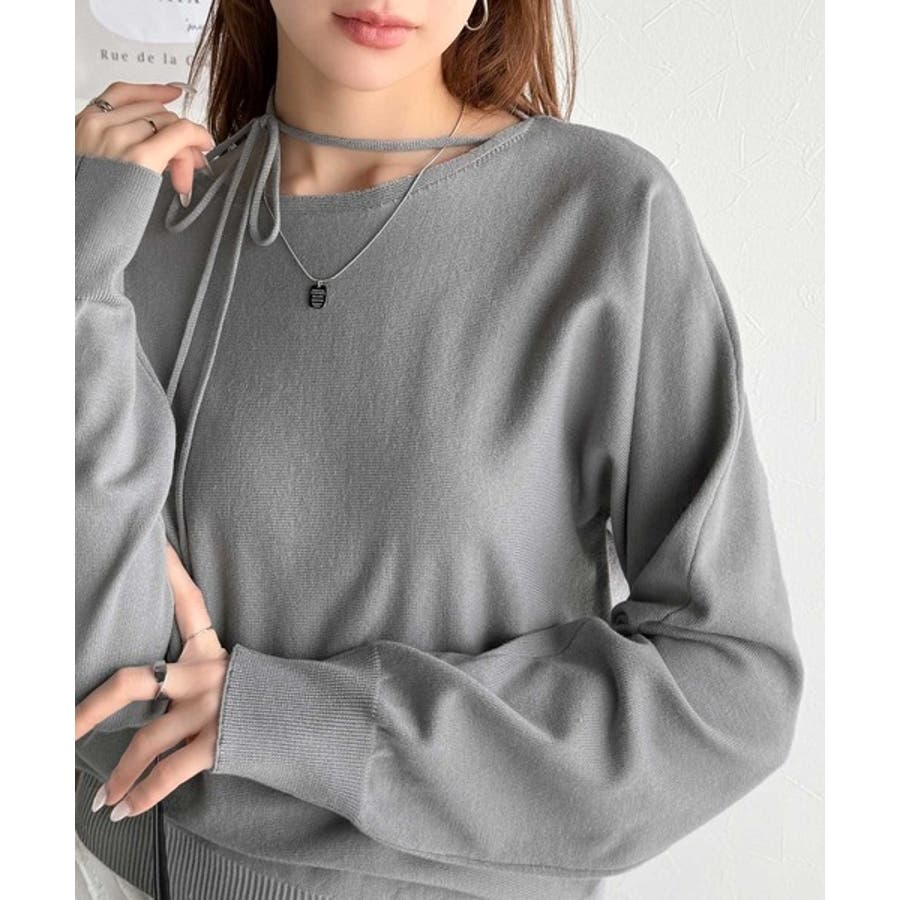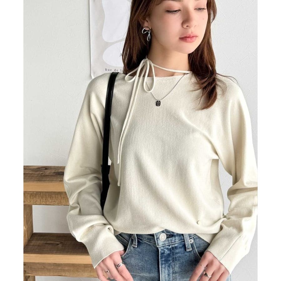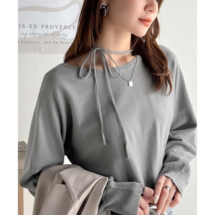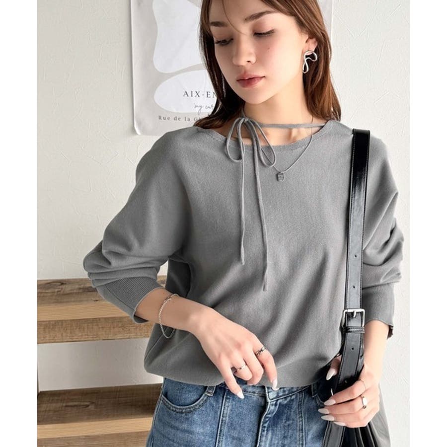 女性らしさ満点のリボンデザインがポイントのドルマンニット。