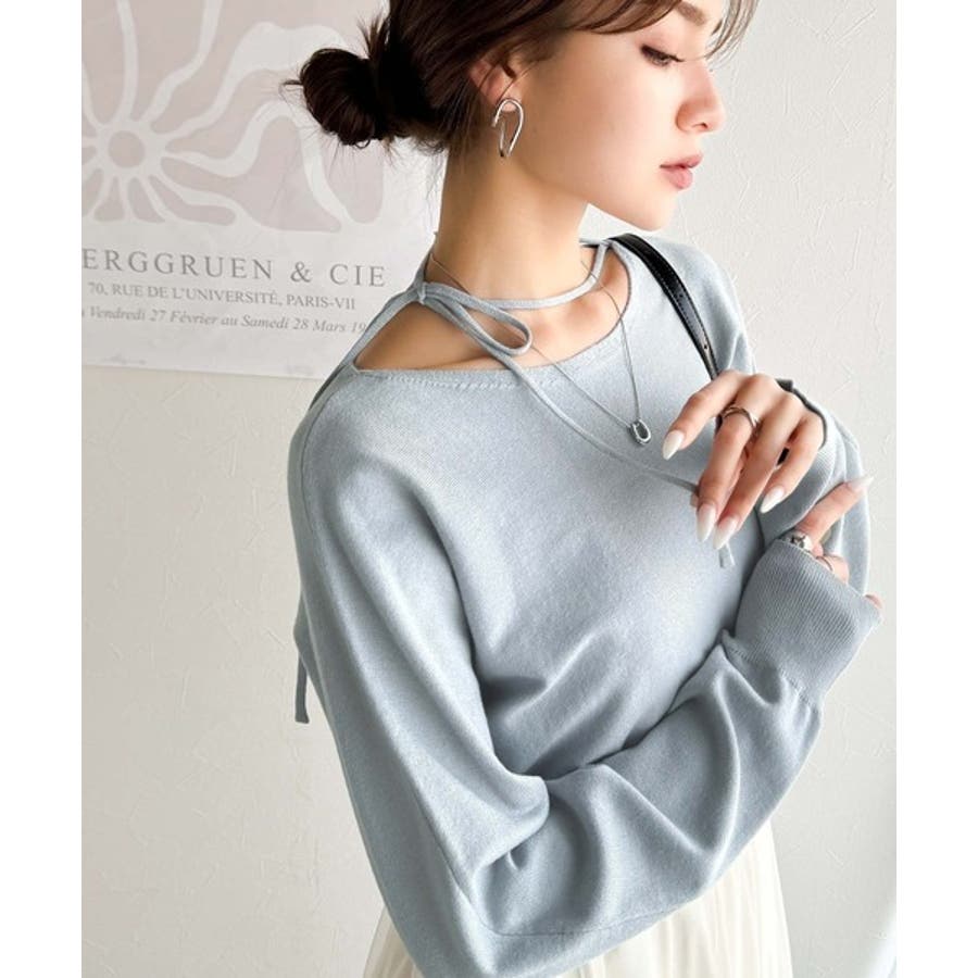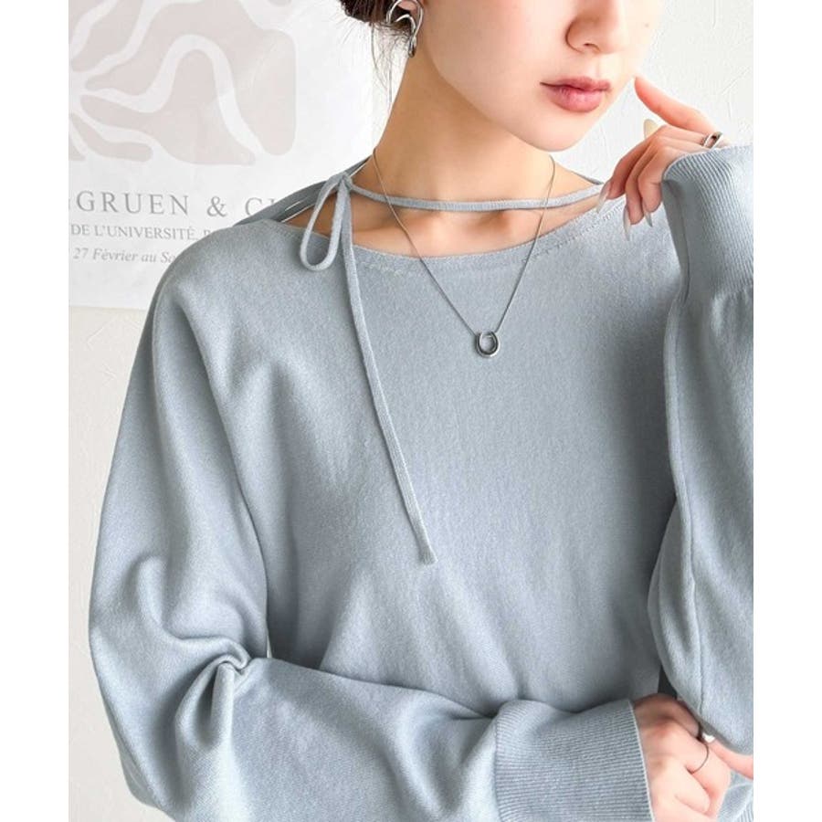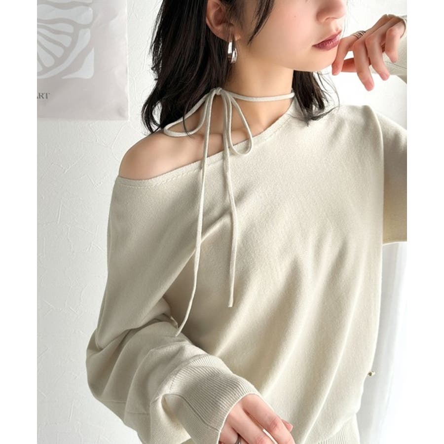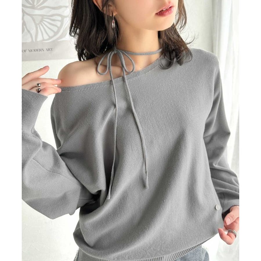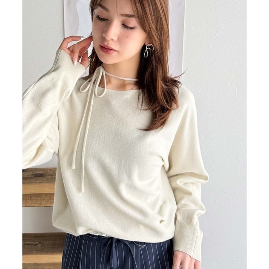 【mily bilet】レディライクなあざとニット。オフショル2WAYリボン紐付…