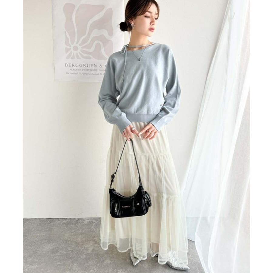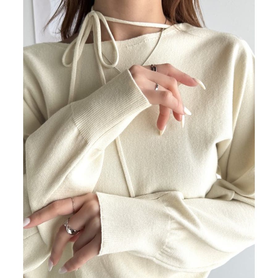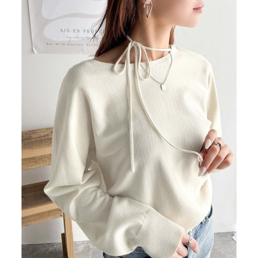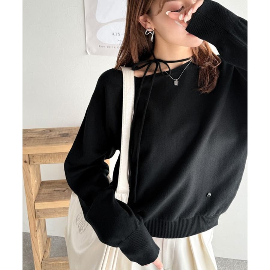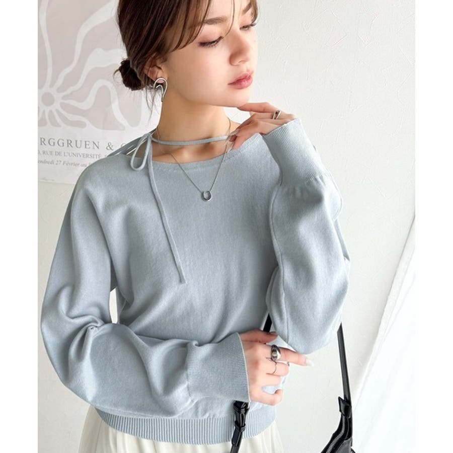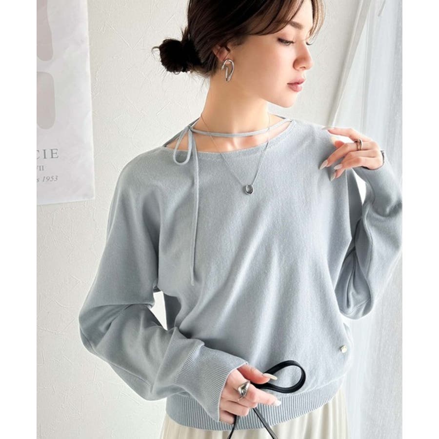 【mily bilet】レディライクなあざとニット。オフショル2WAYリボン紐付…