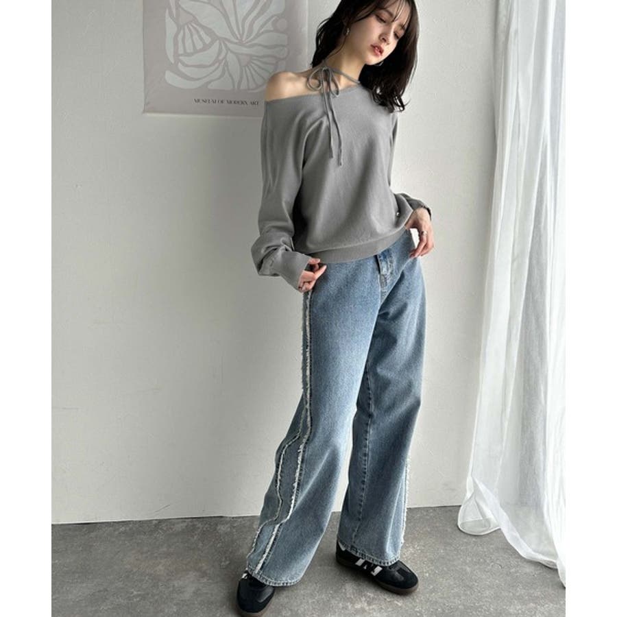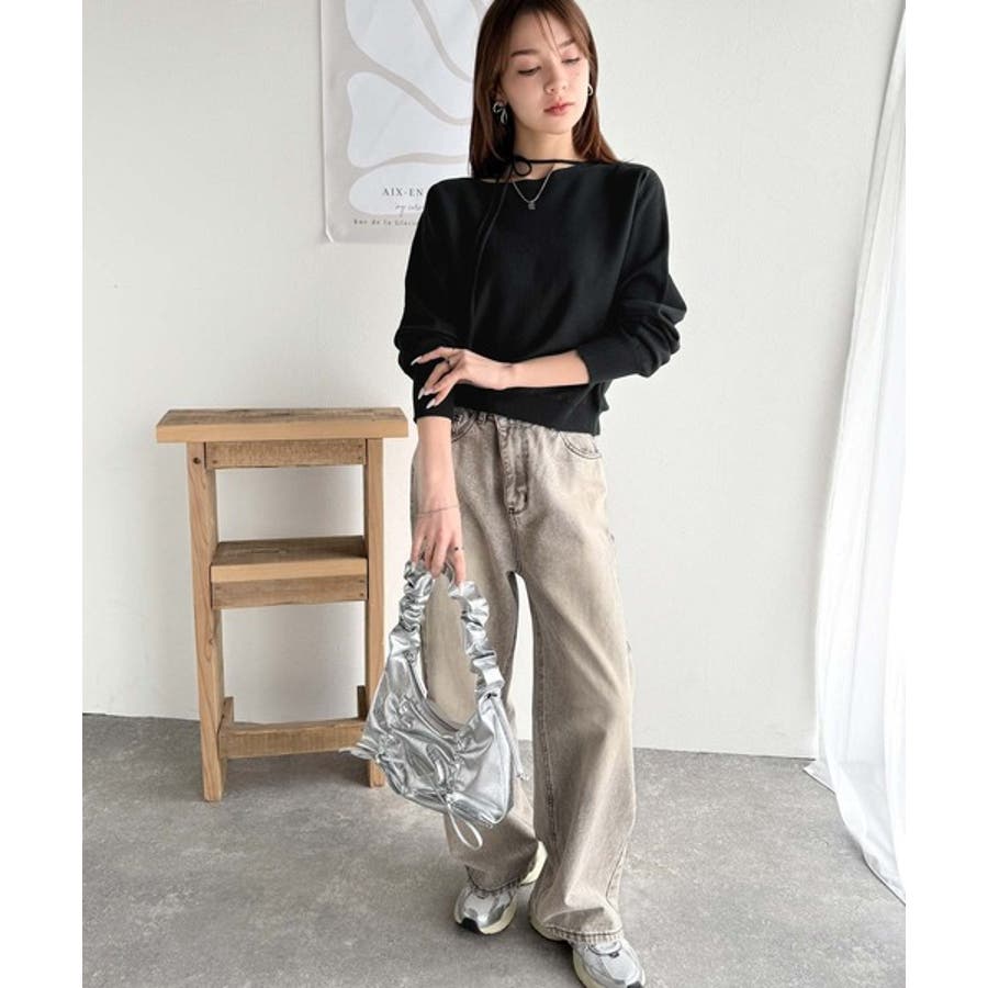 首元が広めのデザインなのでオフショルダーとしても着用できます。