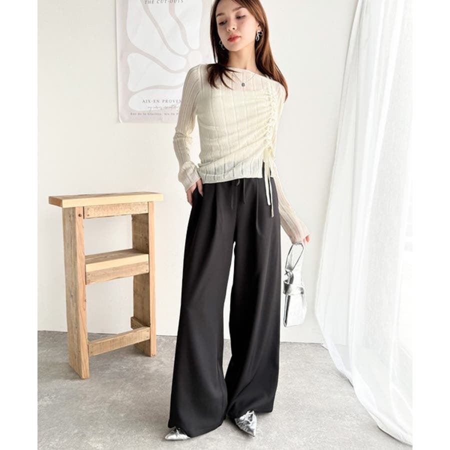 フロントのドロストリボンでシルエットを自由に調整でき、