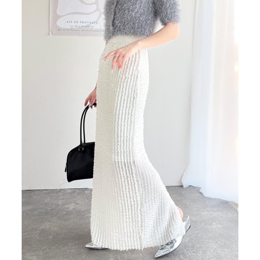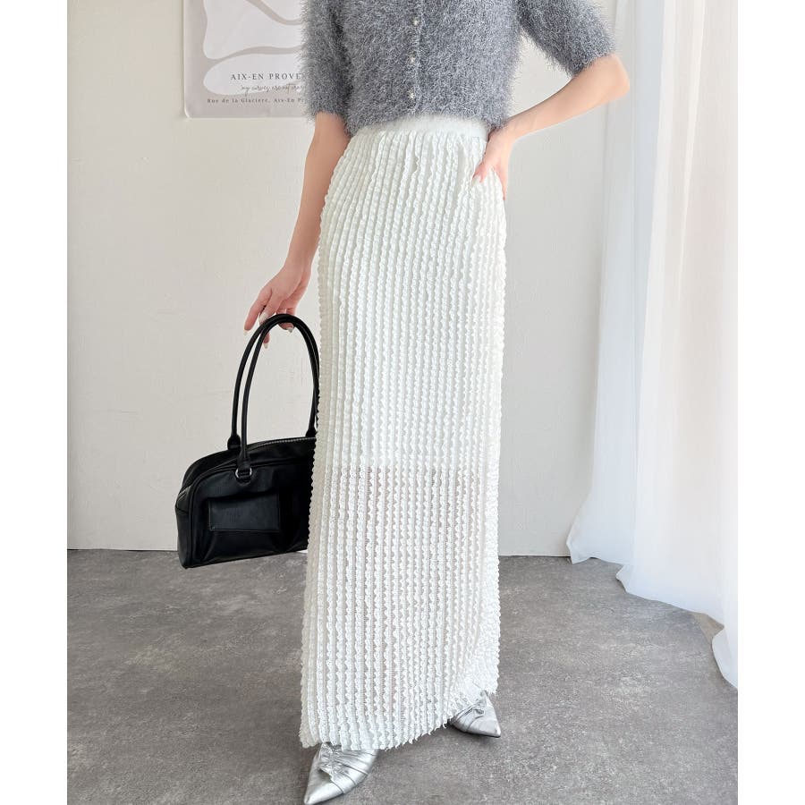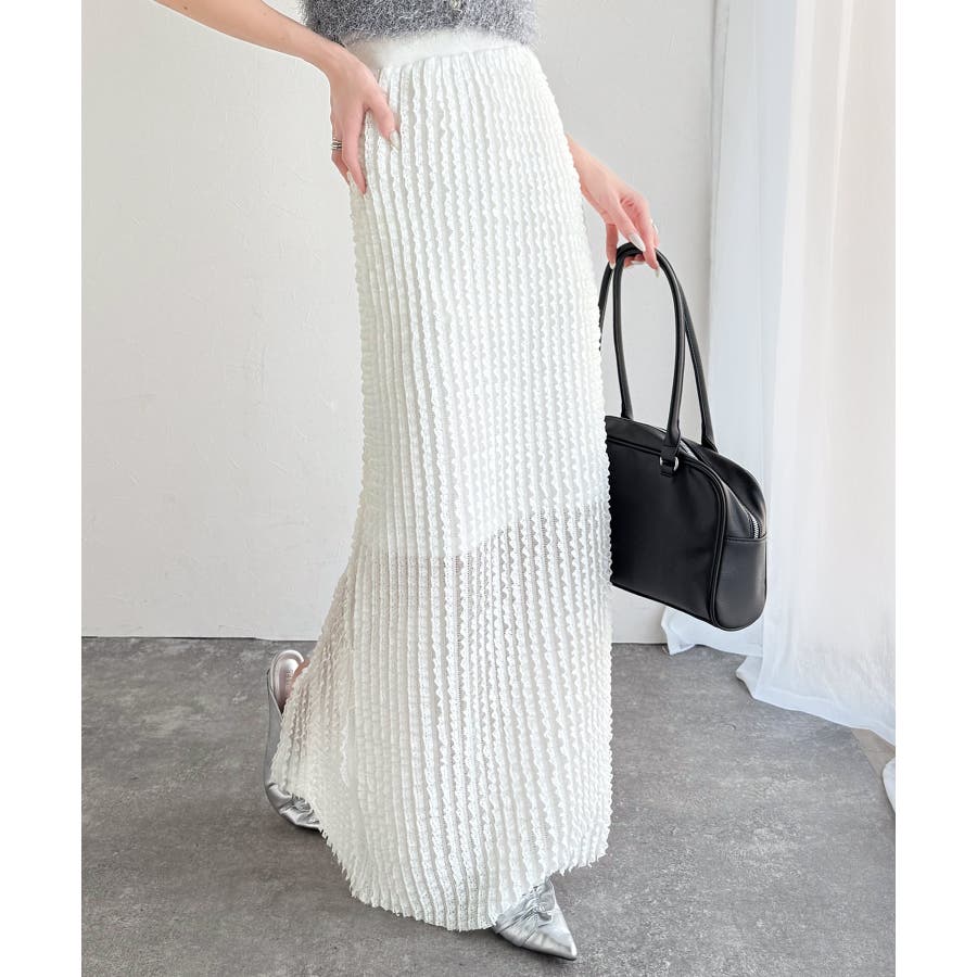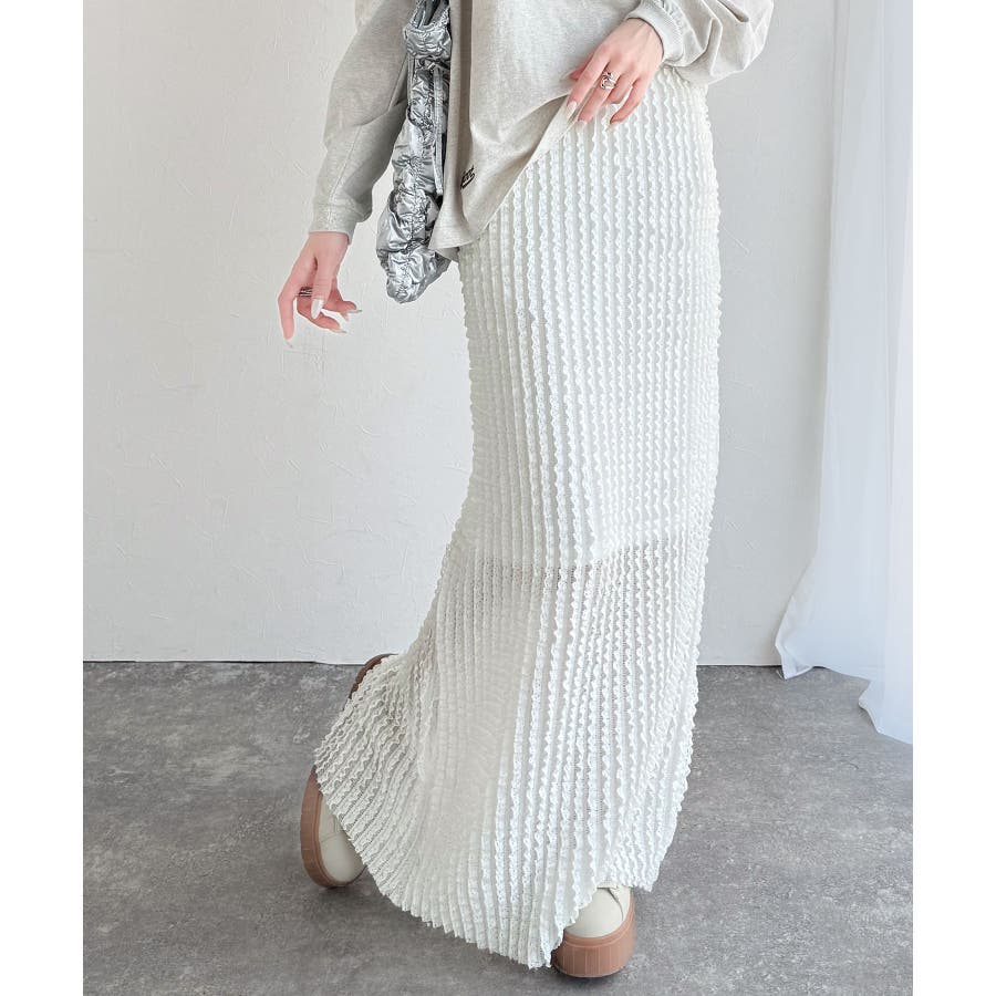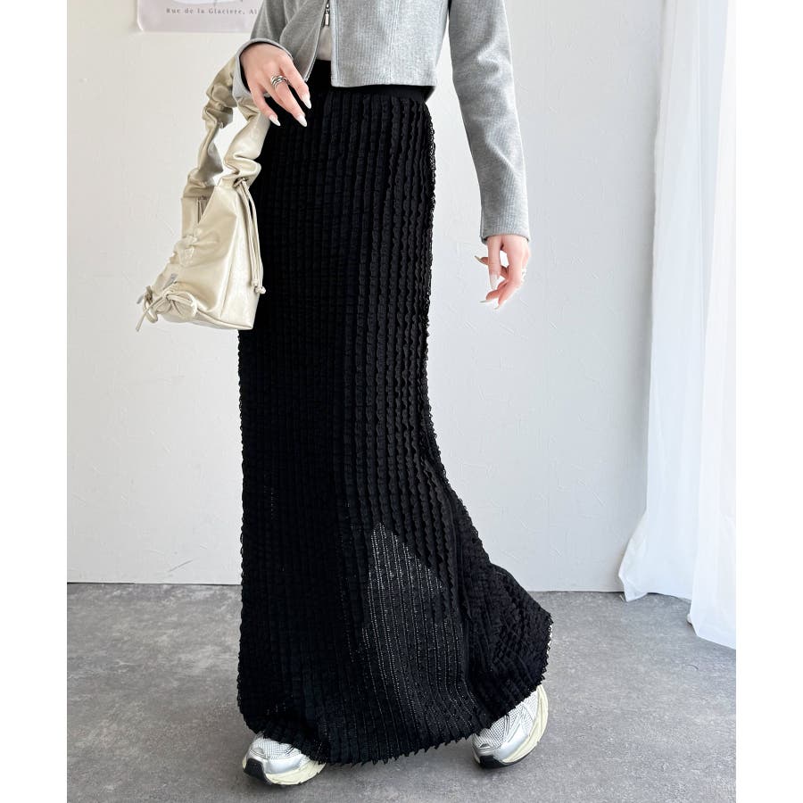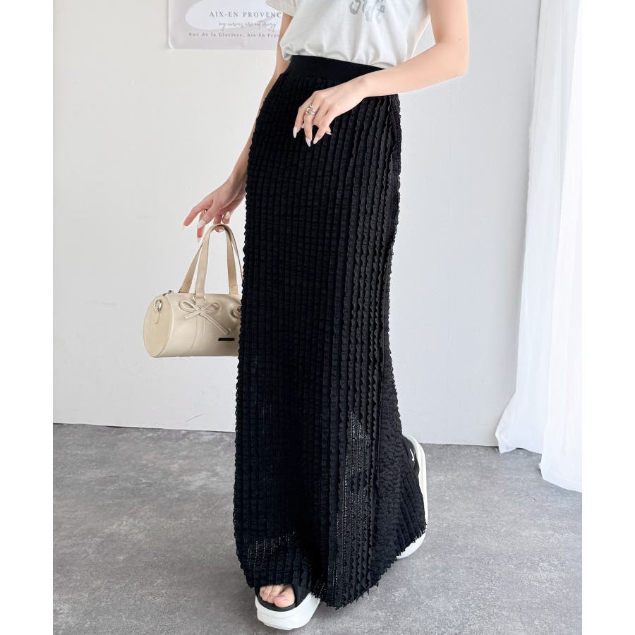 【mily bilet】華やかで魅力的。プチフリルIラインスカート(ロング丈)