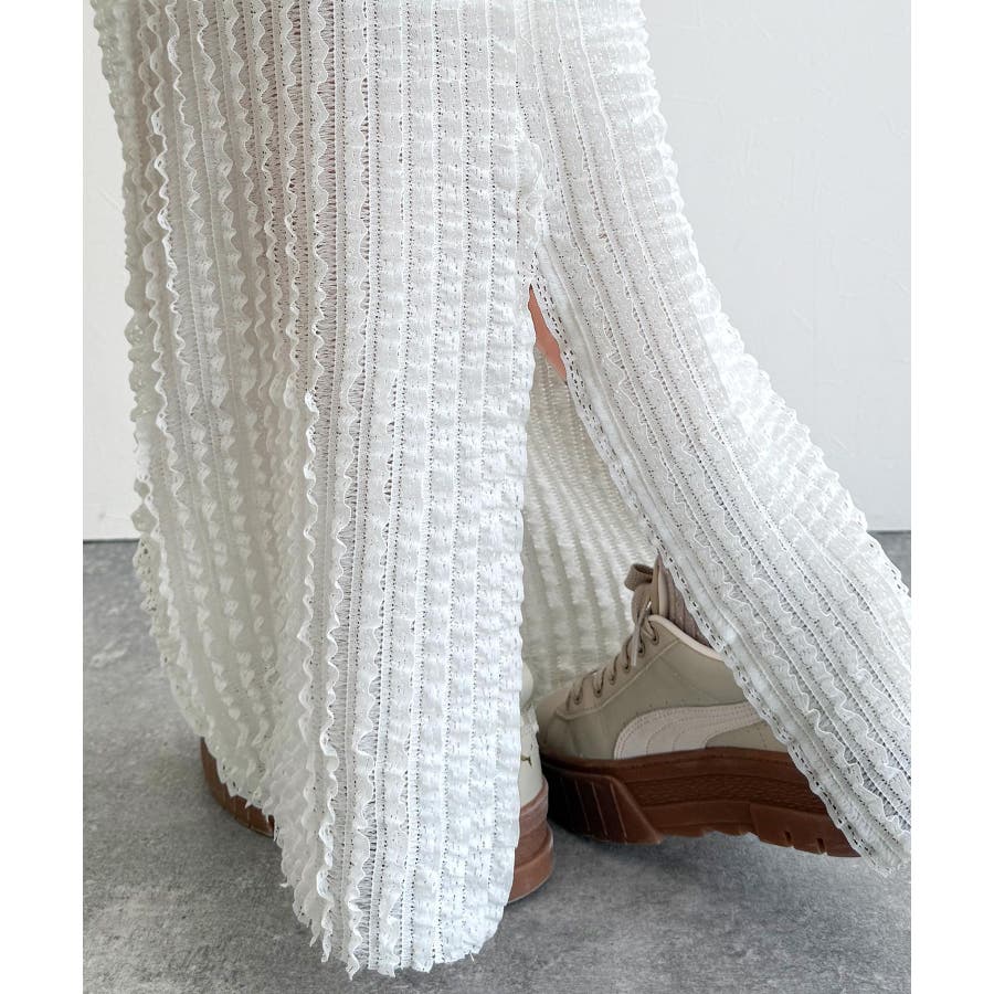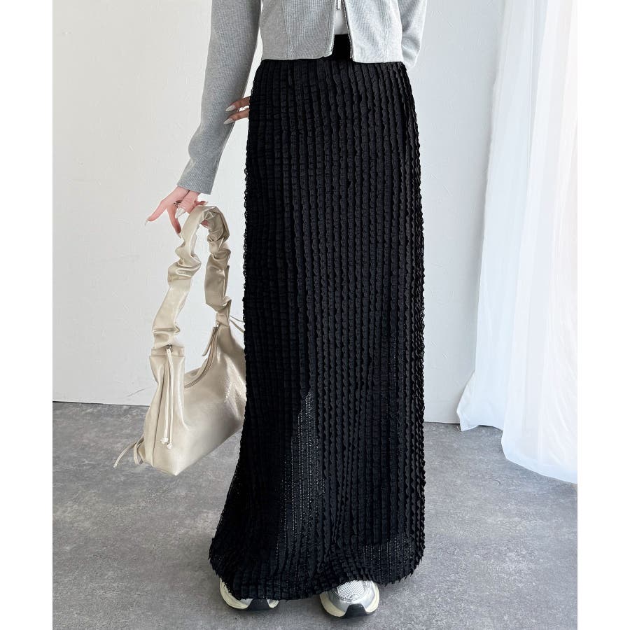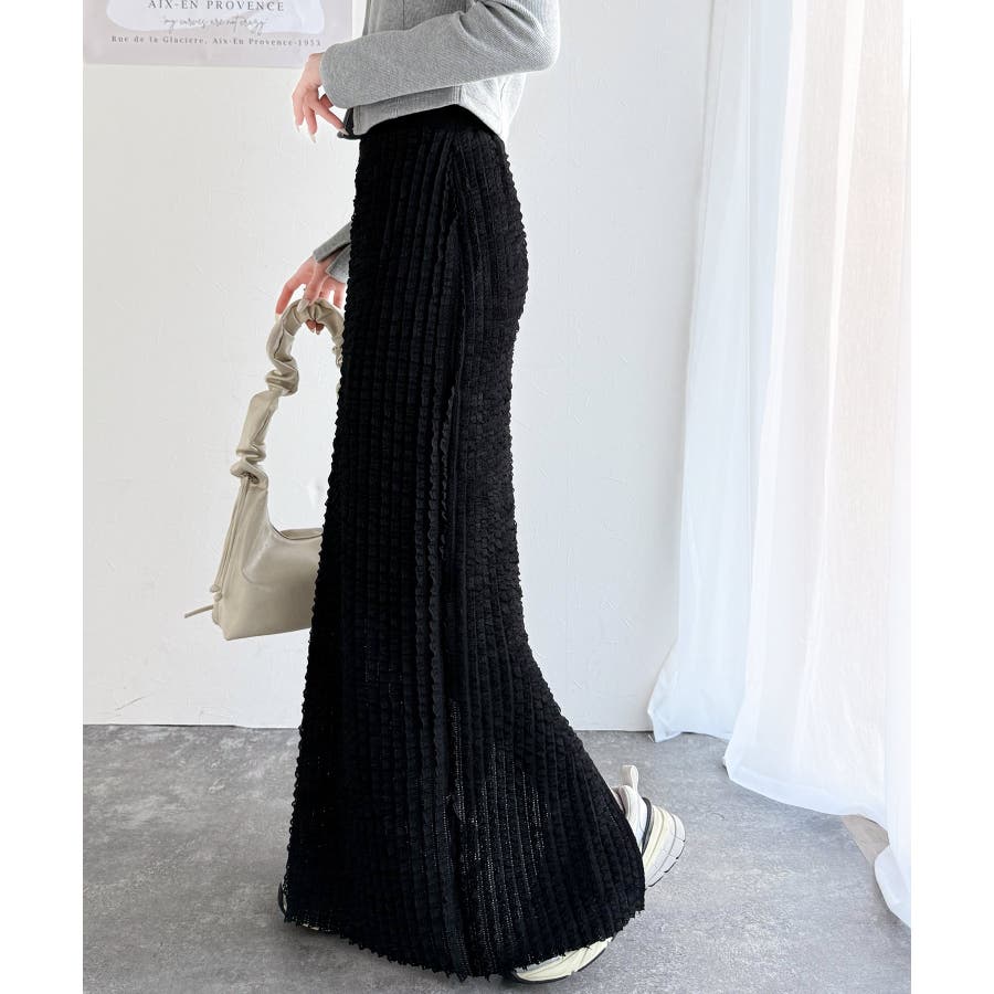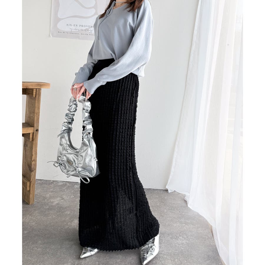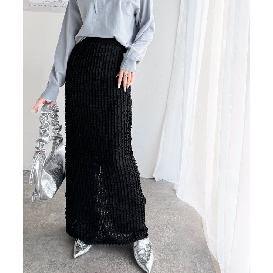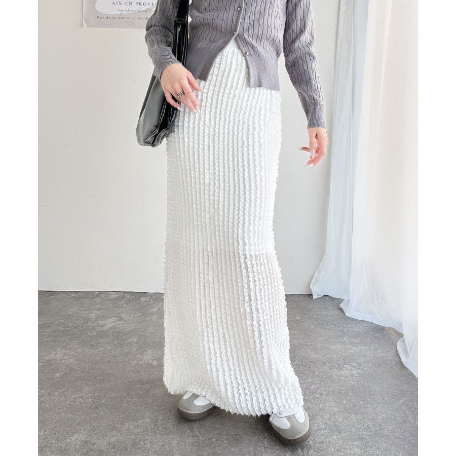 【mily bilet】華やかで魅力的。プチフリルIラインスカート(ロング丈)