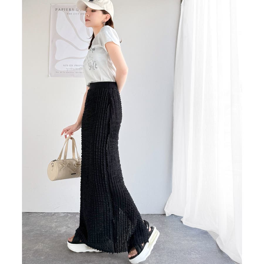 春は軽やかなカラーで爽やかに、夏は涼しげに見せることで、シーズンごとのスタイルが楽しめるのもこのスカートの魅力です。