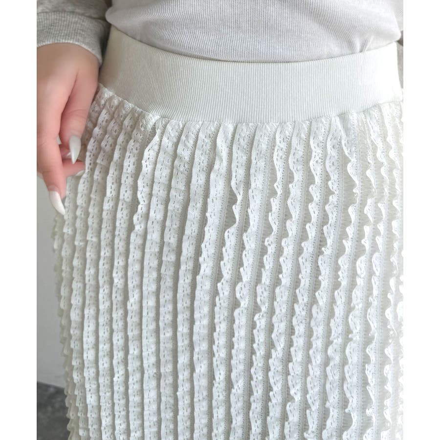 繊細なフリルが花びらのように重なるプチフリルIラインスカート。