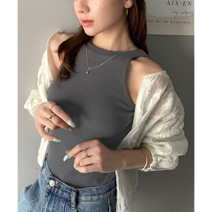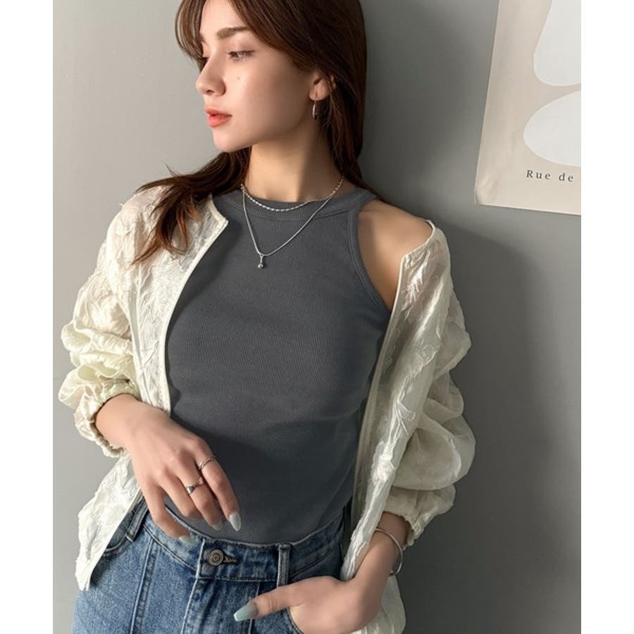 今季はオフショルダートップスのなかにレイヤードするのがおすすめ♪