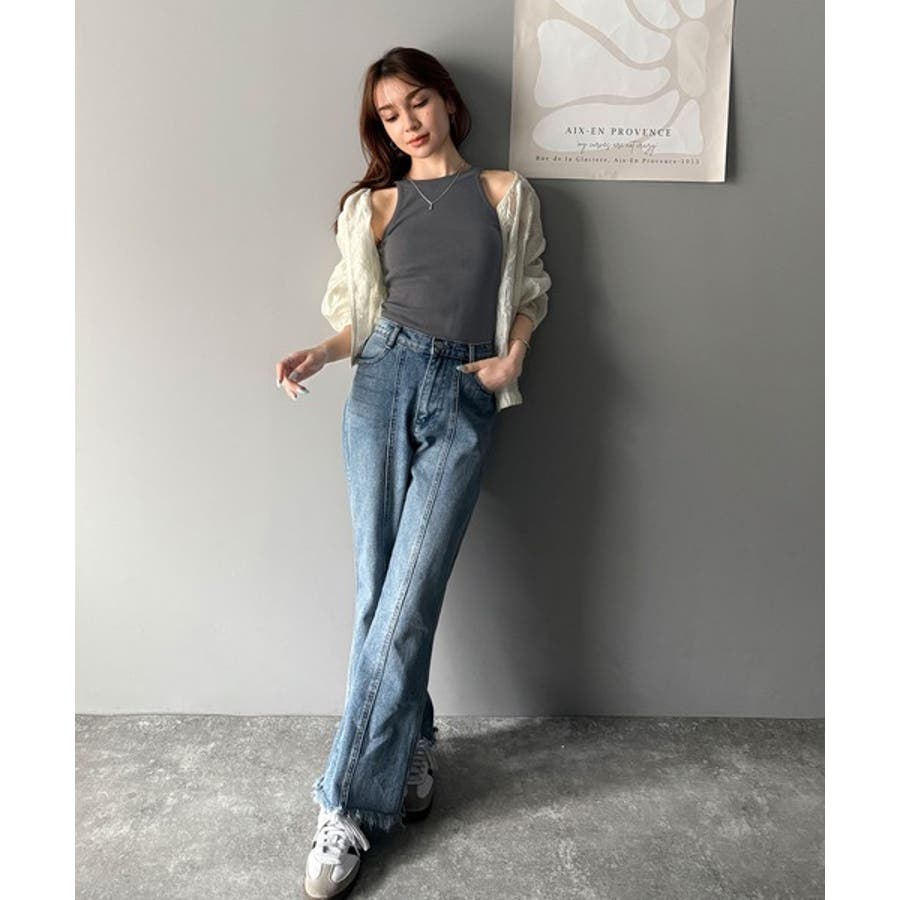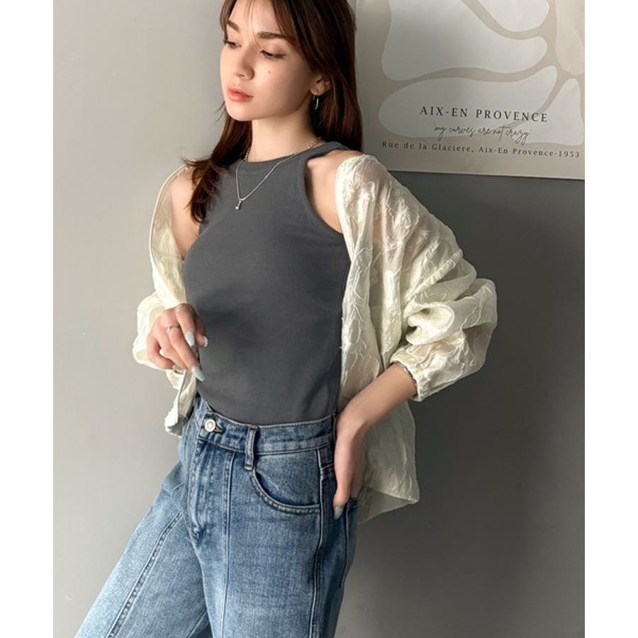 バンドカラーシャツやシアーブラウスを合わせたお出かけコーデとも相性抜群です♪