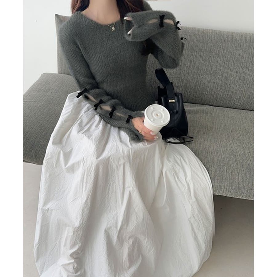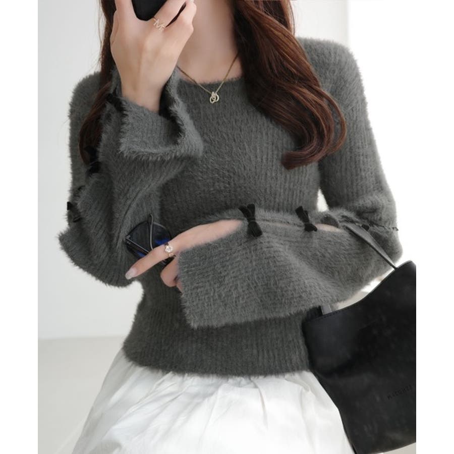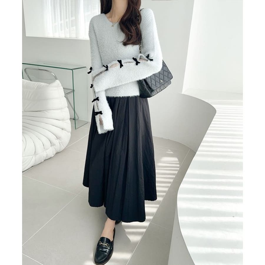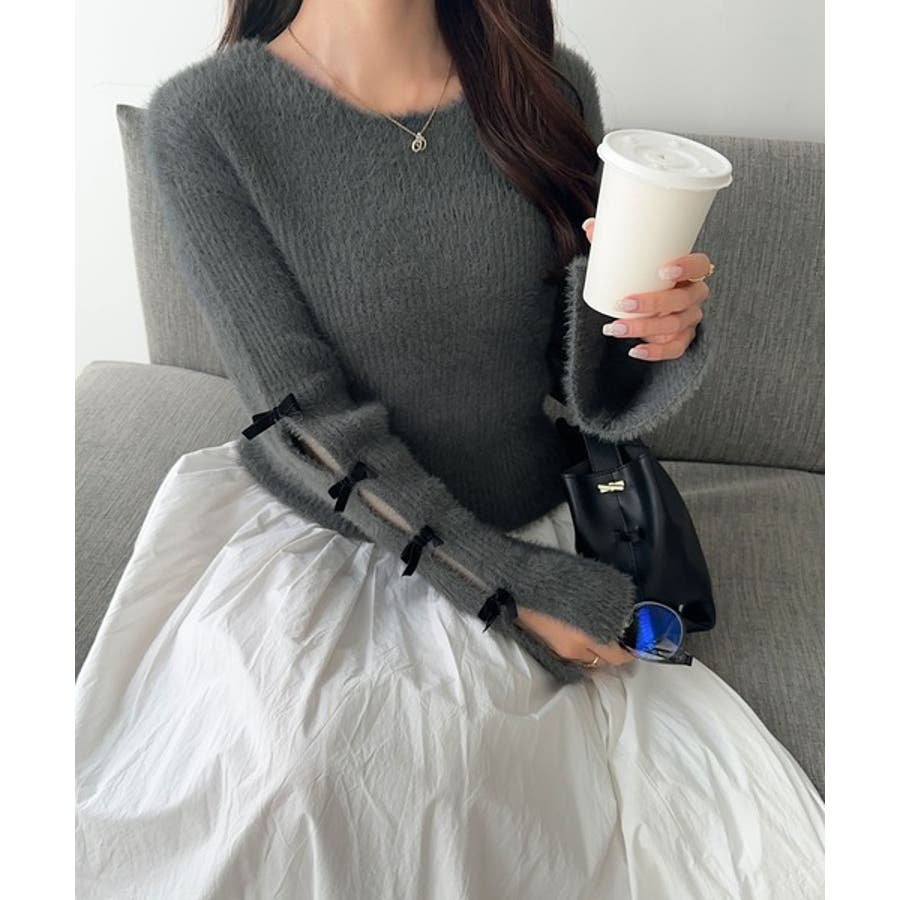 【mily bilet】袖リボン使いフェザーシャギーリブニット