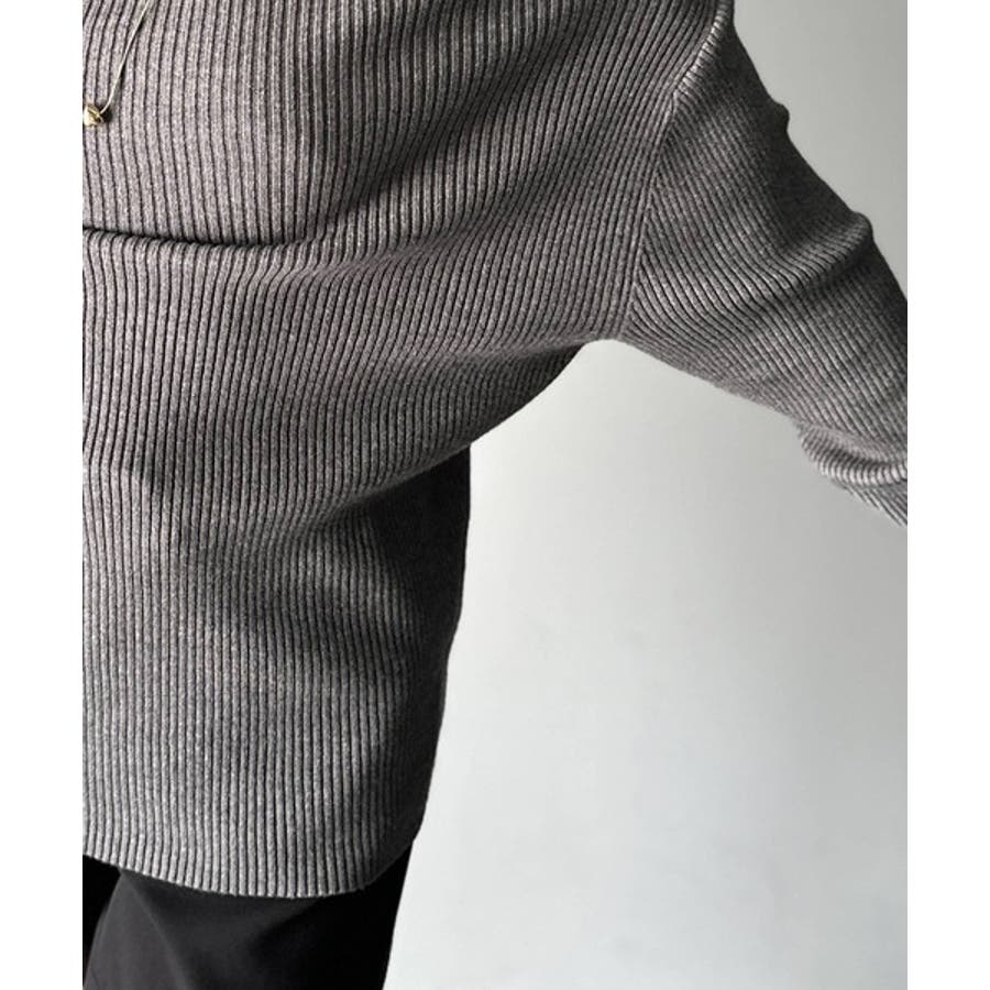 首元にドレープを効かせたデザインが特徴のリブニットトップス。
