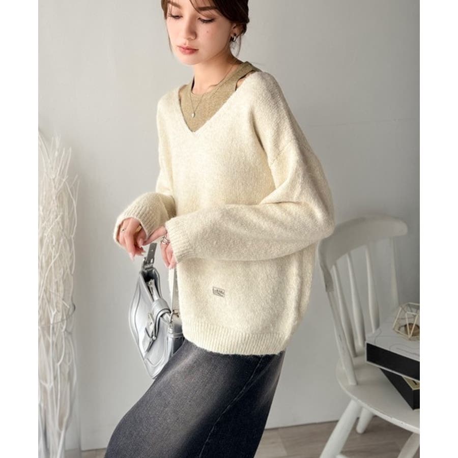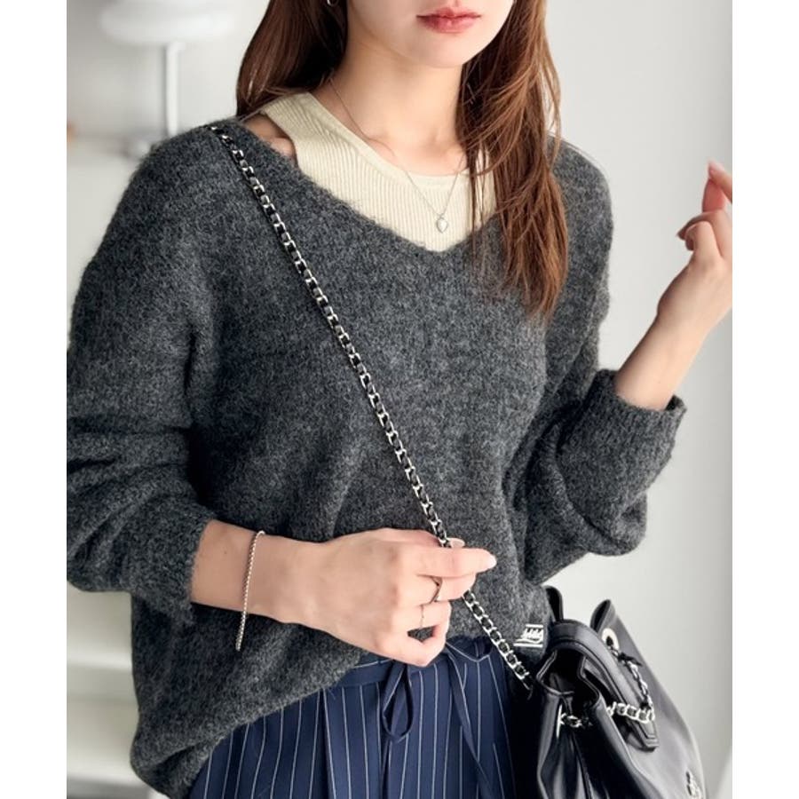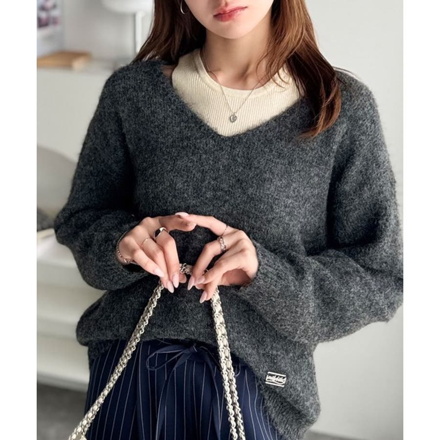 ふんわりとした柔らかな毛足のニットは、着心地も抜群で、ドロップショルダーのデザインがリラックスした雰囲気を演出します。