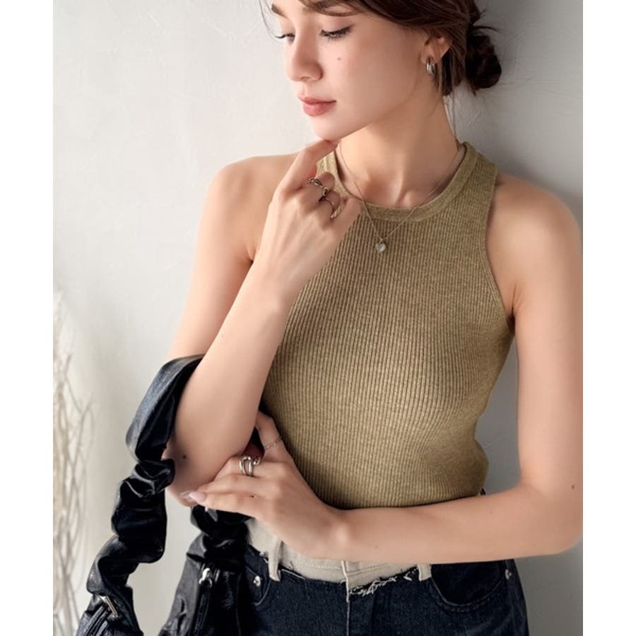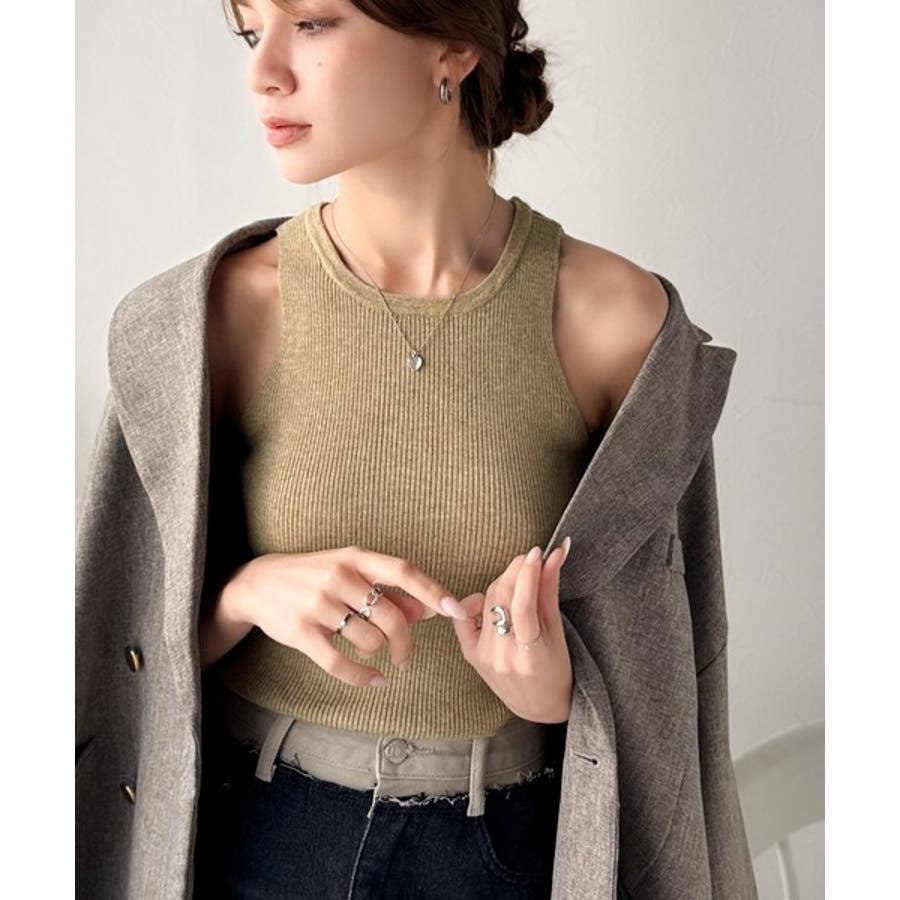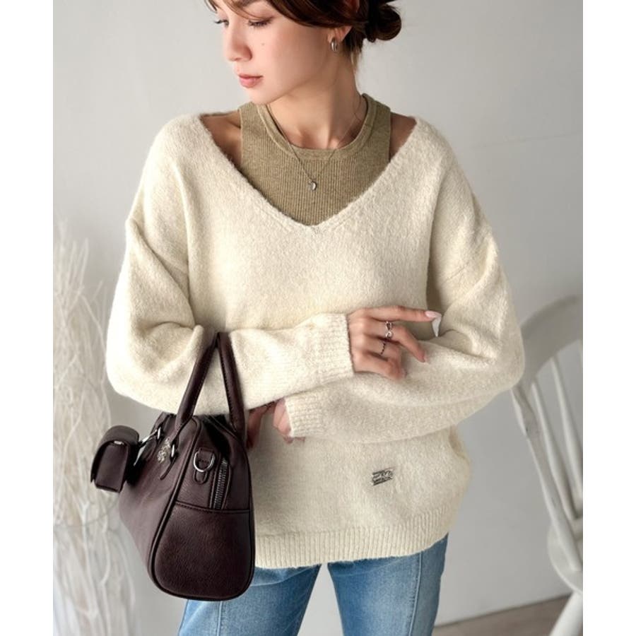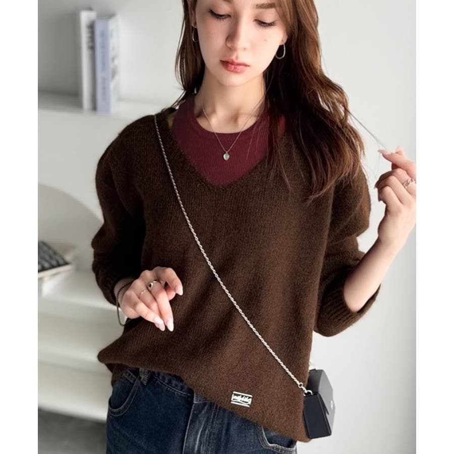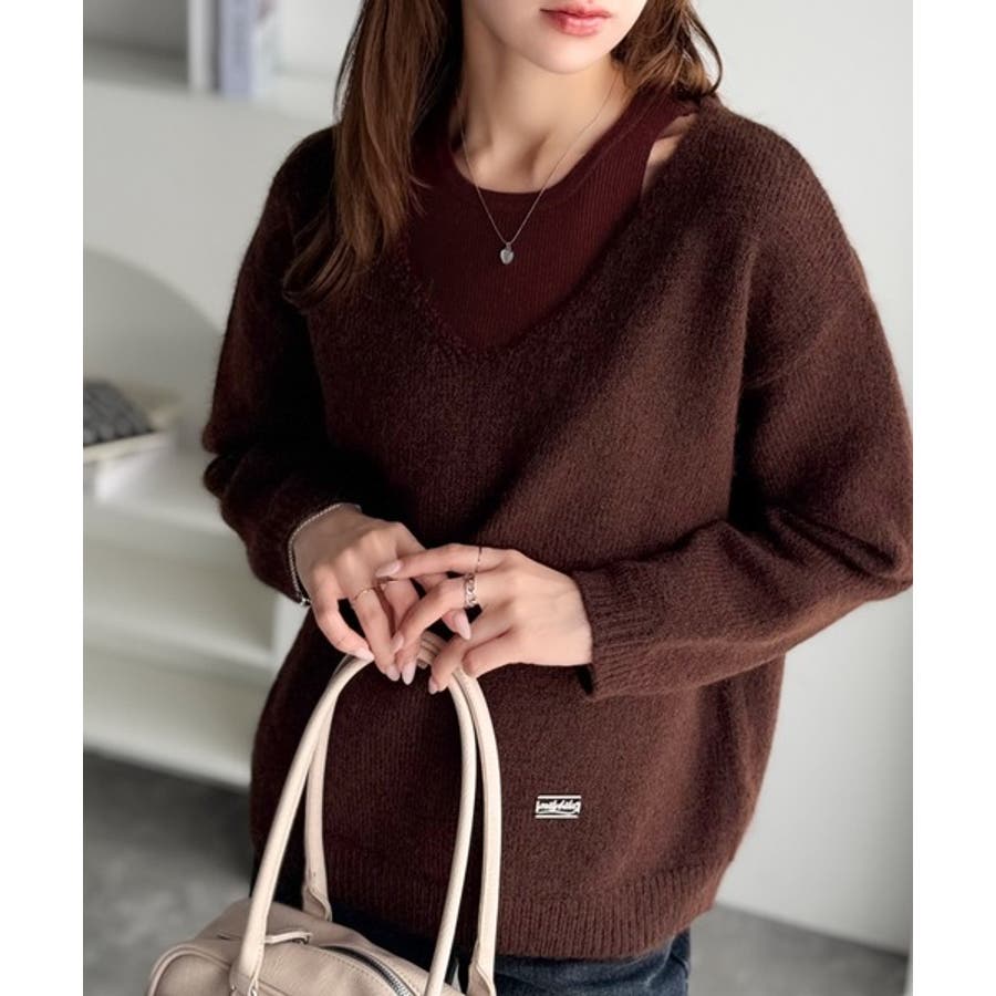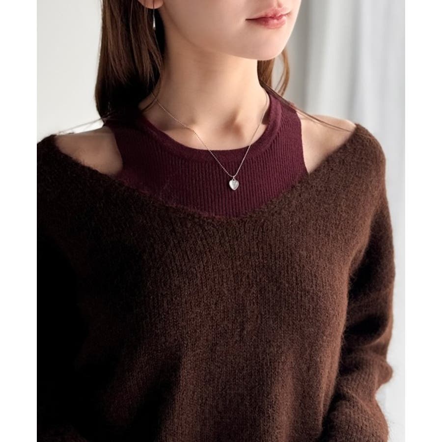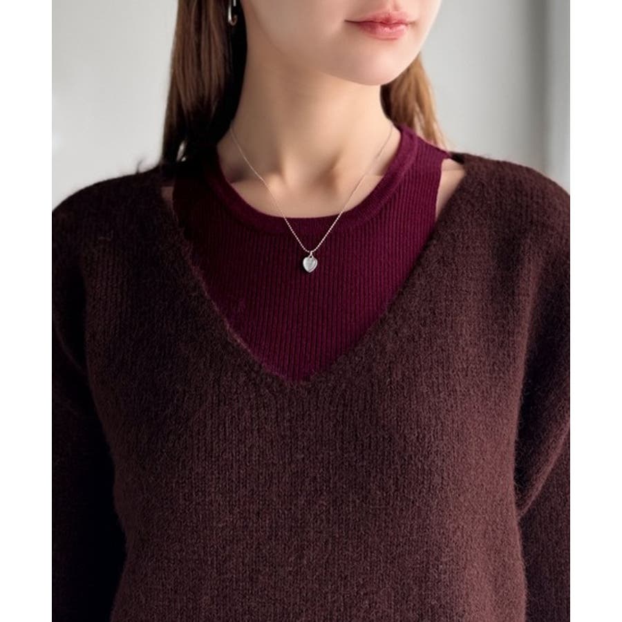 【mily bilet】洗練されたレイヤードスタイル!プレート使い異素材ニットレ…