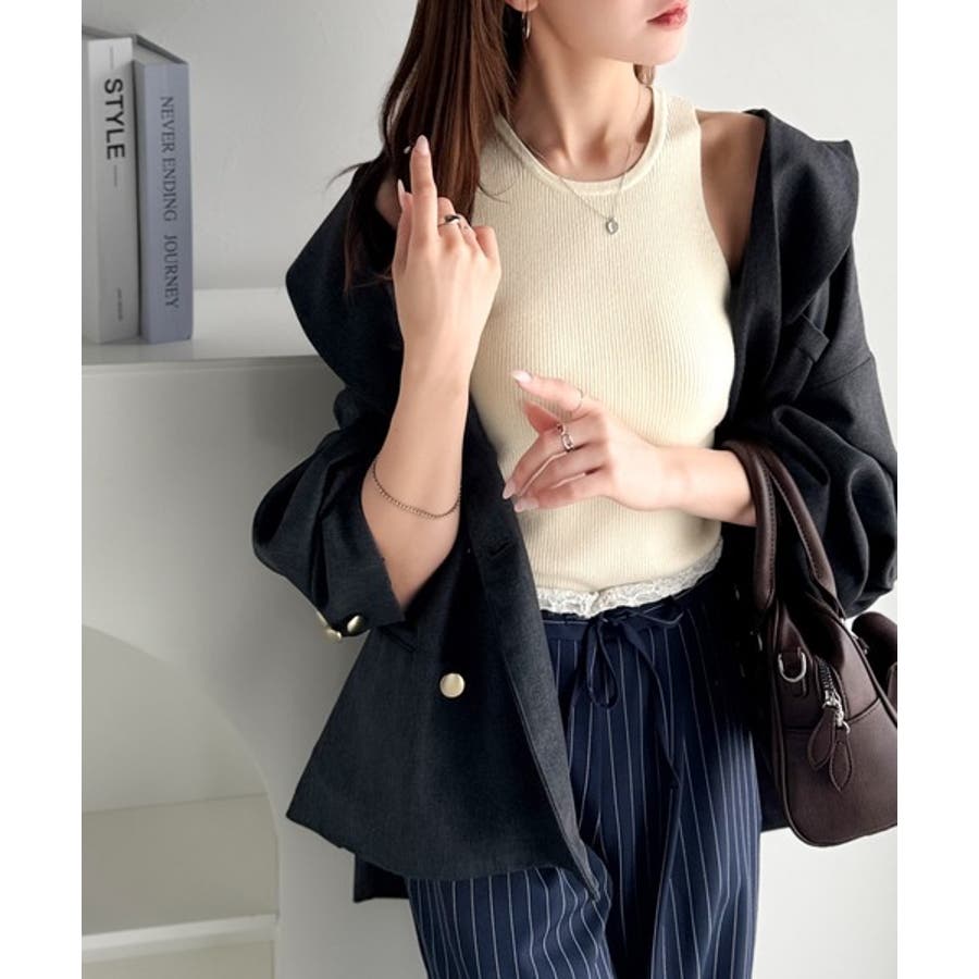 ニットとリブインナーがセパレートになっているため、コーディネートの幅が広がります。