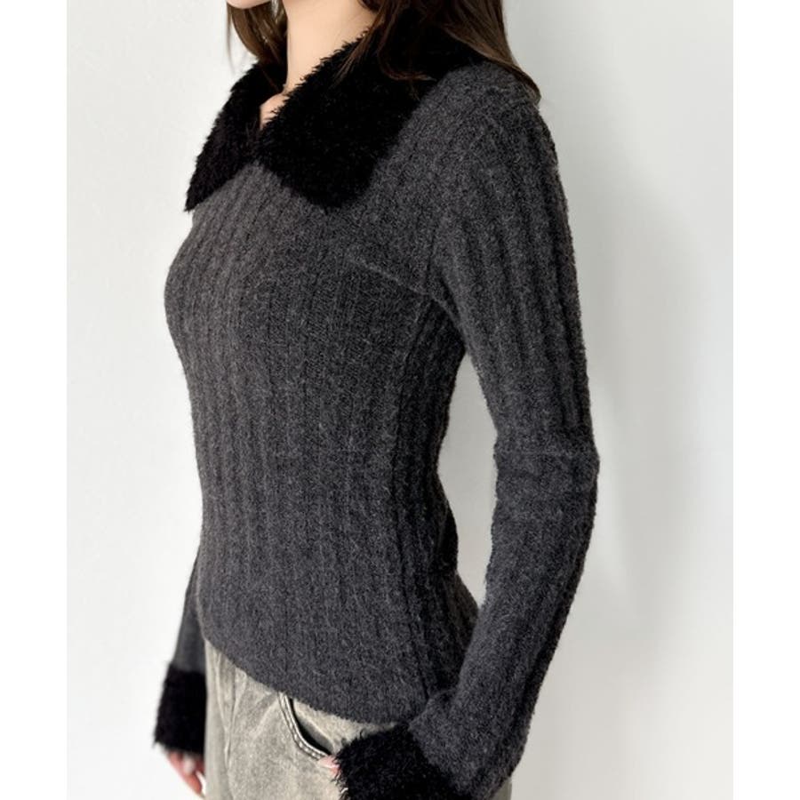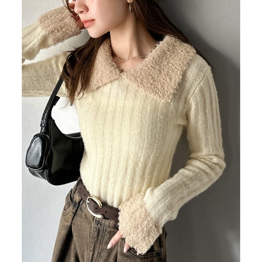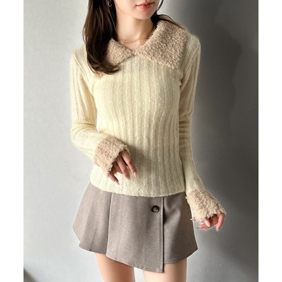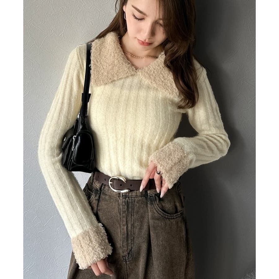 【mily bilet】可愛さ、ふわり2倍増し◎配色ファー衿リブニットプルオーバ…
