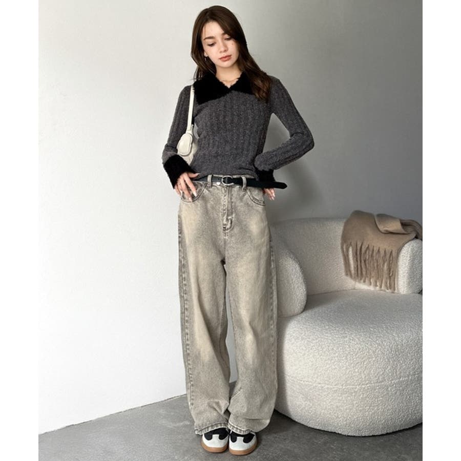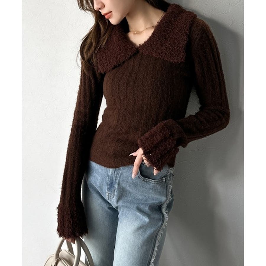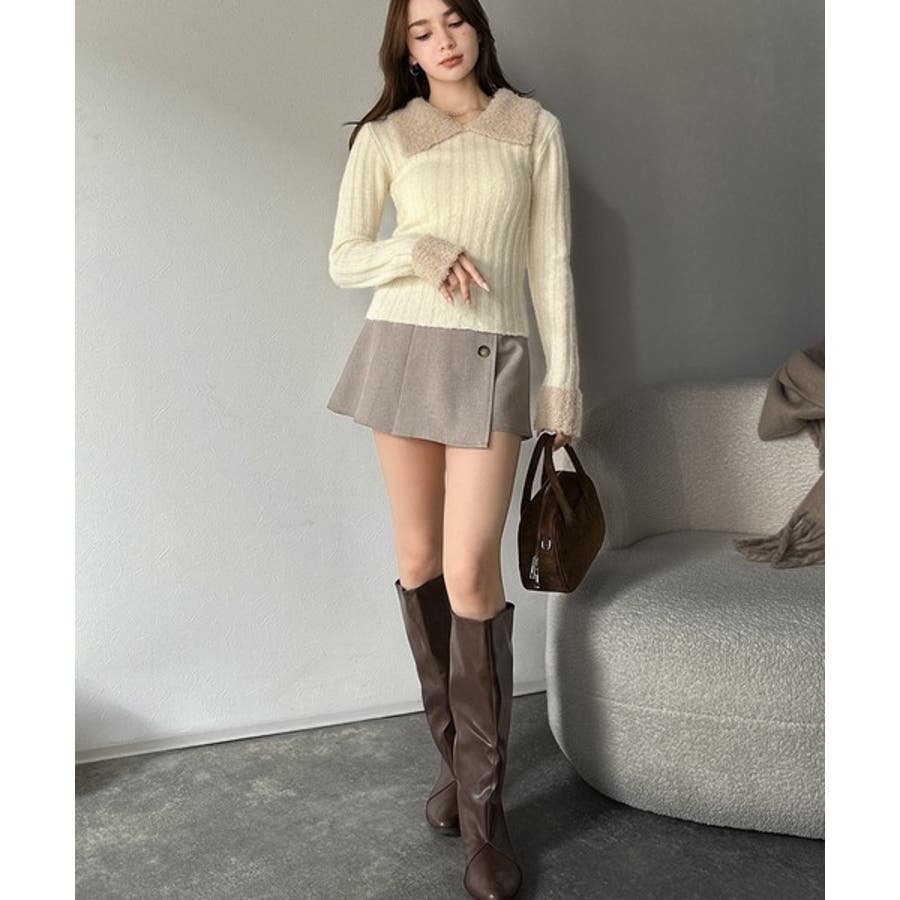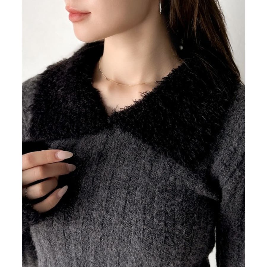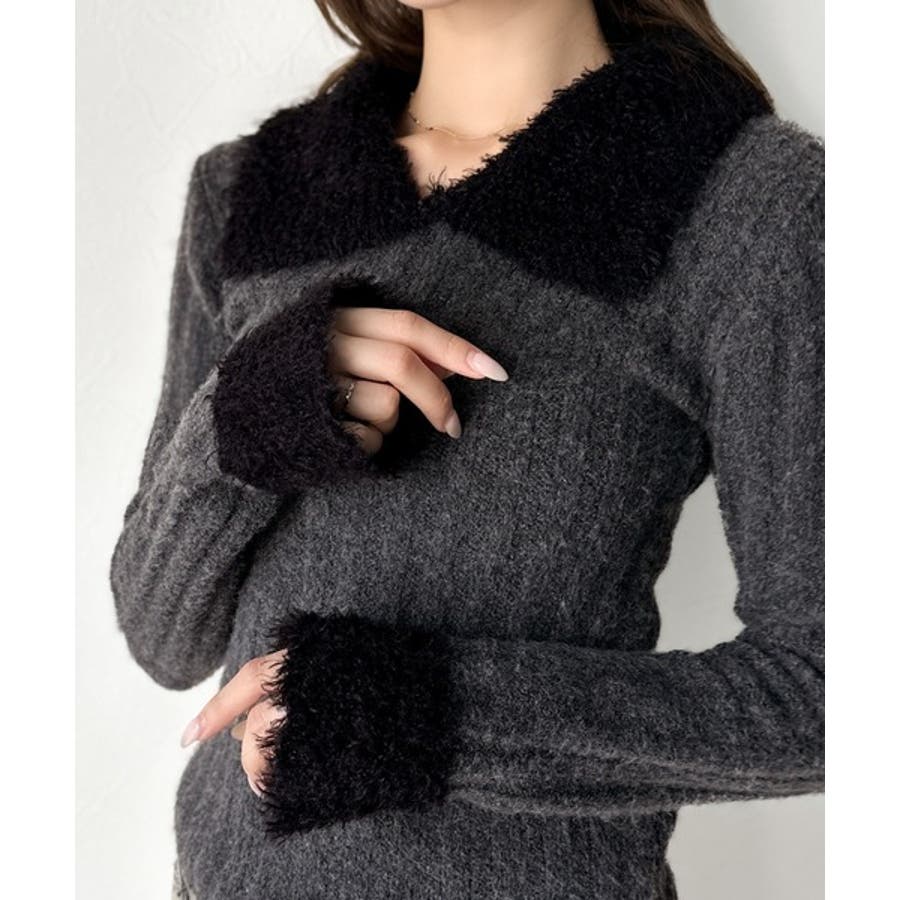 【mily bilet】可愛さ、ふわり2倍増し◎配色ファー衿リブニットプルオーバ…