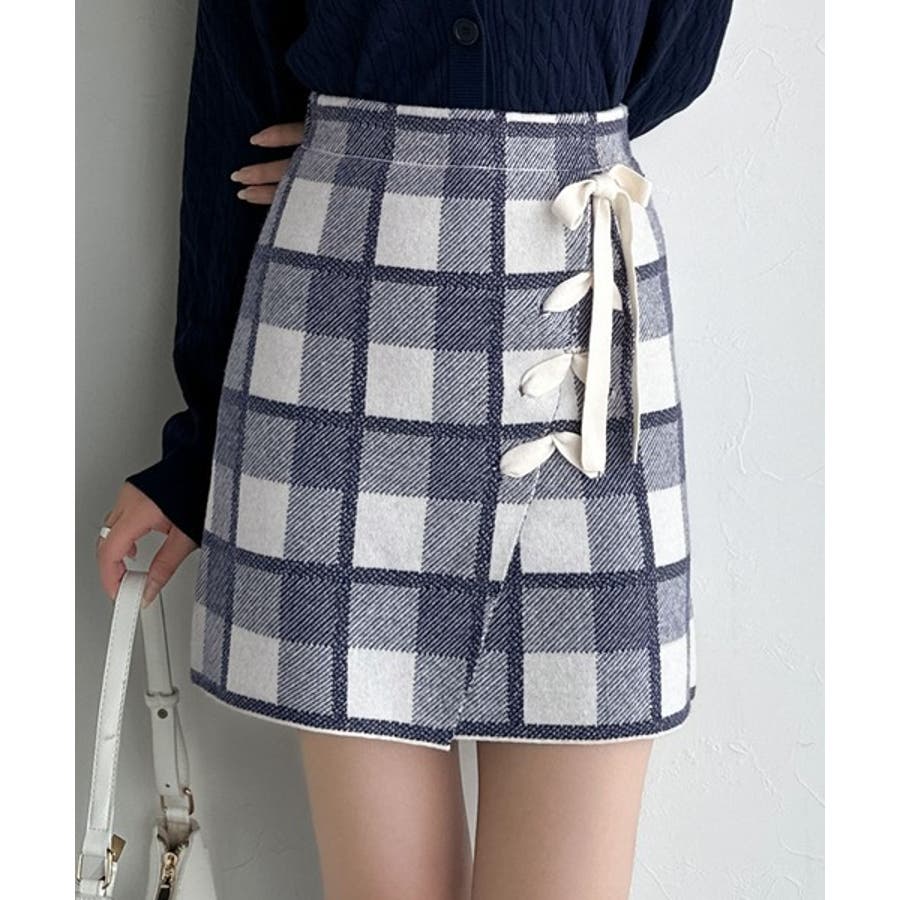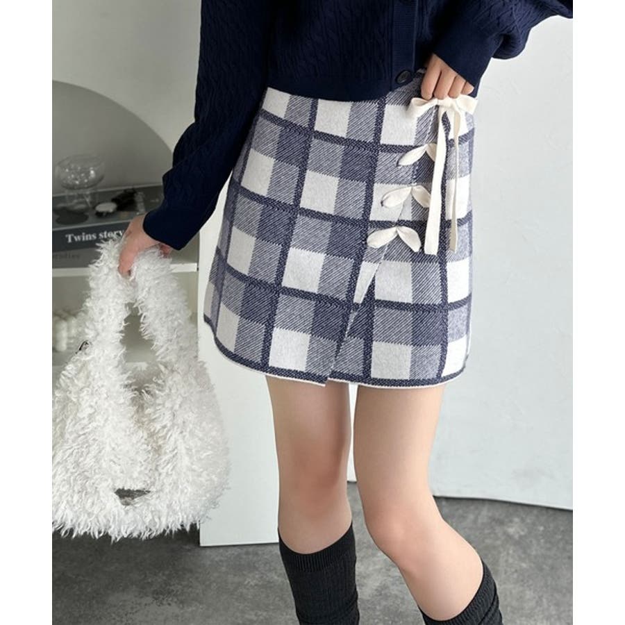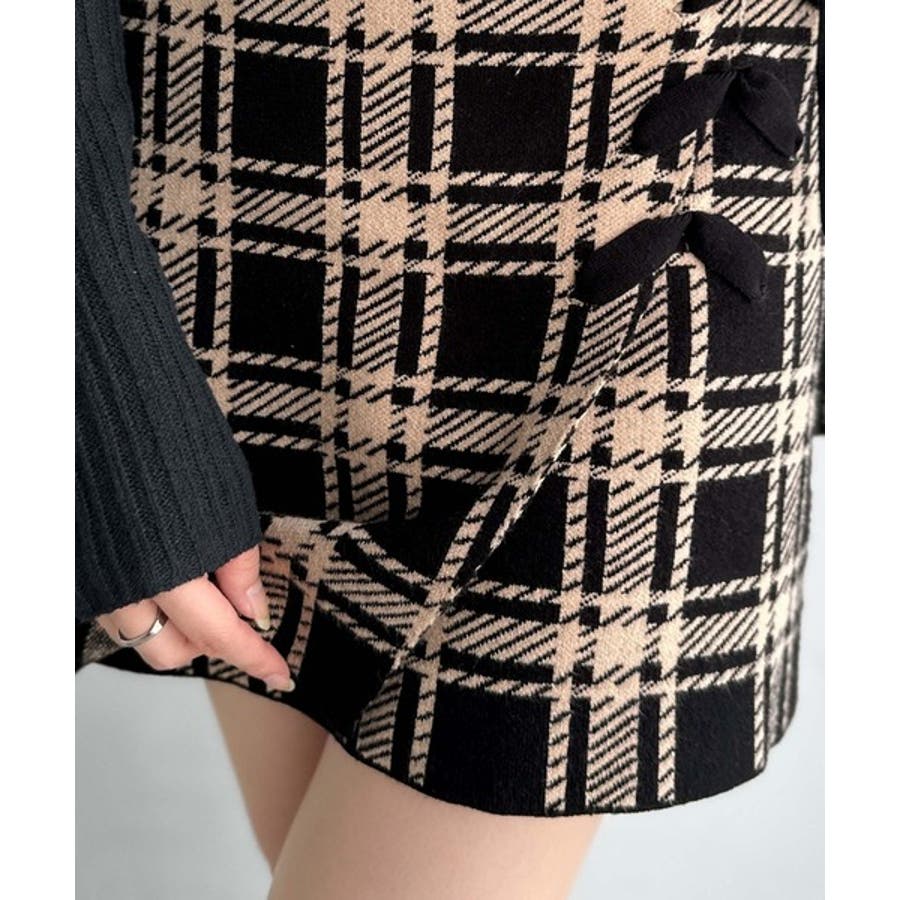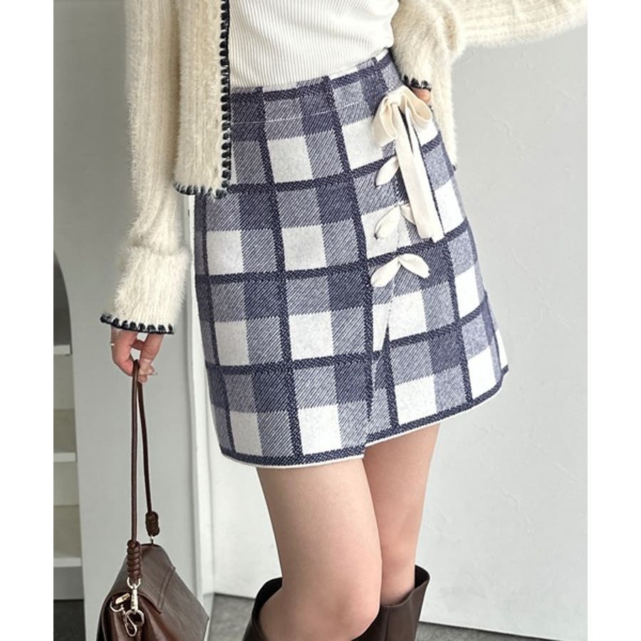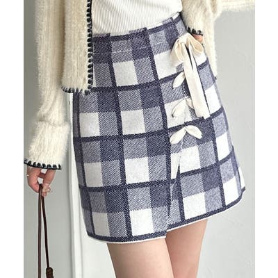 【mily bilet】旬なクラシカルムード◎巻きスカート風リボン使いチェックニ…