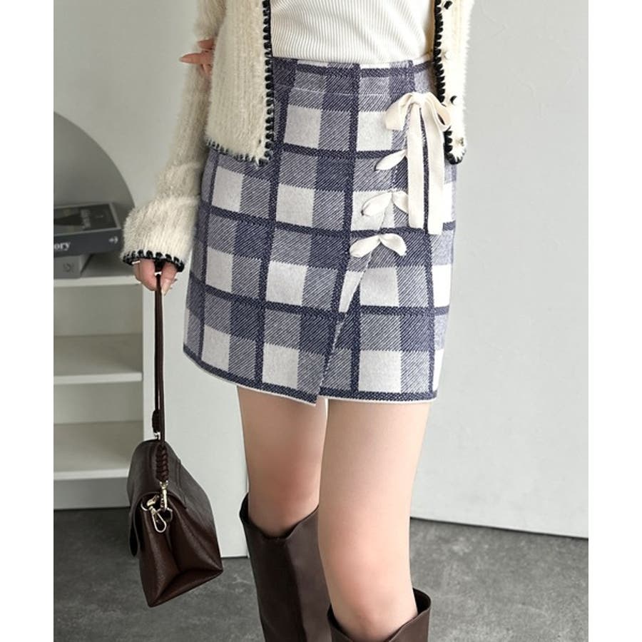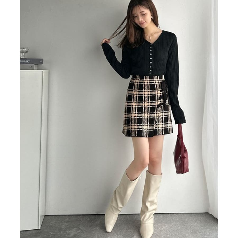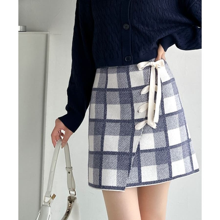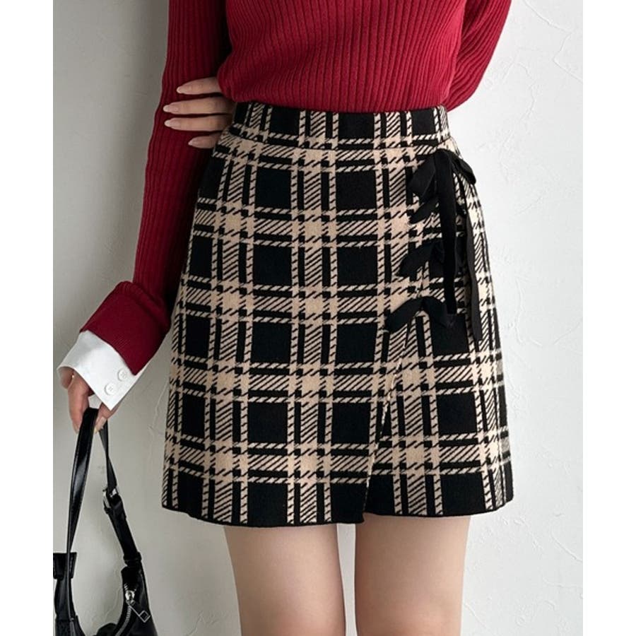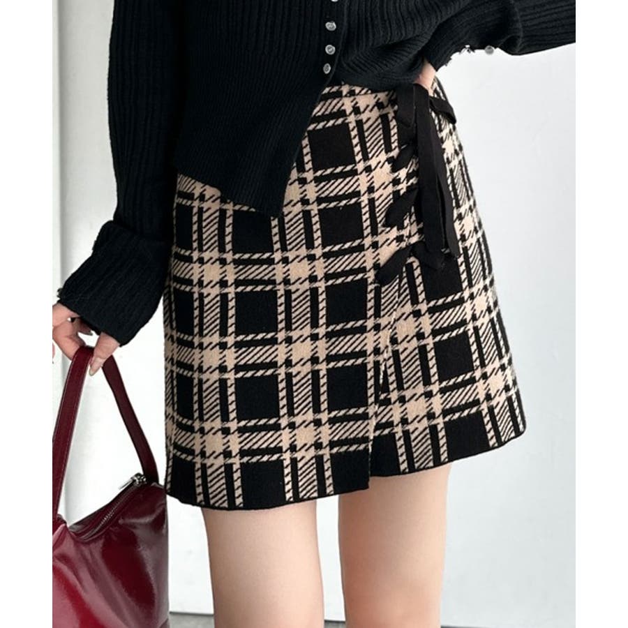 【mily bilet】旬なクラシカルムード◎巻きスカート風リボン使いチェックニ…