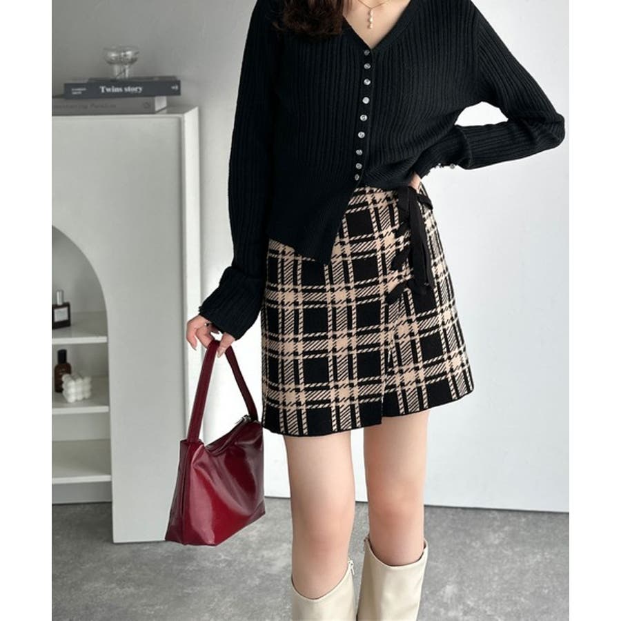 クラシカルなチェック柄が目を惹く、旬顔のニットミニスカートです♪