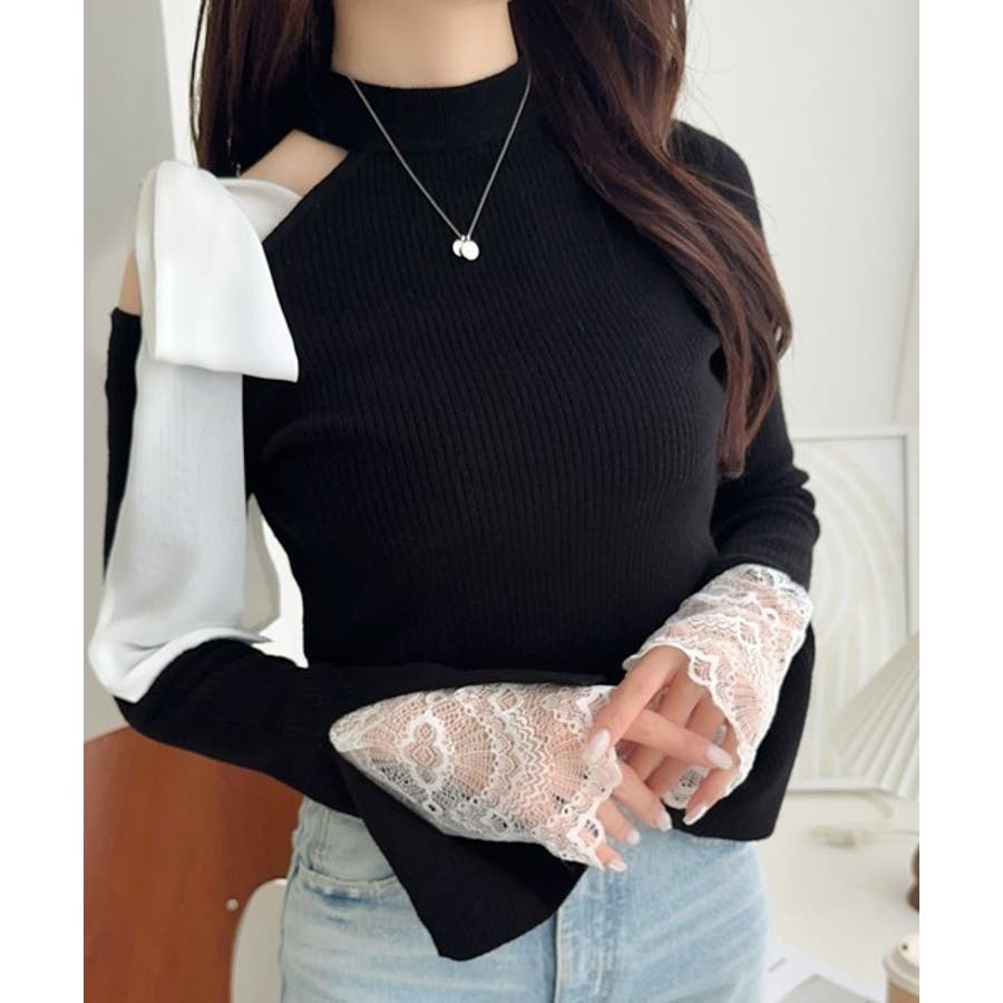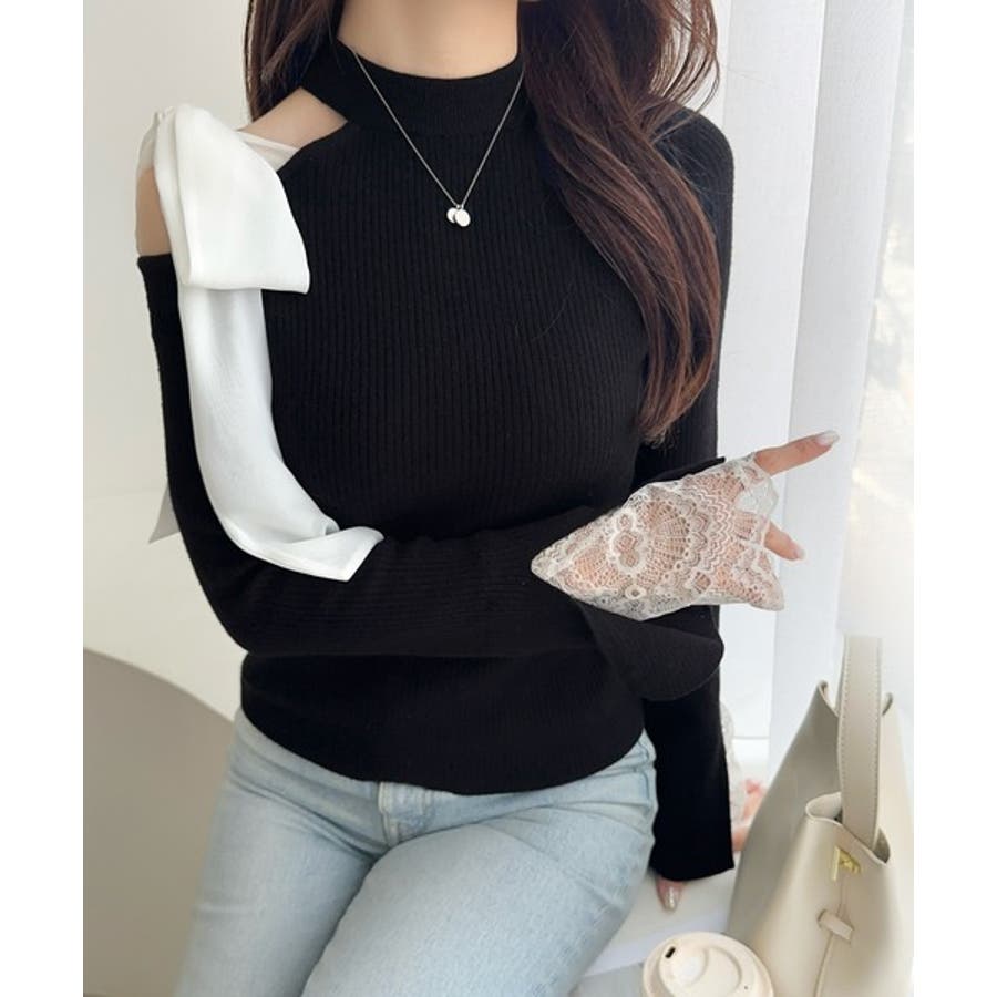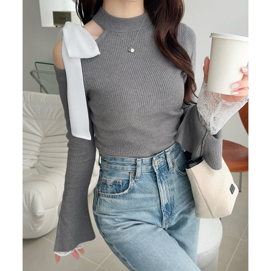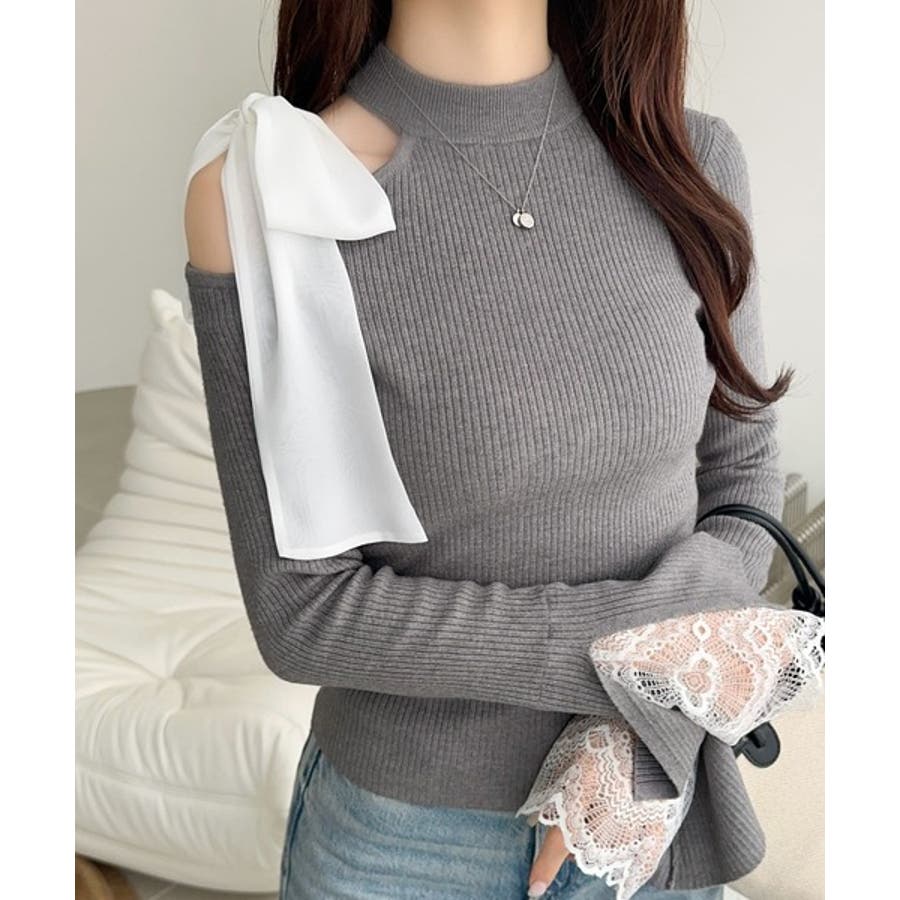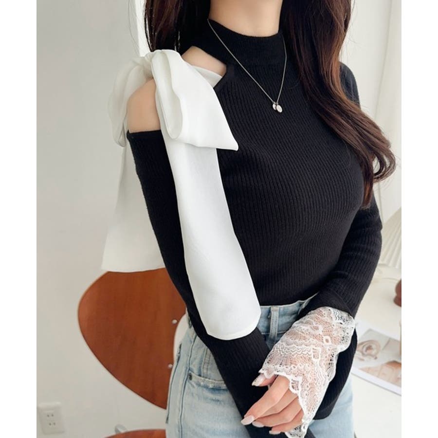 【mily bilet】大人フェミニンの主役トップス。肩シフォンリボン袖レース使…