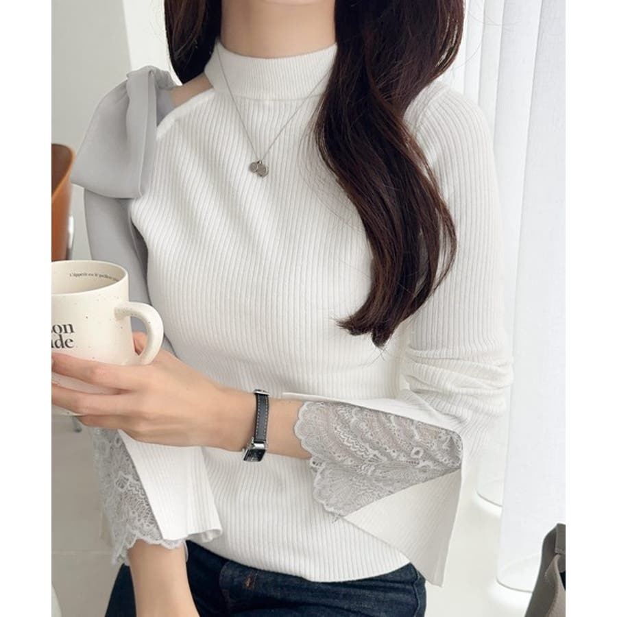 袖口には繊細なレースを重ね、フレアシルエットで広がる手元がロマンティックで華やかなムードを高めてくれるポイント。