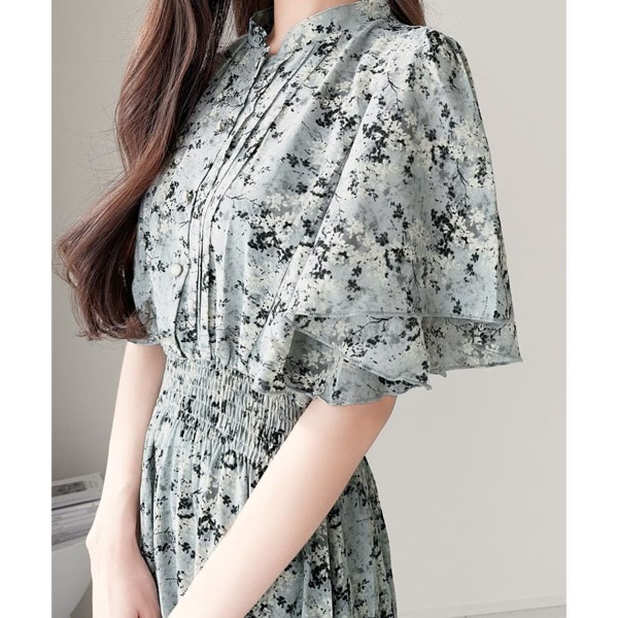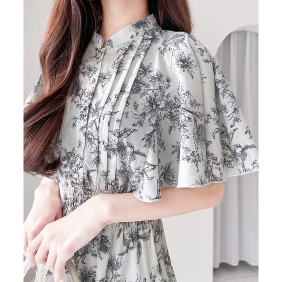 フロントのピンタックとボリュームたっぷりのフレアスリーブが華やかさをプラス。
