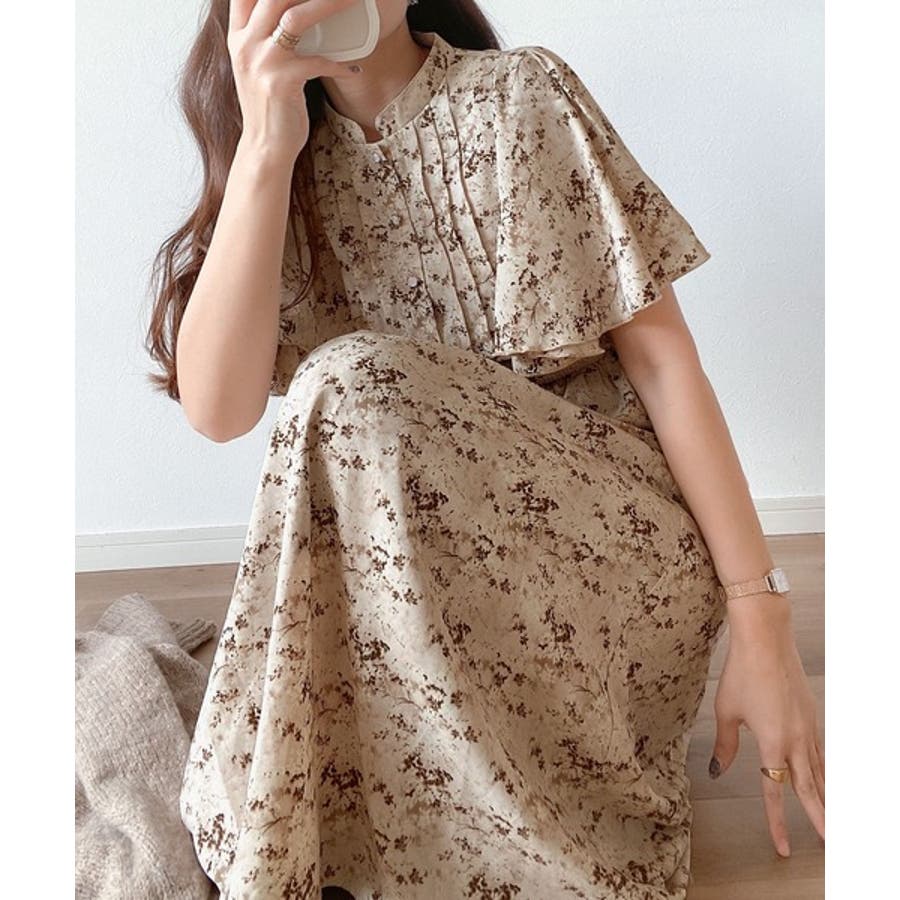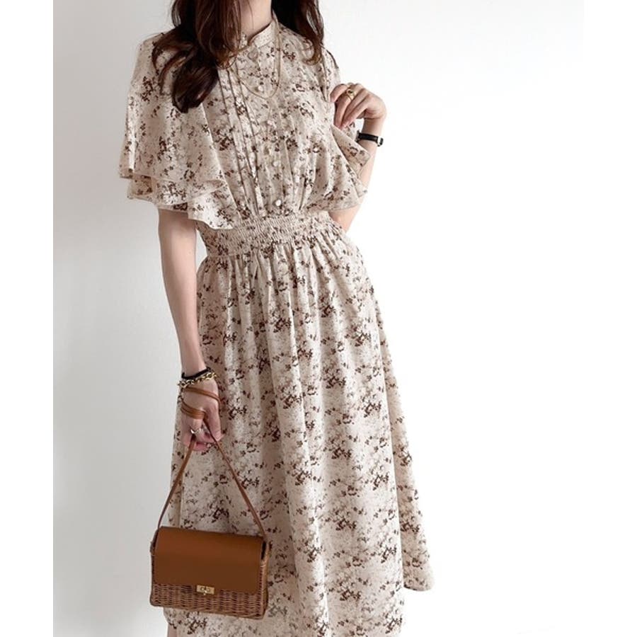 レトロな花柄が目を惹く、1枚で主役級のワンピース。