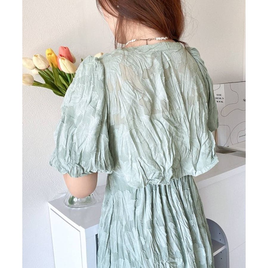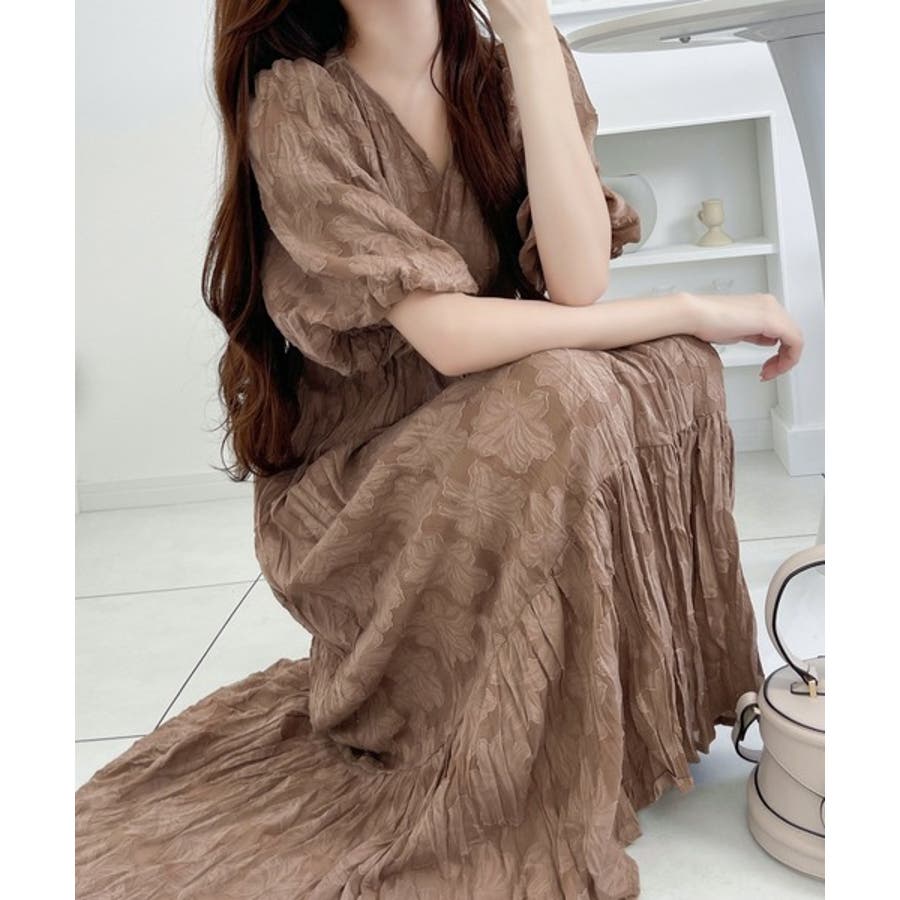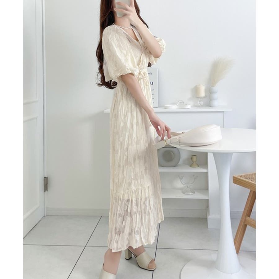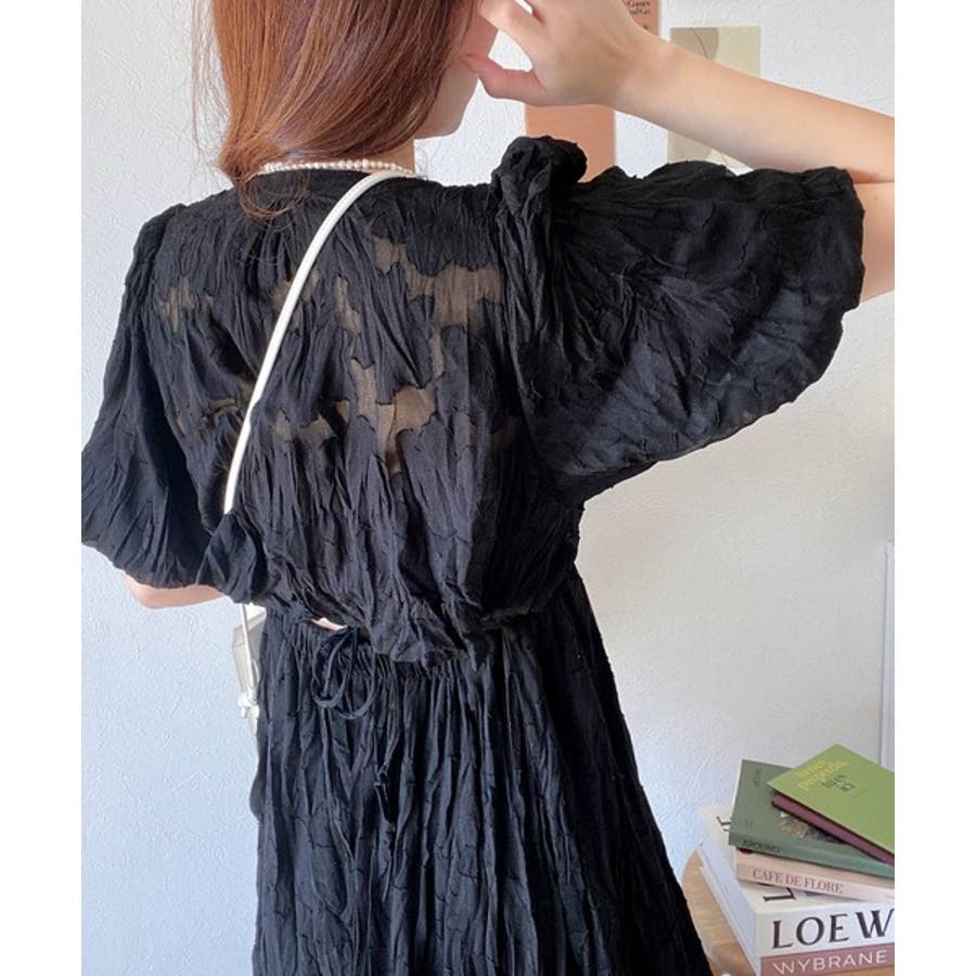 【mily bilet】上品に肌魅せ。シアージャガード花柄クリンクルワンピース