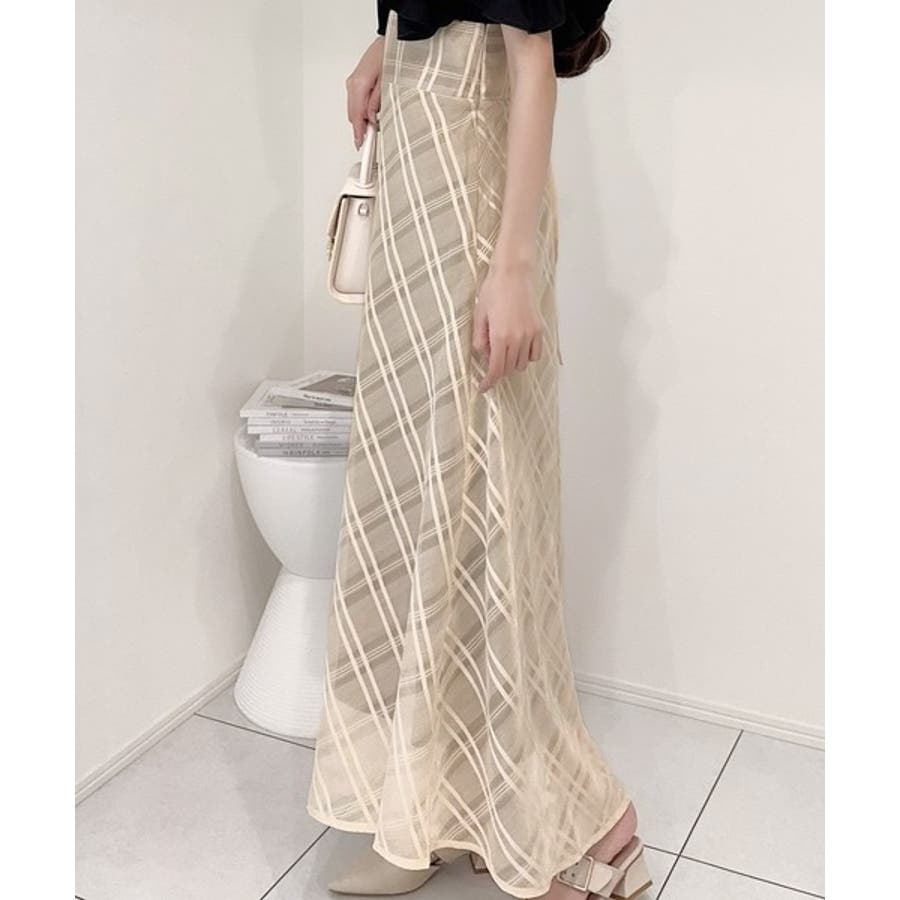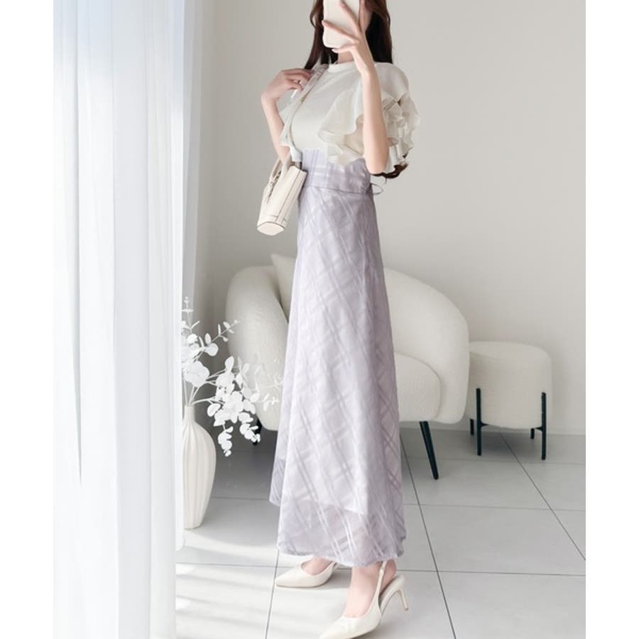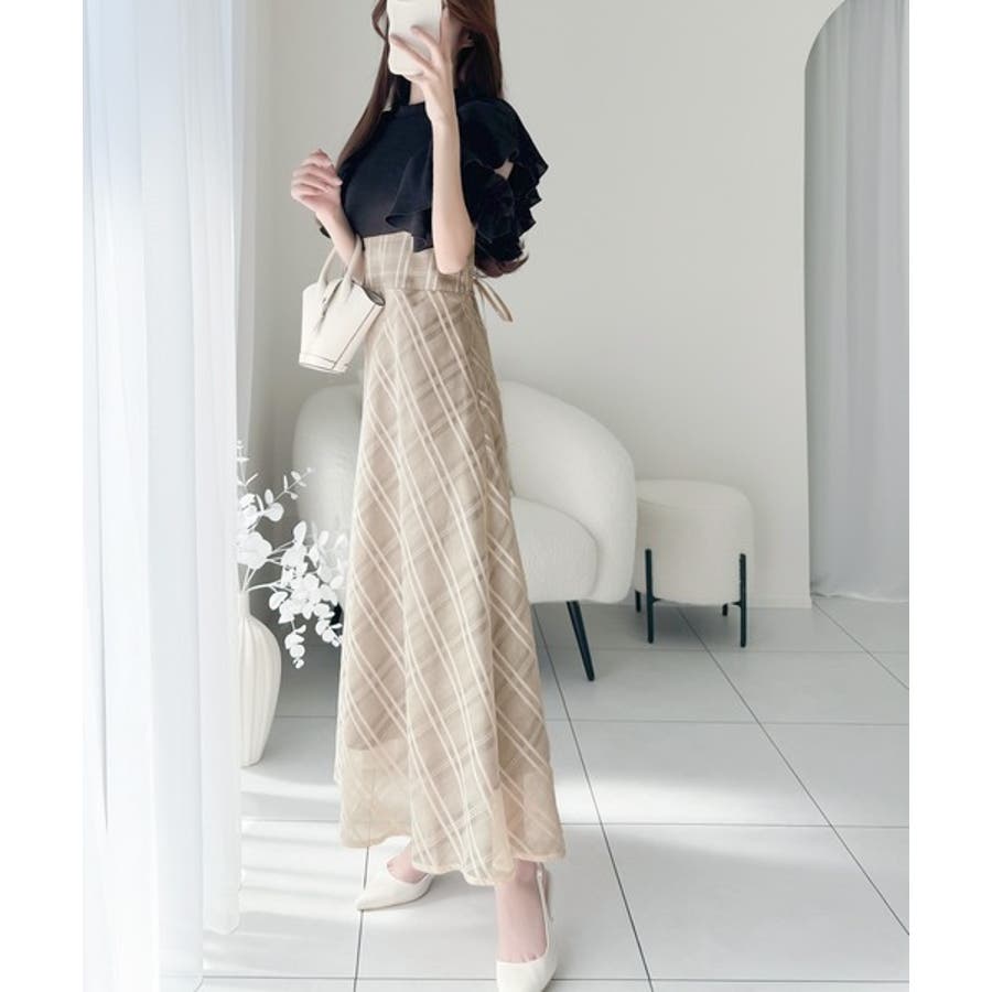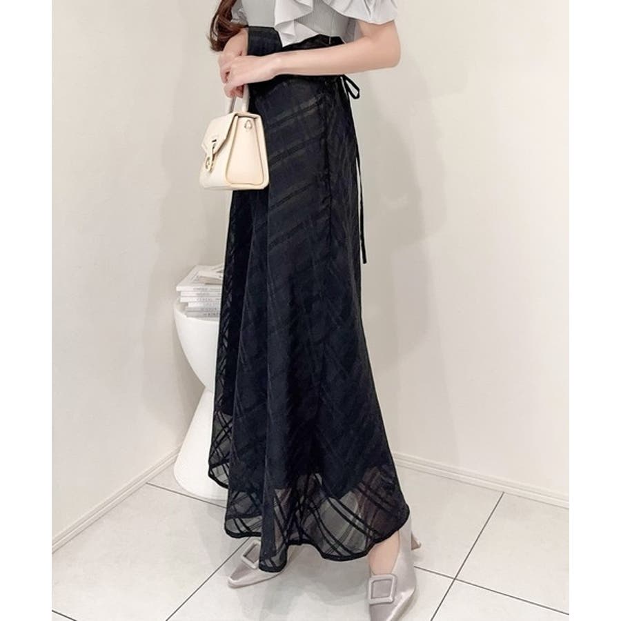 ハイウエストのスカートは、ドレープが綺麗なフレアシルエットを演出。