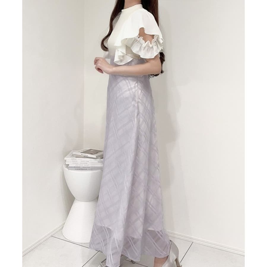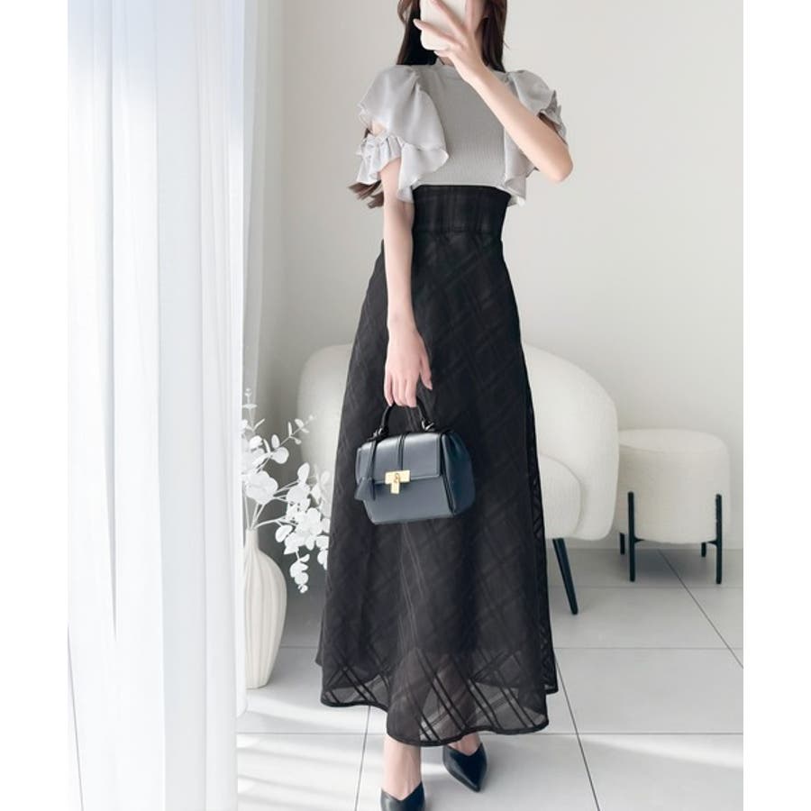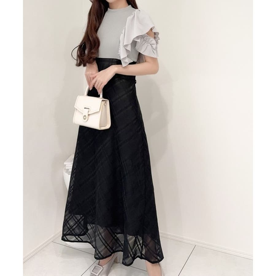 リブトップスに異素材の落ち感のあるフリルを施した主役級ワンピース。