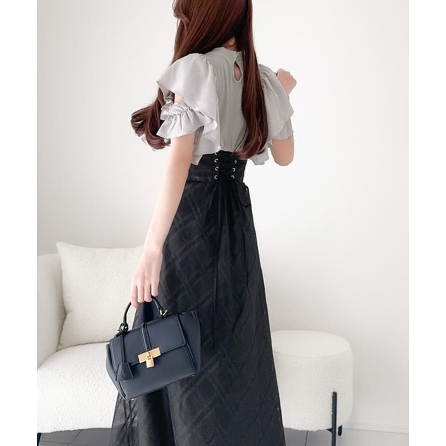 下のフリルにゴムシャーリングを入れて落とすことによって、ヘルシーな肌見せが叶います◎