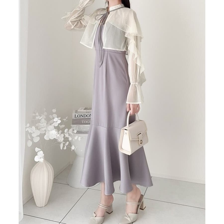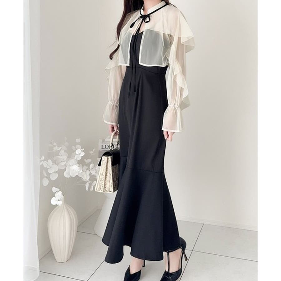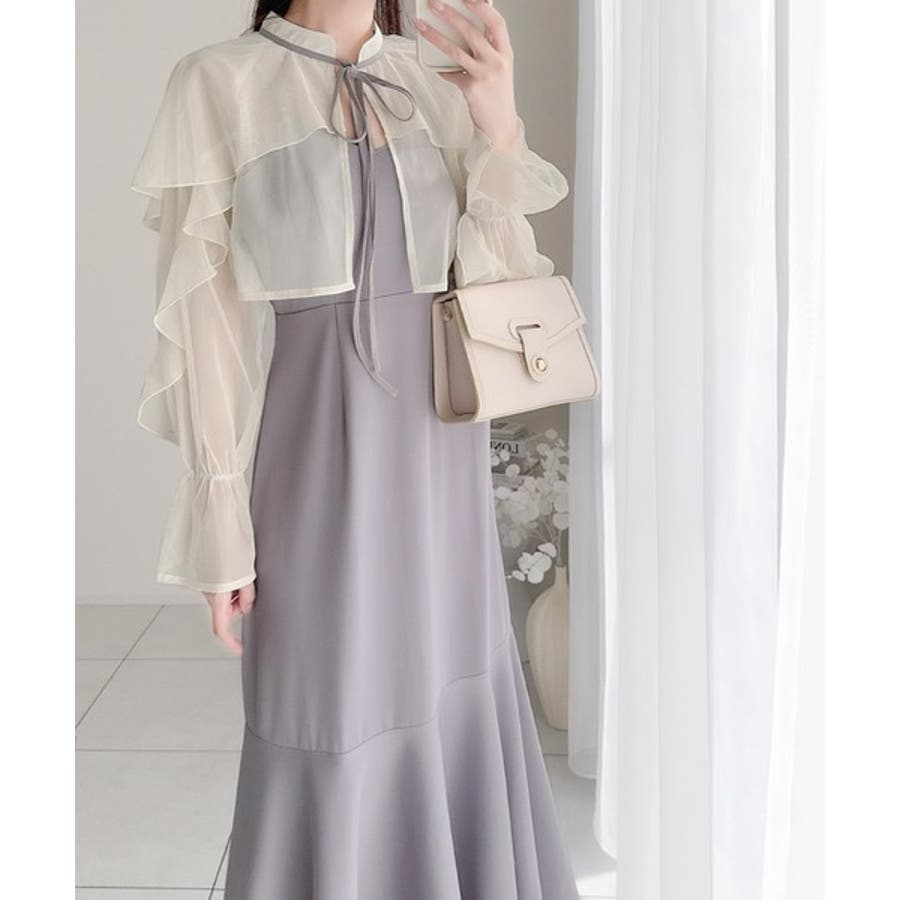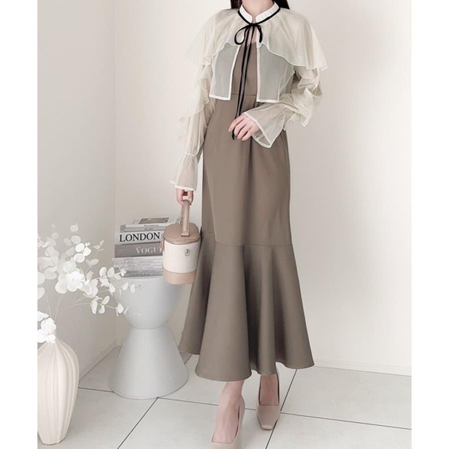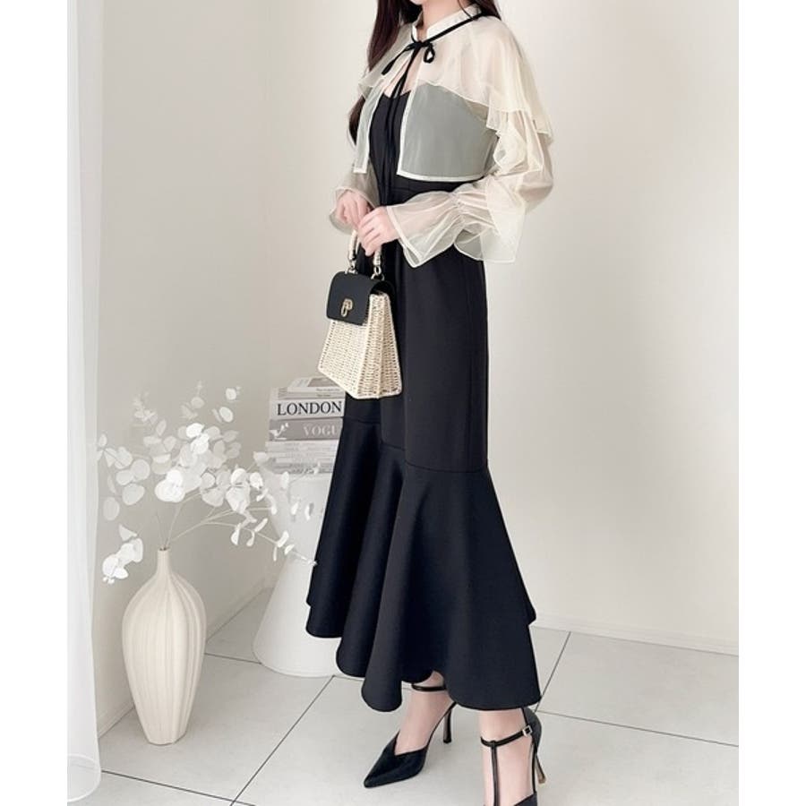 セットアップで華やかスタイル。チュールケープボレロ付きマーメイドキャミワンピース…