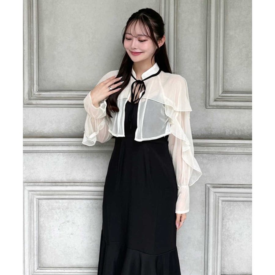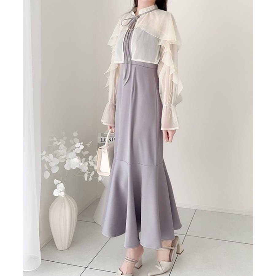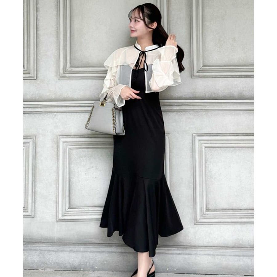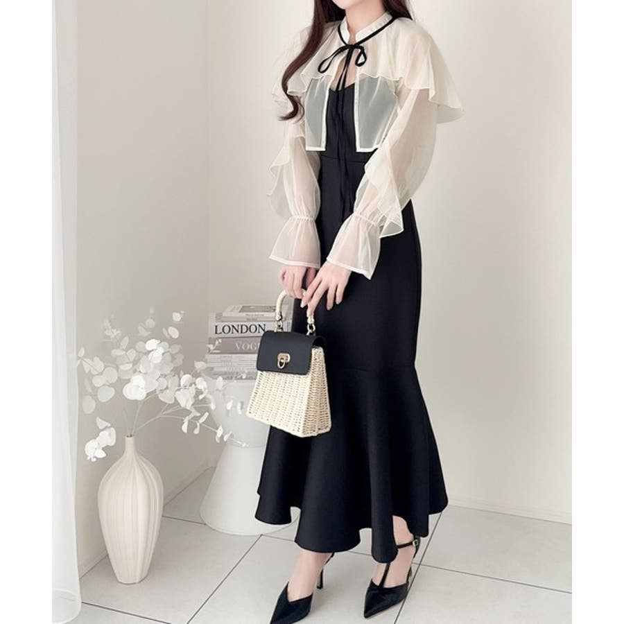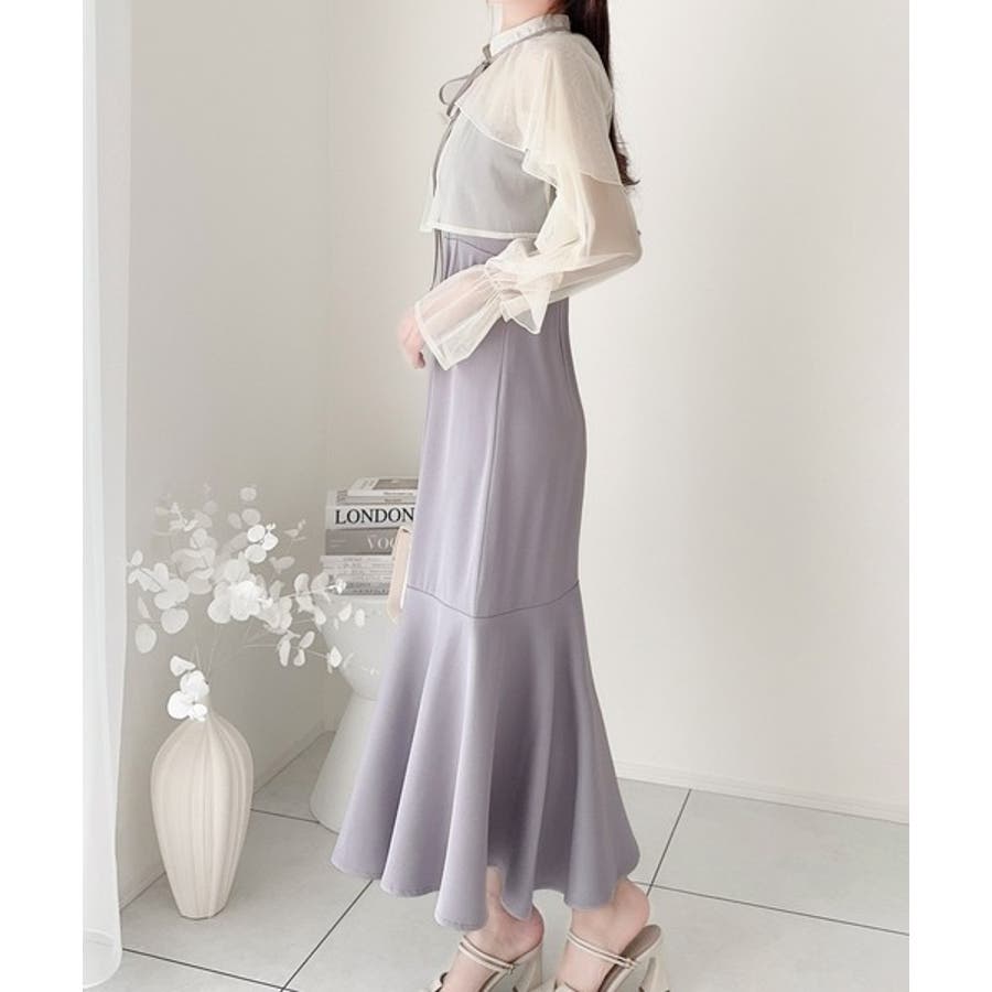 セットアップで華やかスタイル。チュールケープボレロ付きマーメイドキャミワンピース…