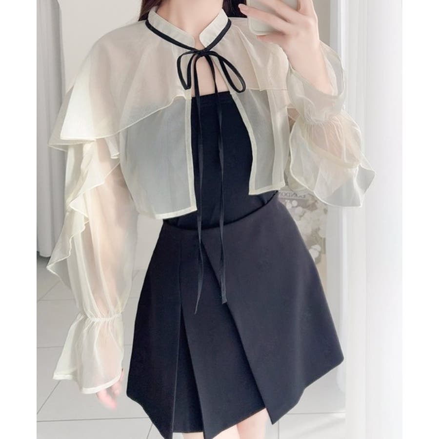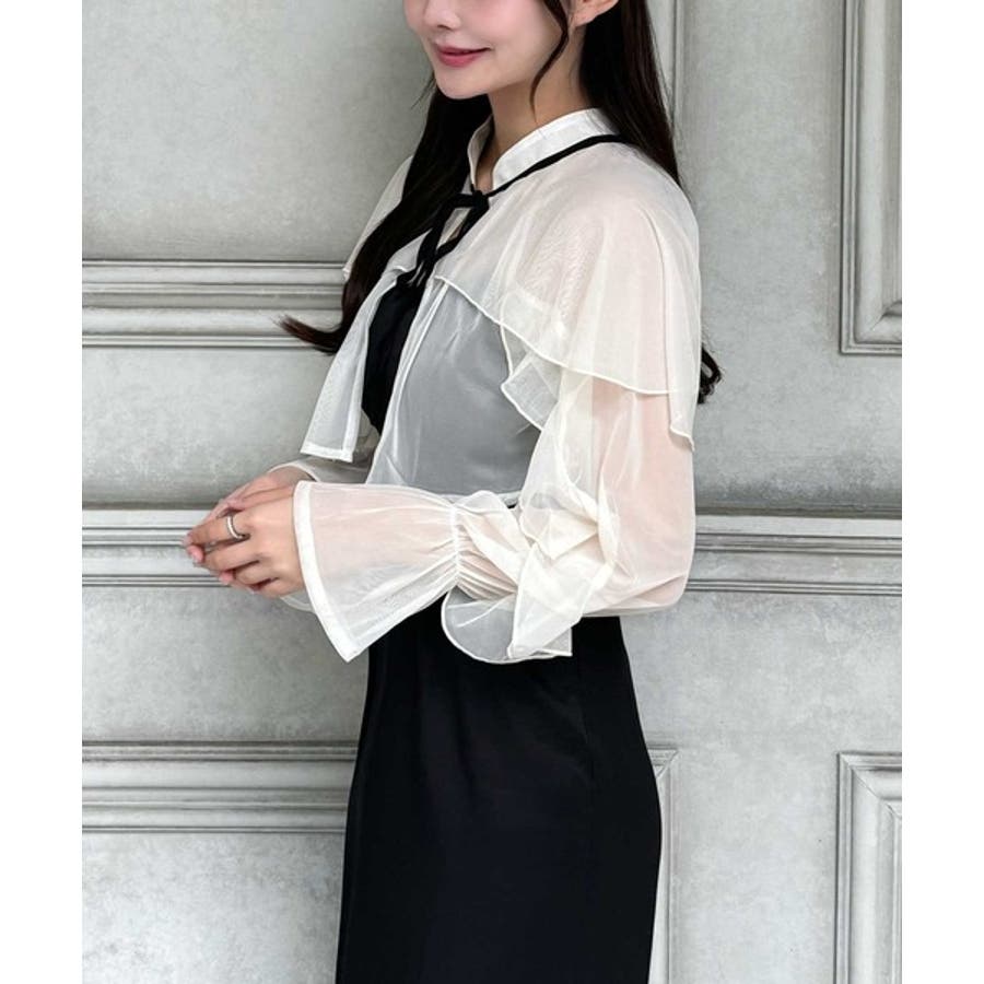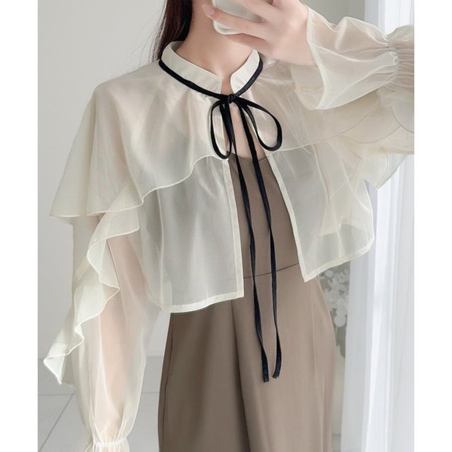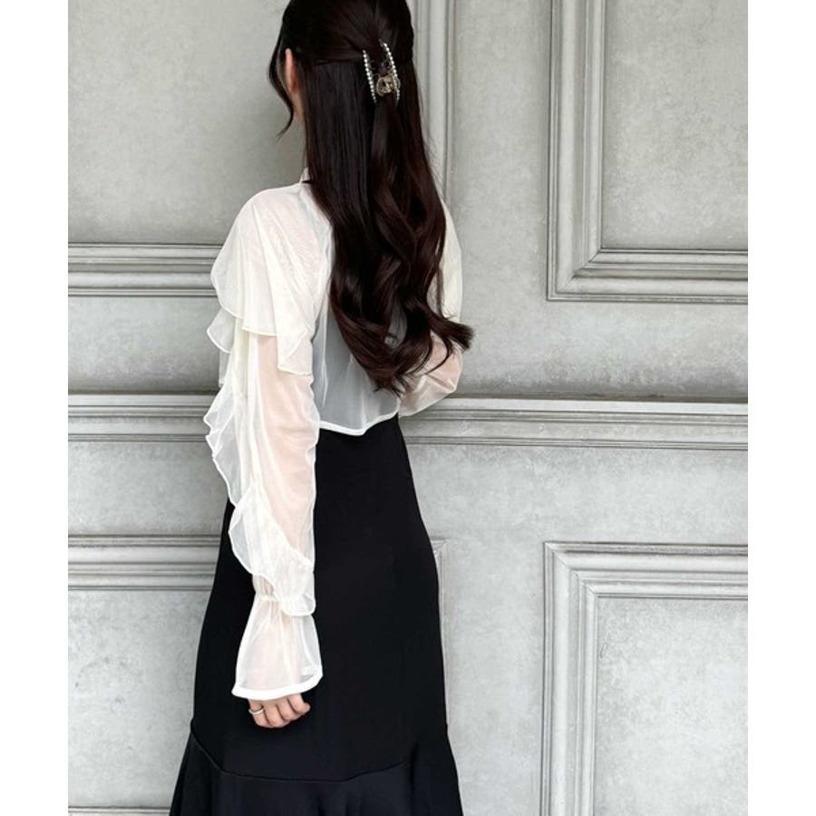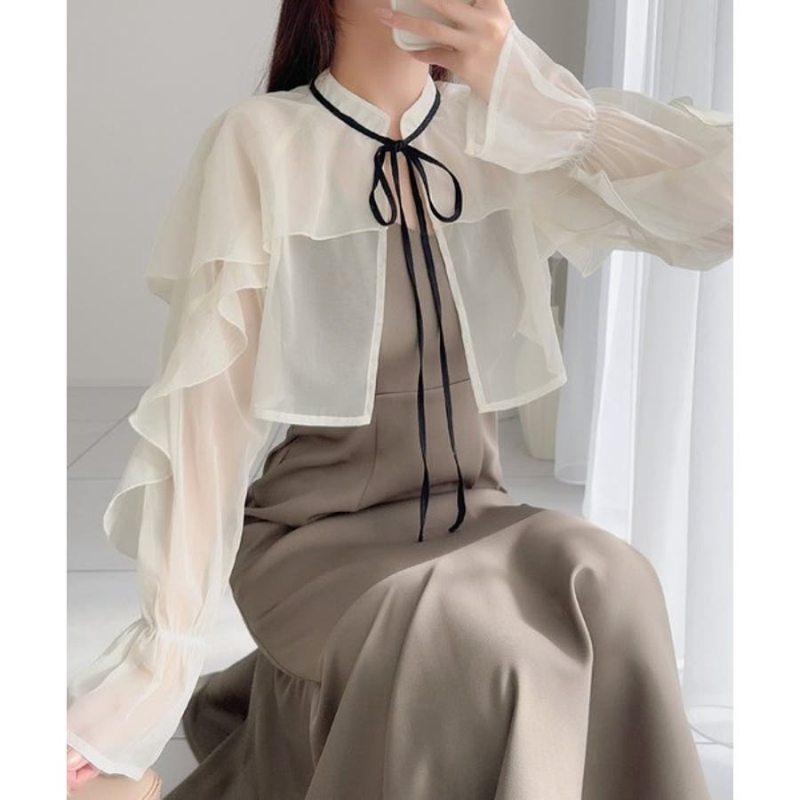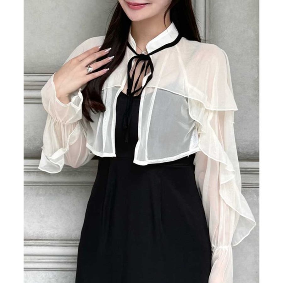 袖にたっぷりのフリルをあしらったチュールボレロと