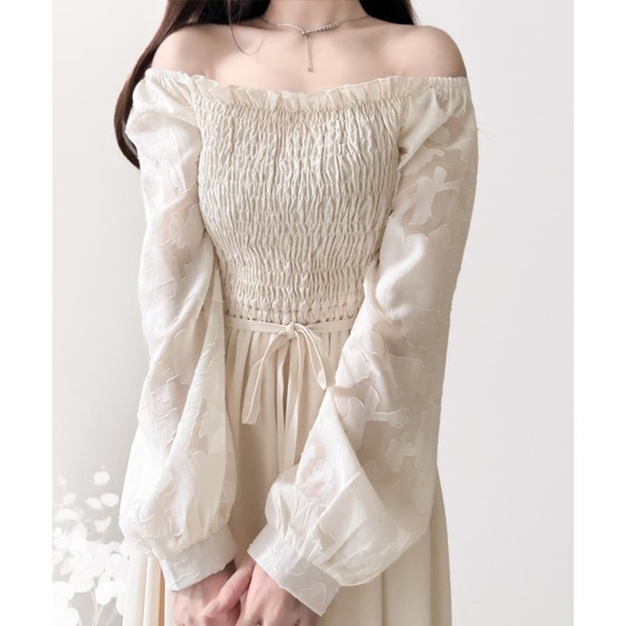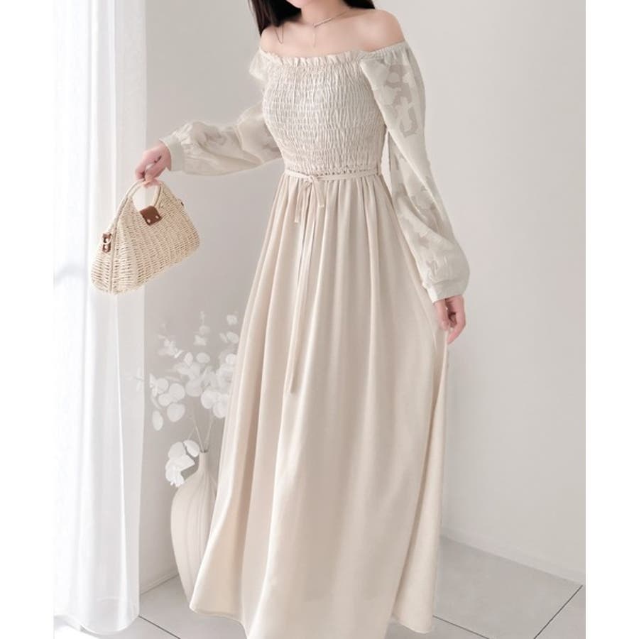 【アイボリー】一枚で大人レディstyle。ショルダー2way袖シアージャガードワンピース