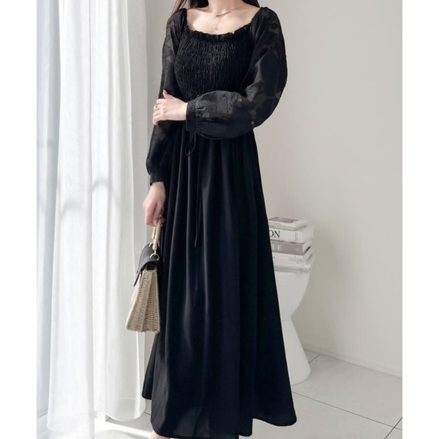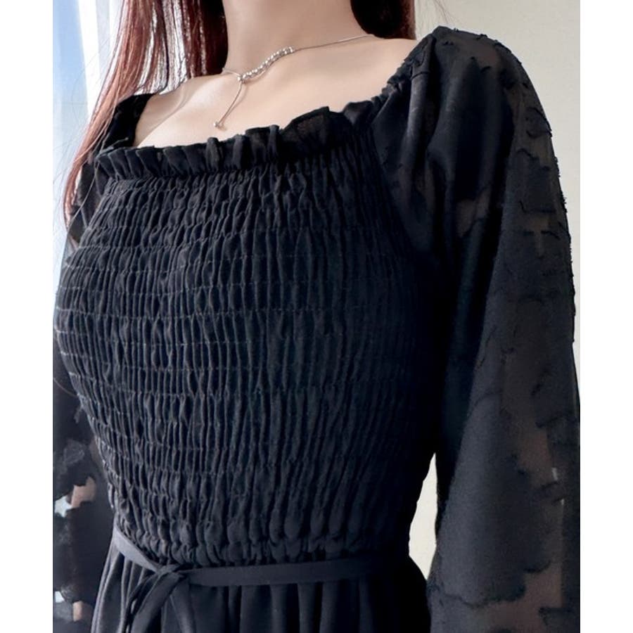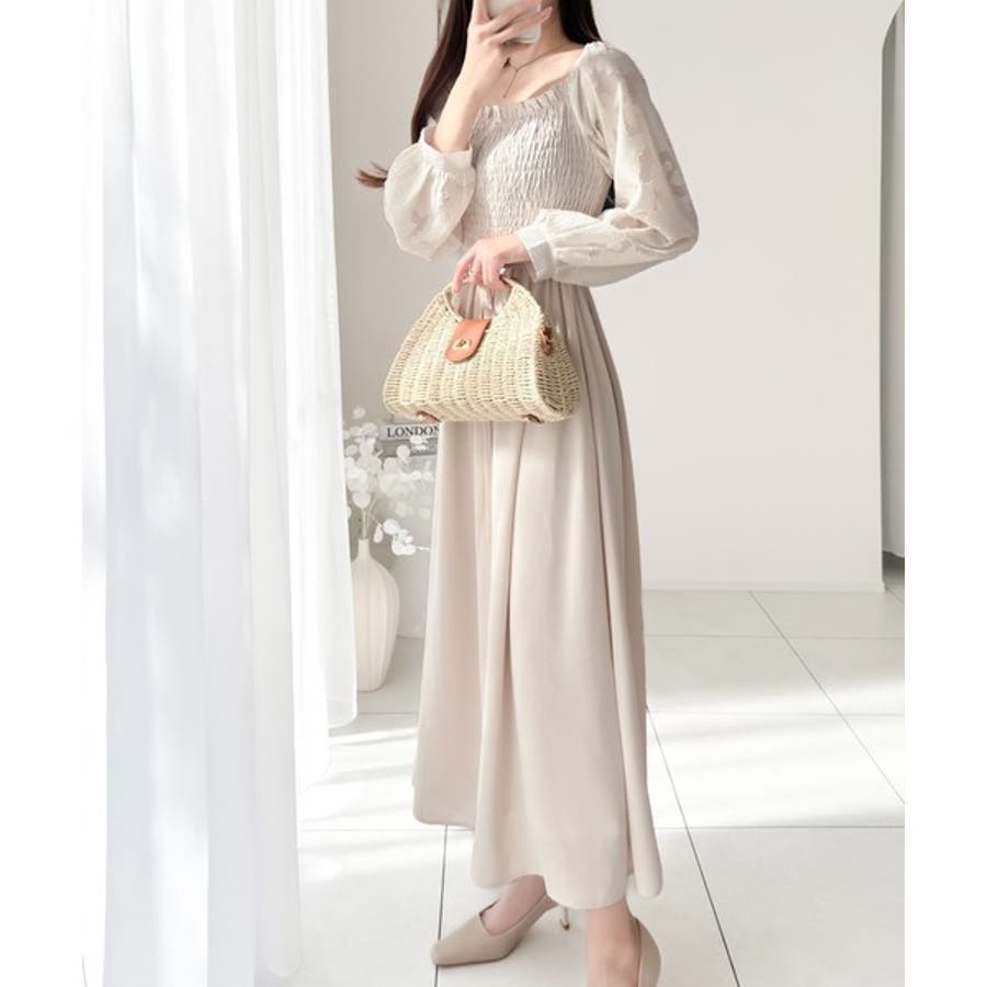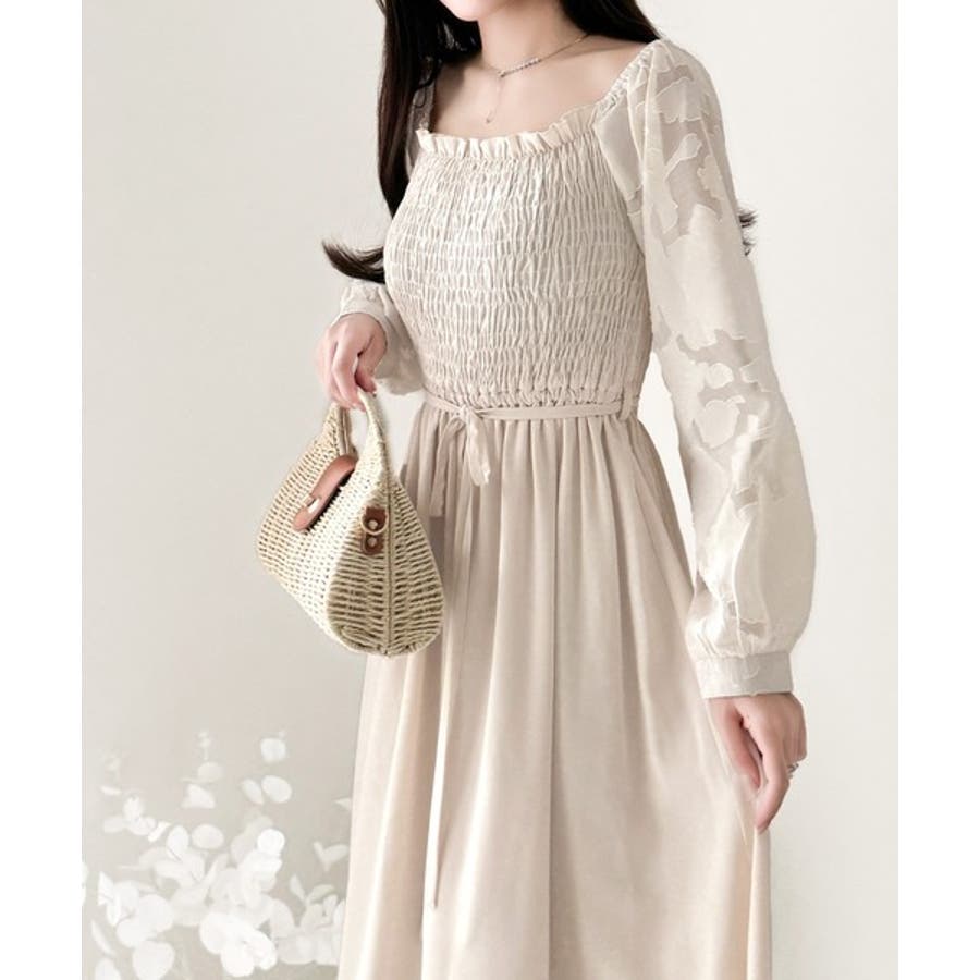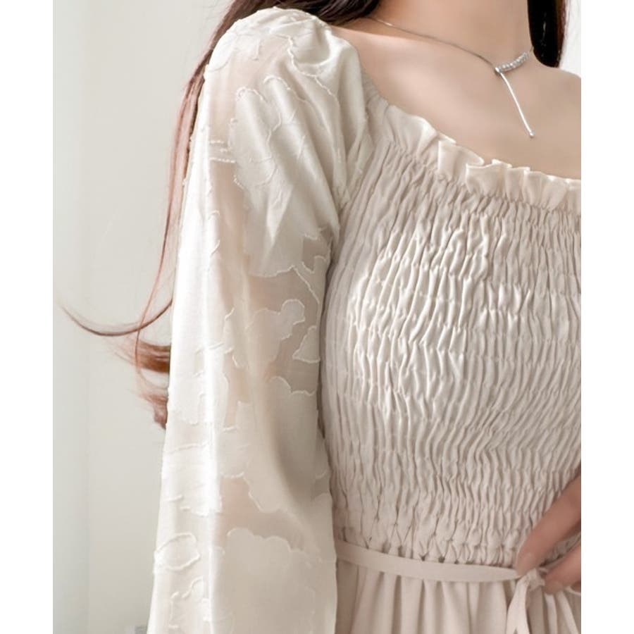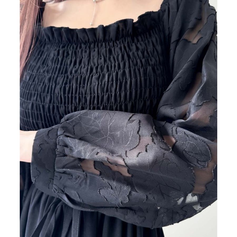 袖全体に施されたシアージャガードが印象的なワンピースです。