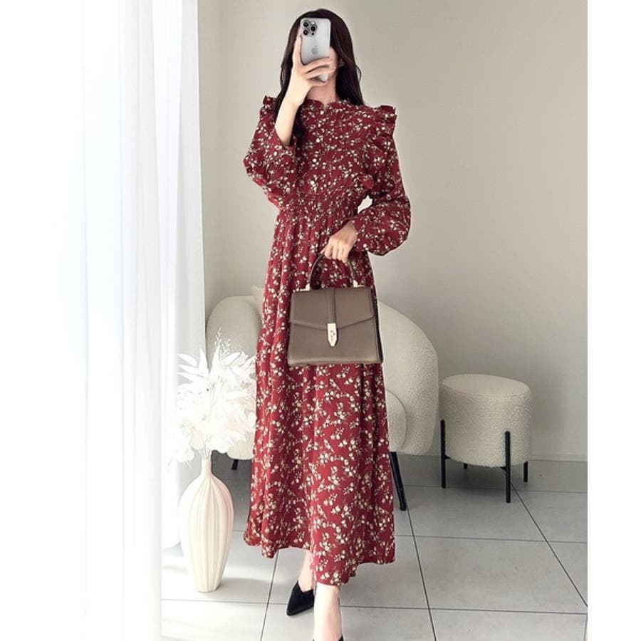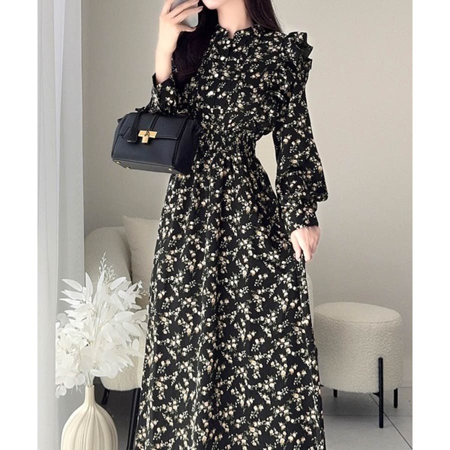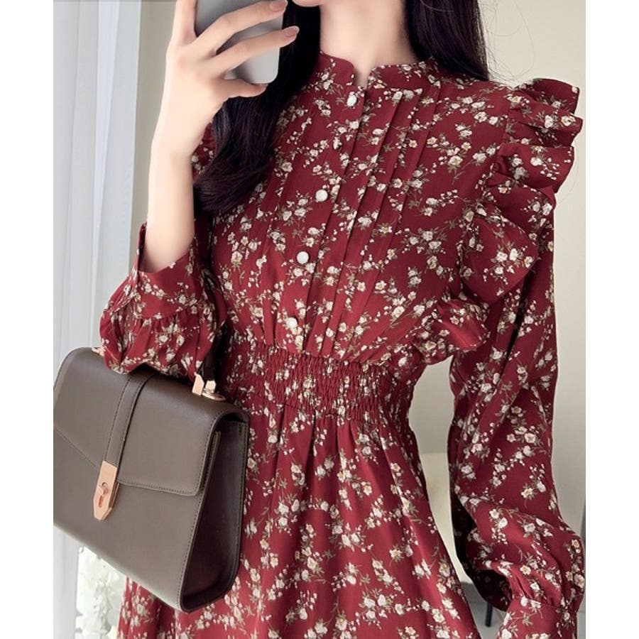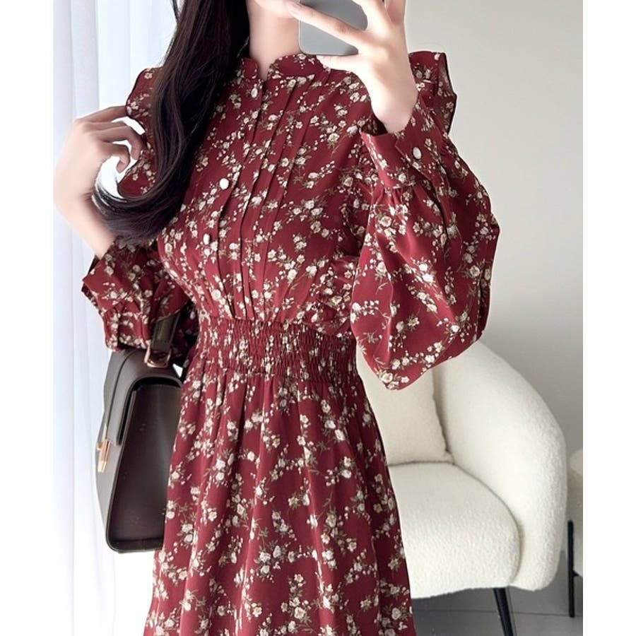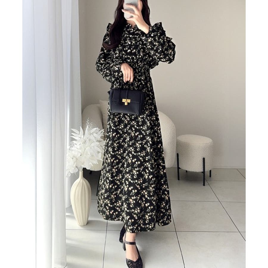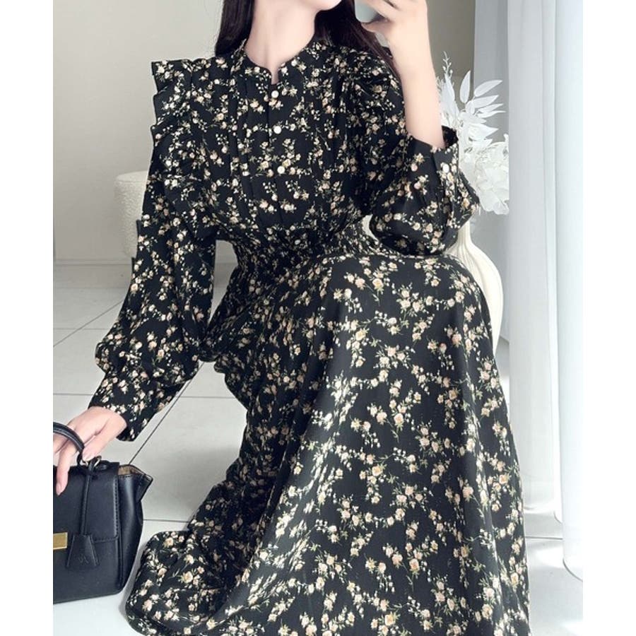 【mily bilet】大人フェミニン。レトロ花柄ピンタックフリルワンピース