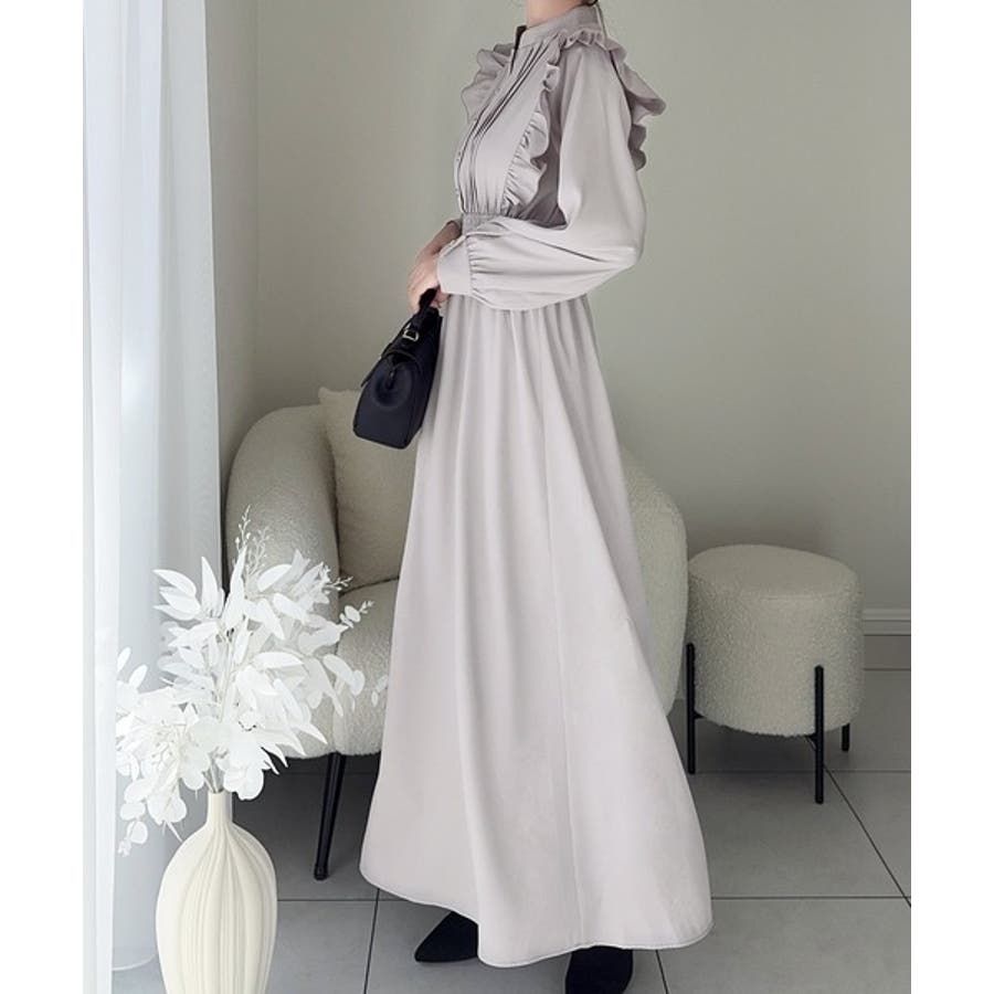 マキシ丈Aラインの縦長シルエットでスタイルアップデザイン。