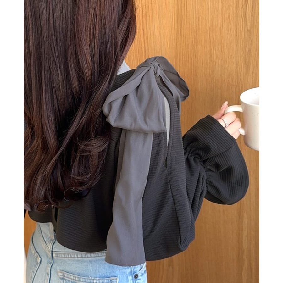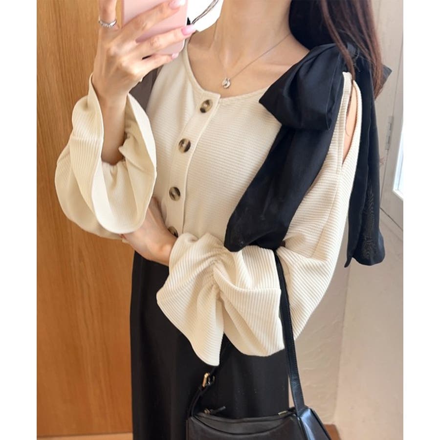 大人レディスタイルに華やかさをプラス。肩スリットリボン前後2WAYカーディガン付…