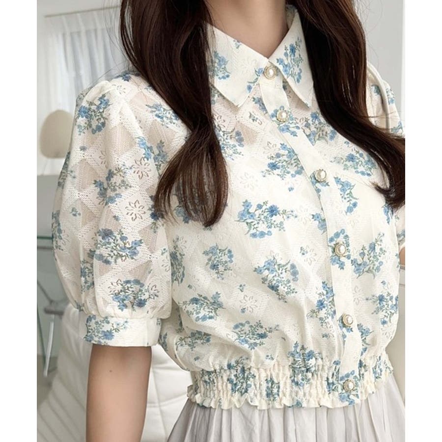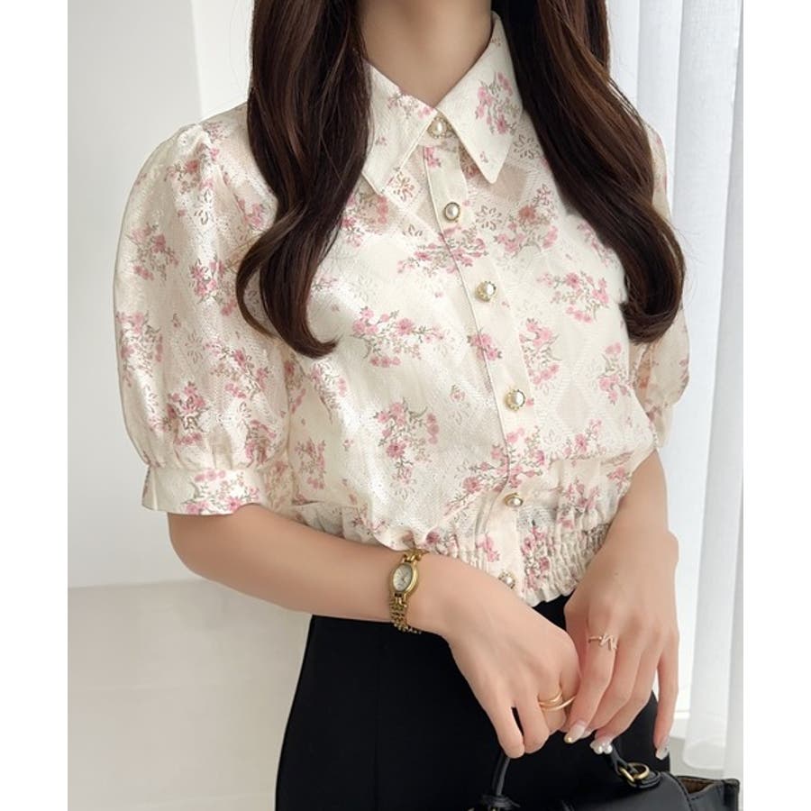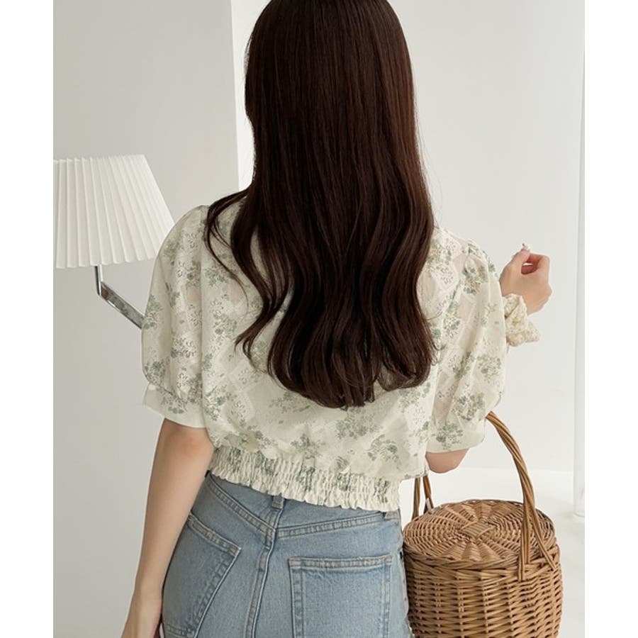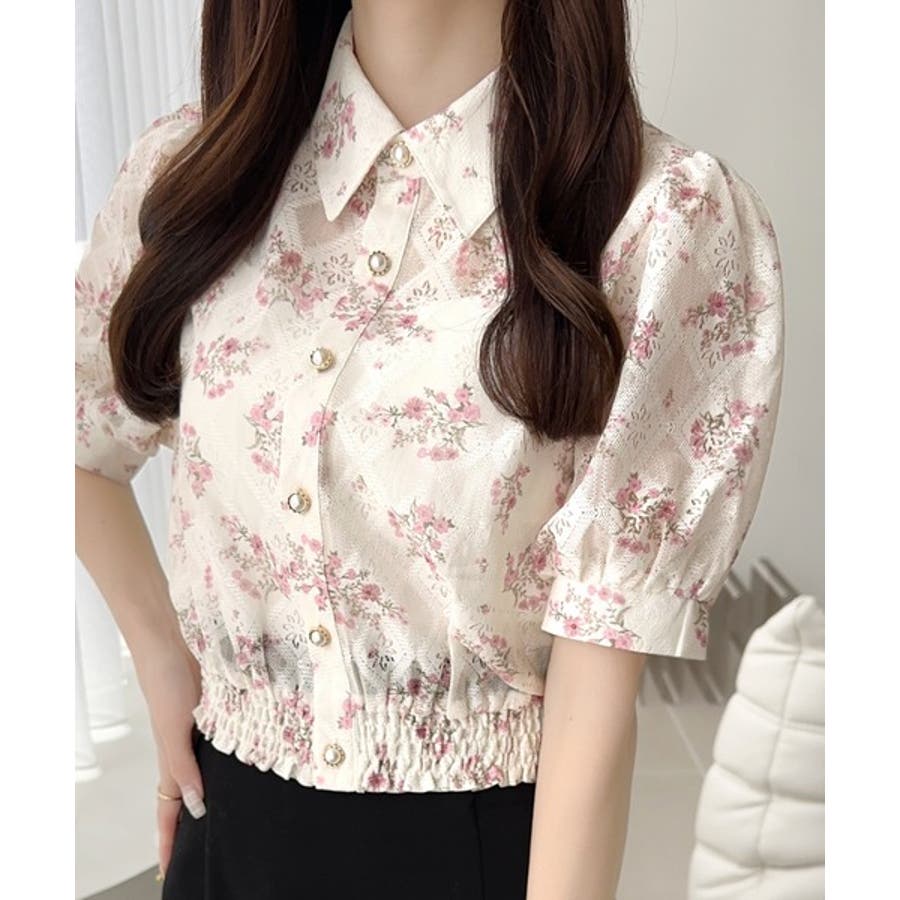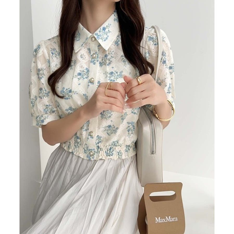スタイルアップ効果抜群♪花柄シアーレースショート丈ブラウス
