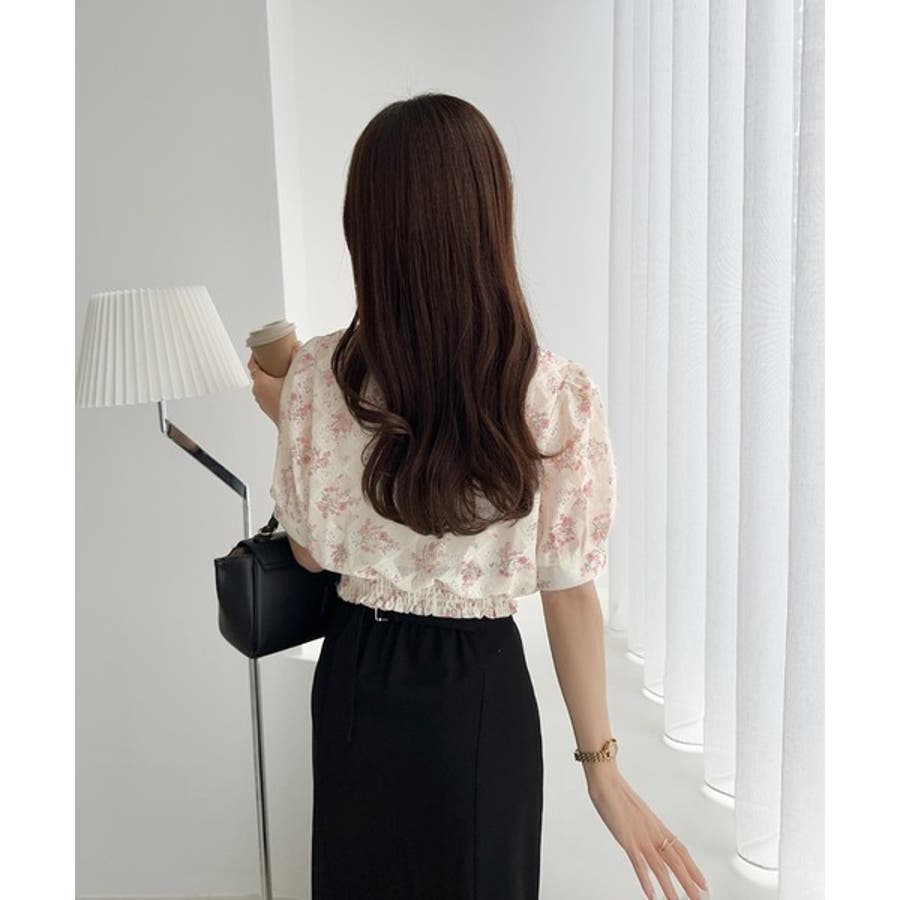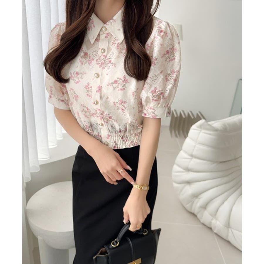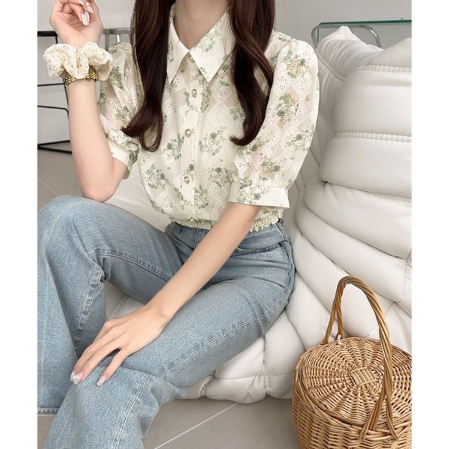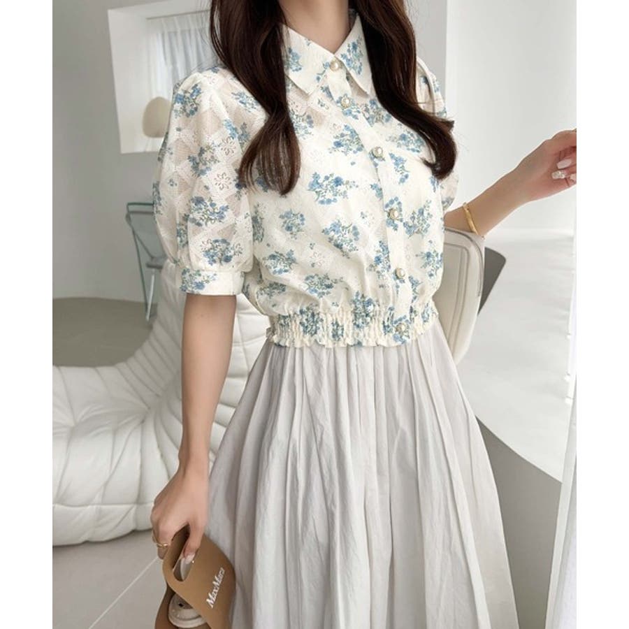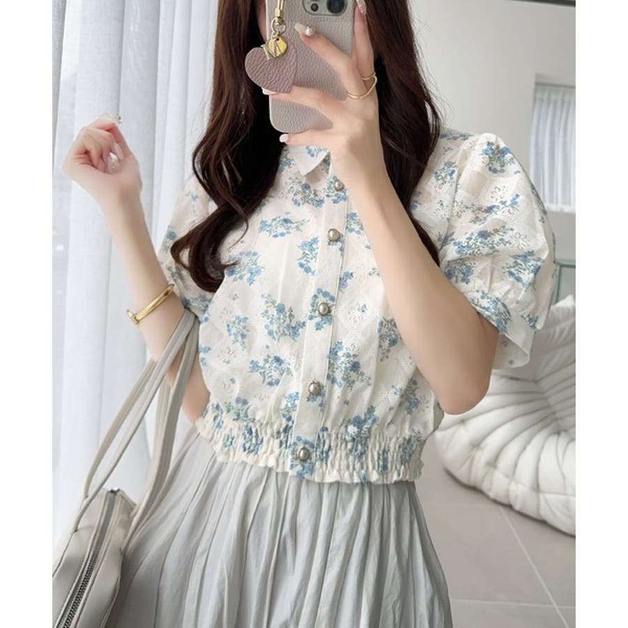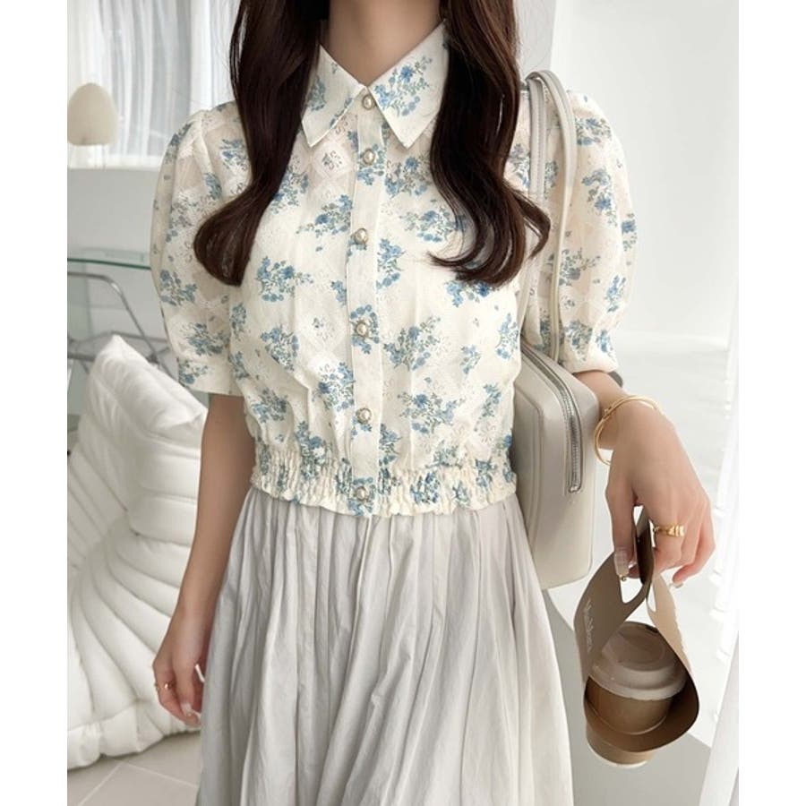 スタイルアップ効果抜群♪花柄シアーレースショート丈ブラウス