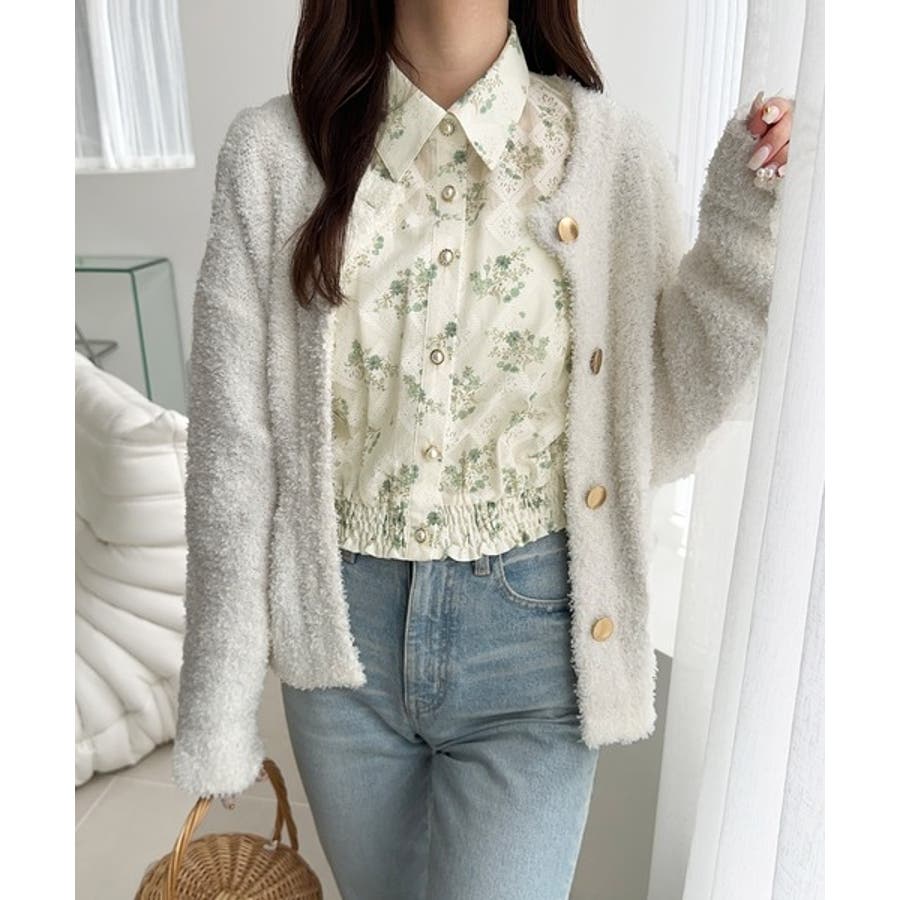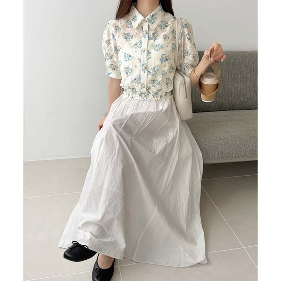 1枚でぱっと華やかになるレディライクな花柄ブラウス。