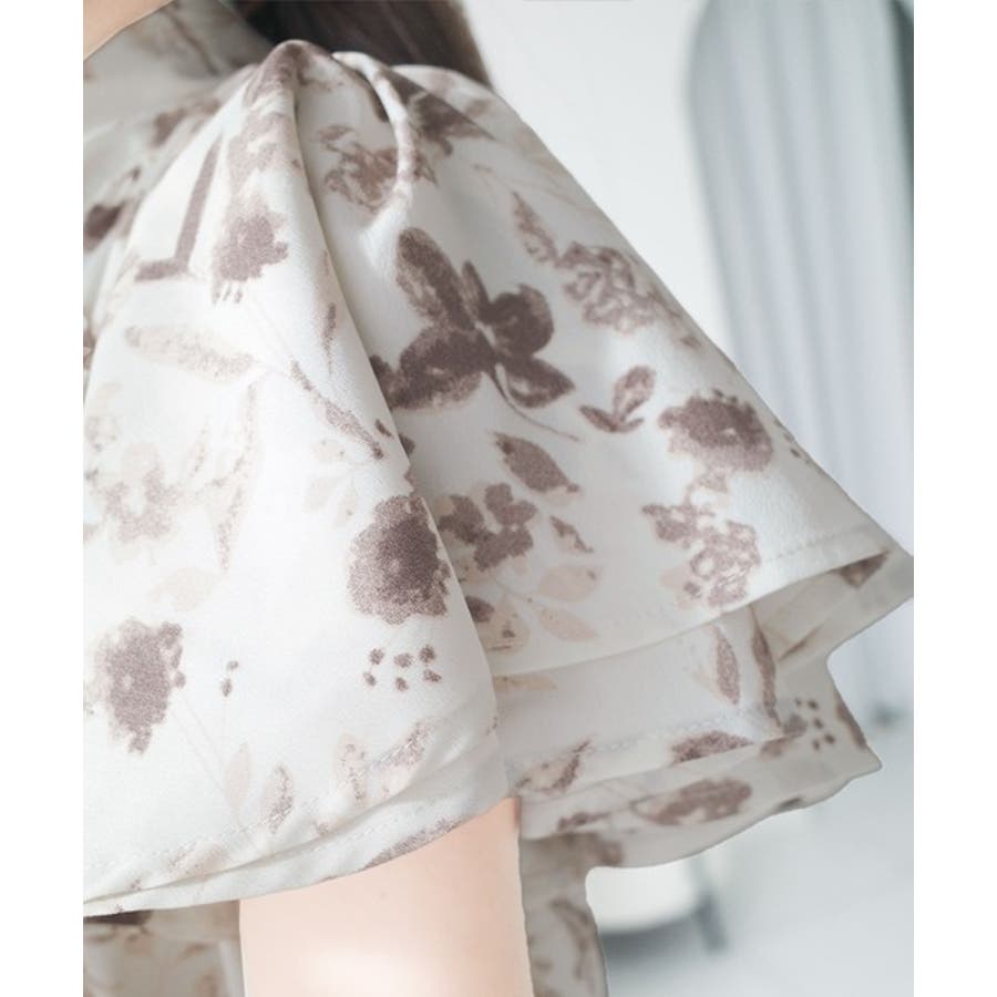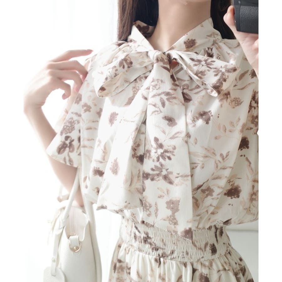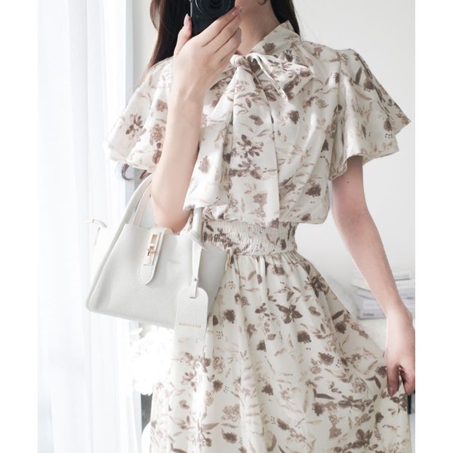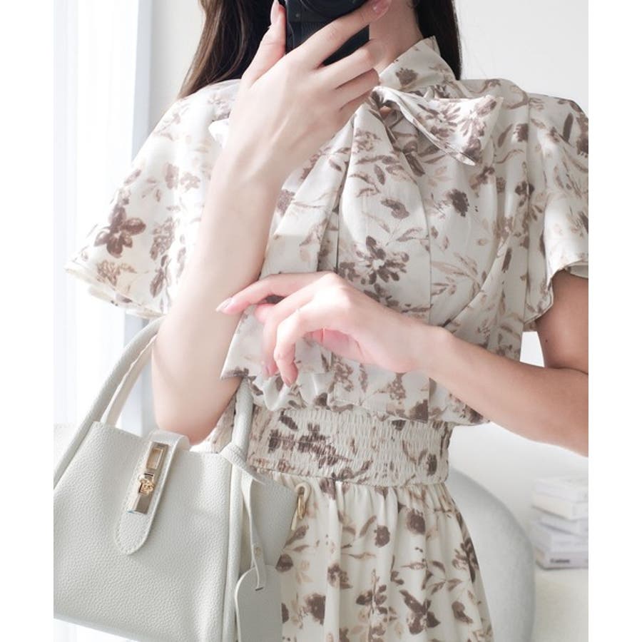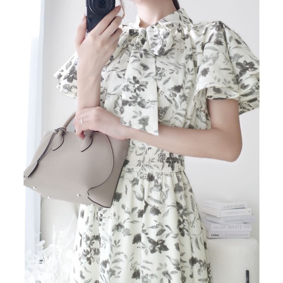 【mily bilet】可憐な大人の品格。ウエストシャーリングボウタイ花柄フリル…