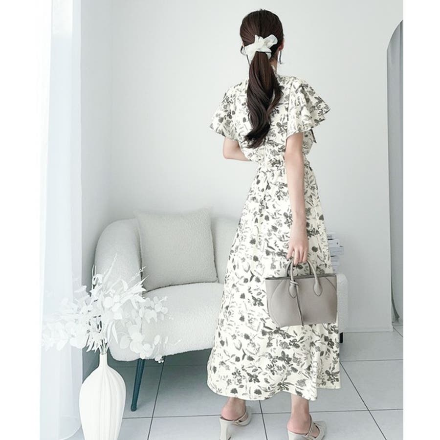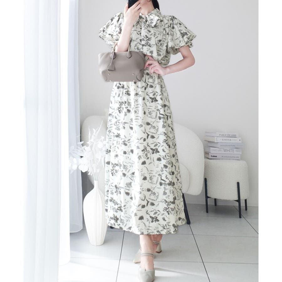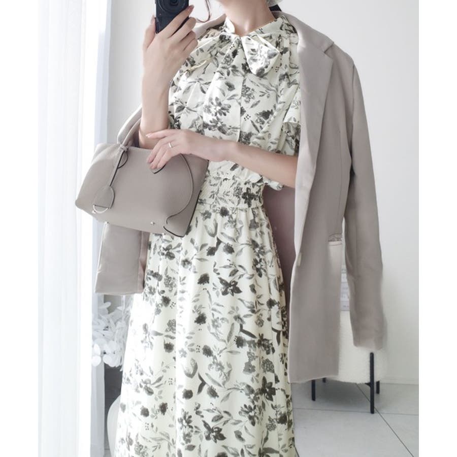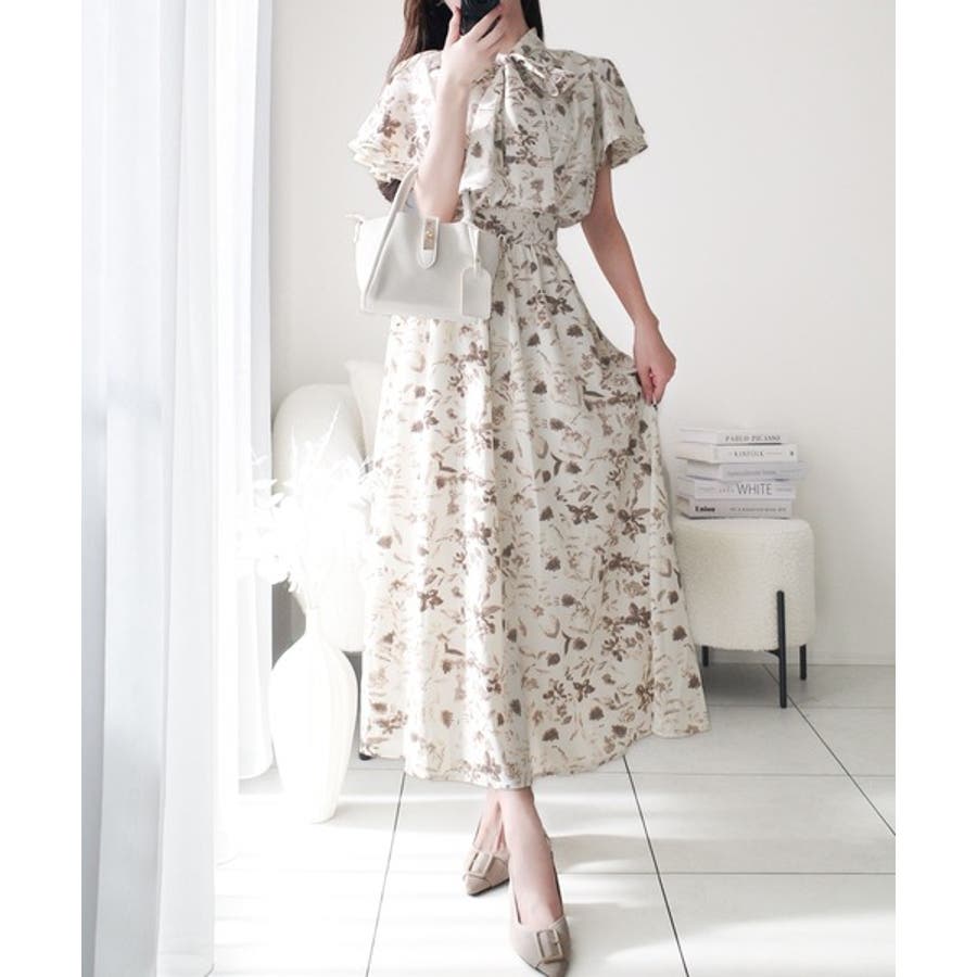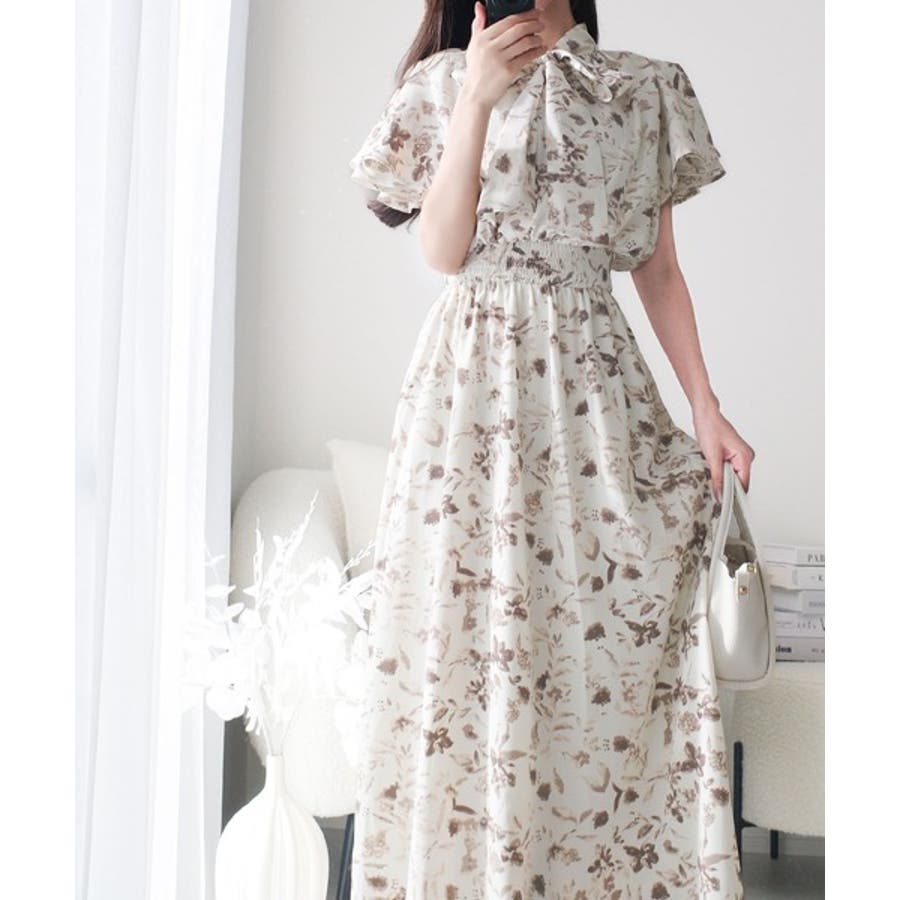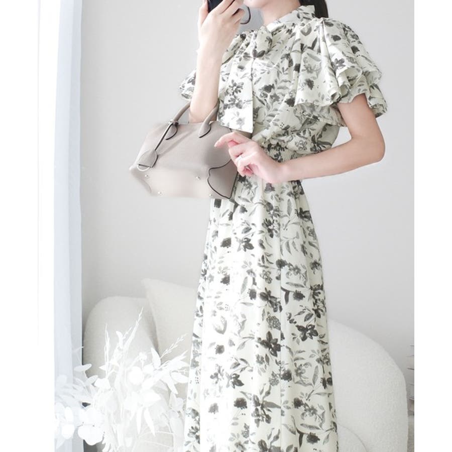 ボウタイ花柄フリル袖ワンピースの登場!!