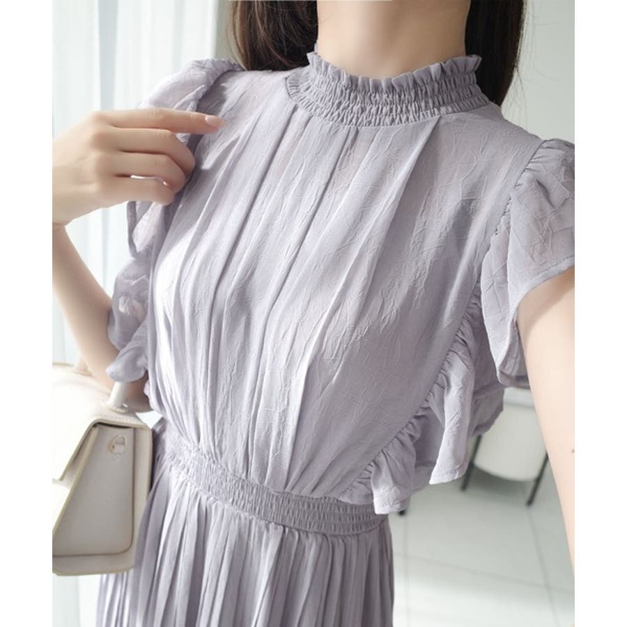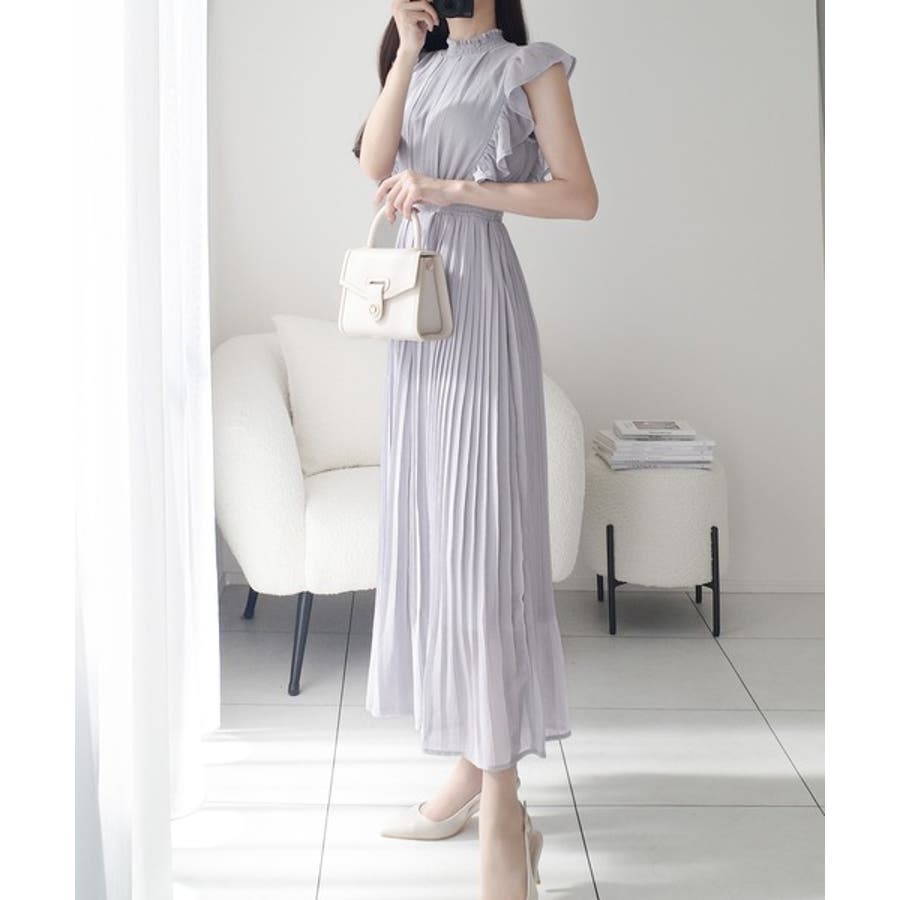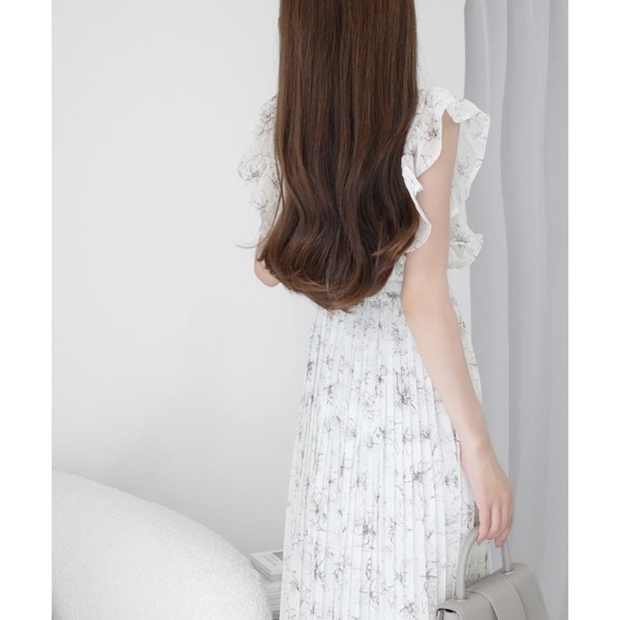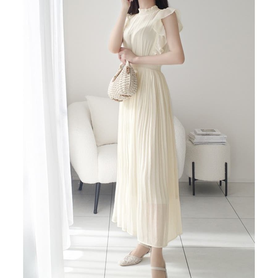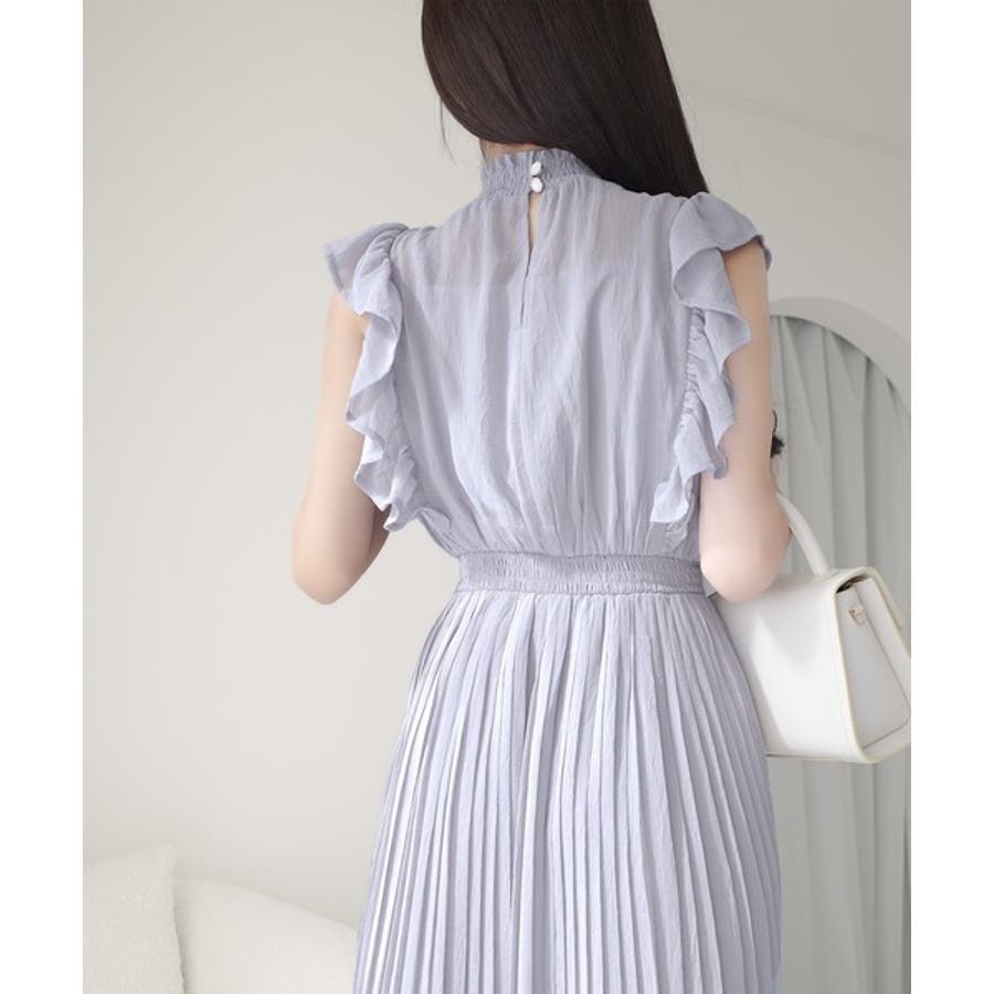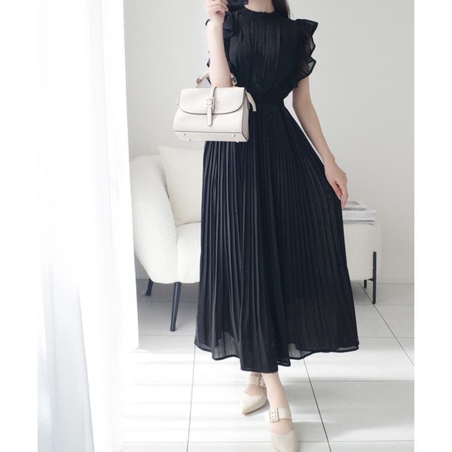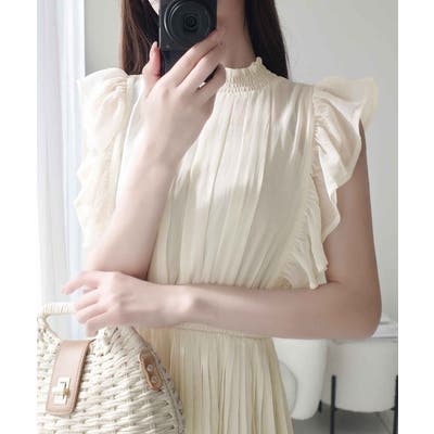 【mily bilet】ふんわり揺れる可愛さ。プリーツ加工シアーフリルワンピース