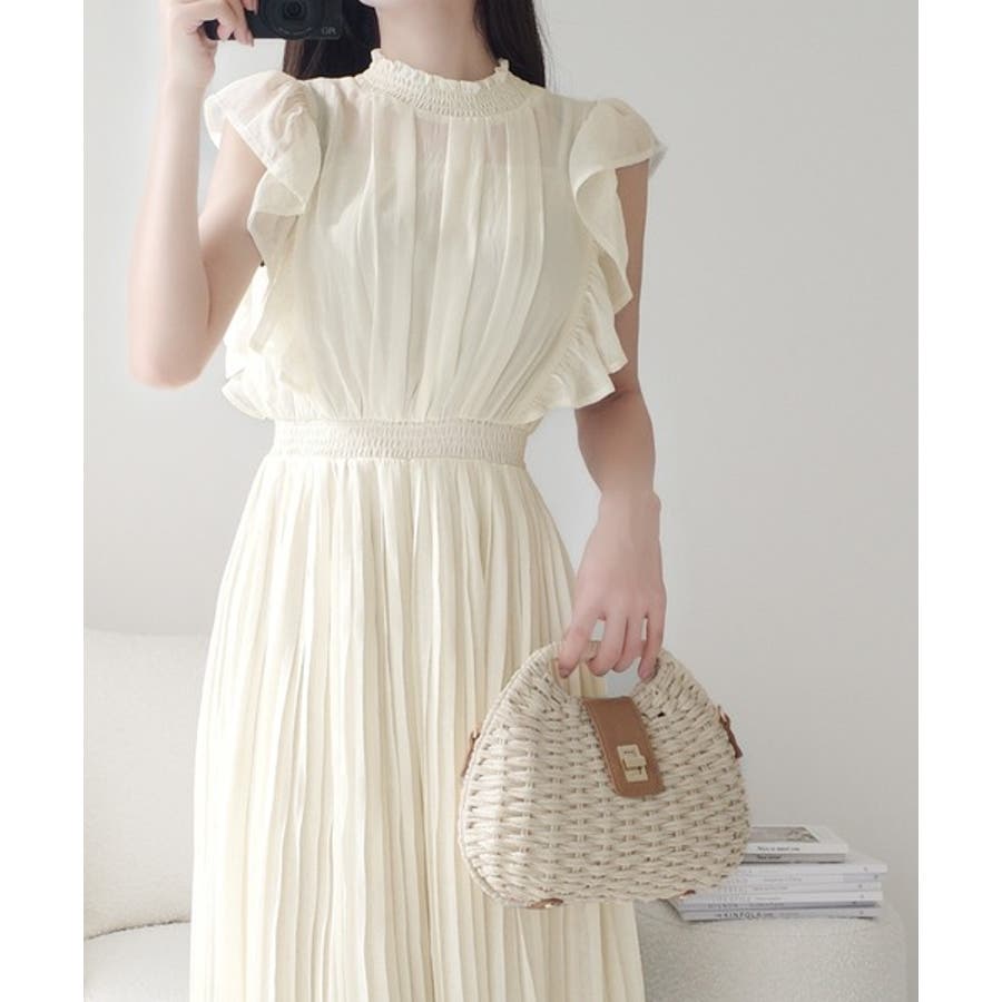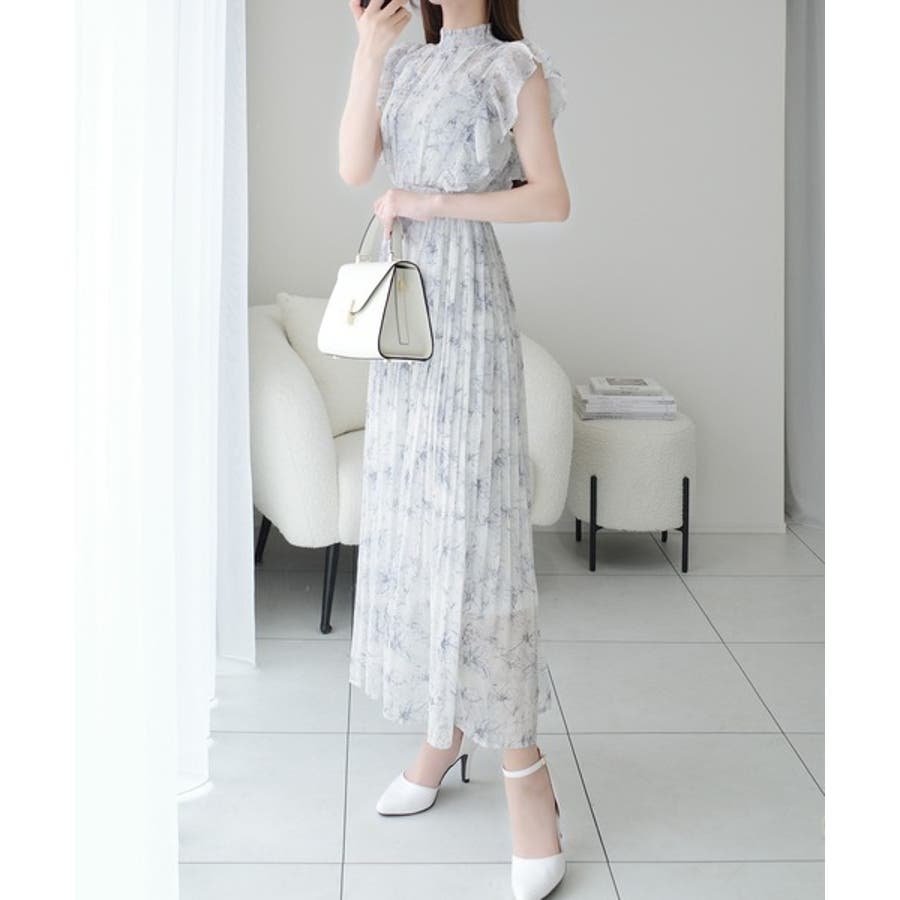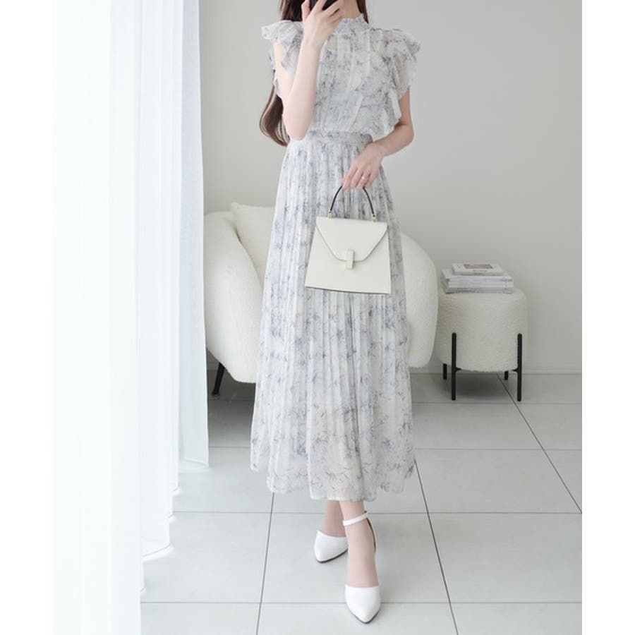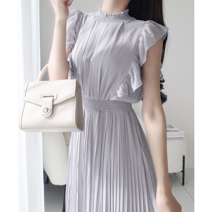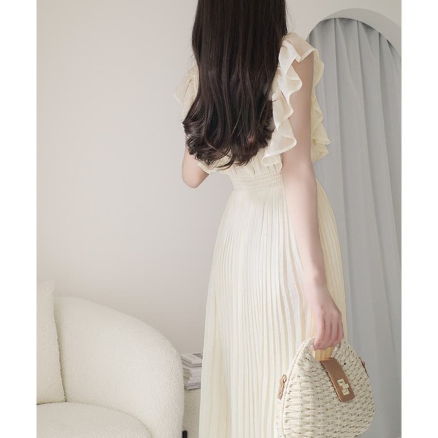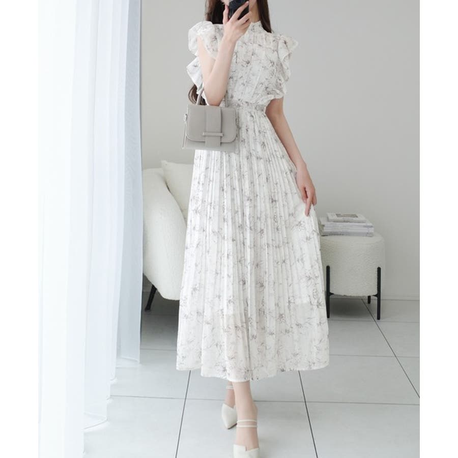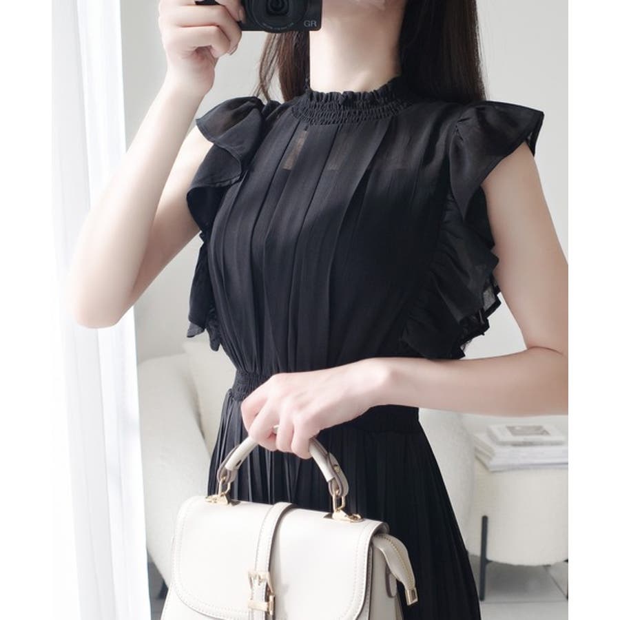 【mily bilet】ふんわり揺れる可愛さ。プリーツ加工シアーフリルワンピース