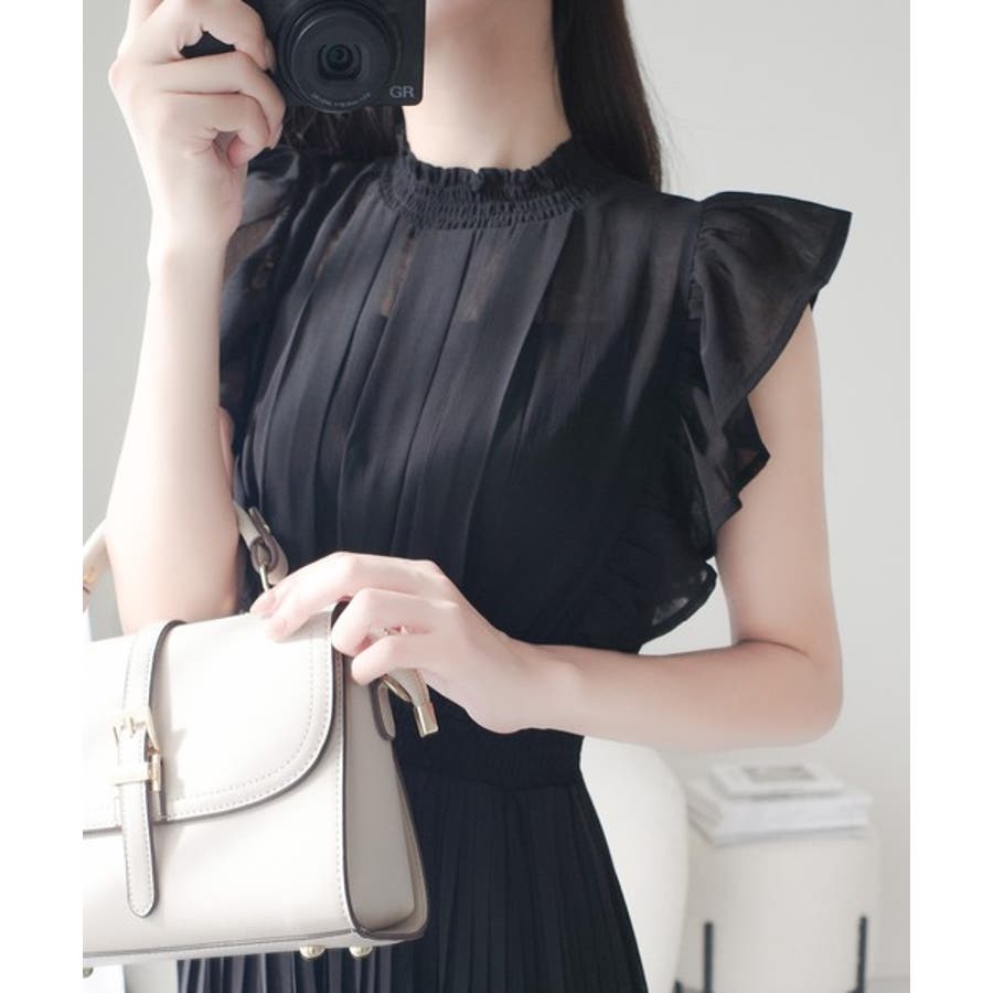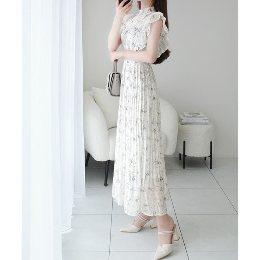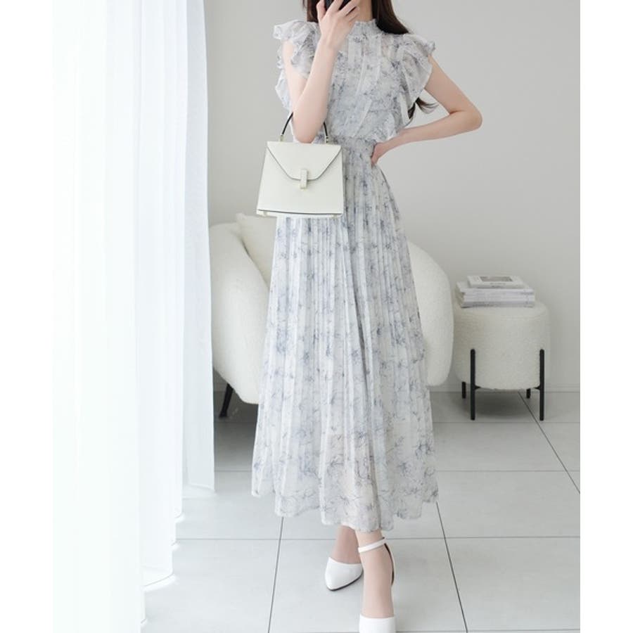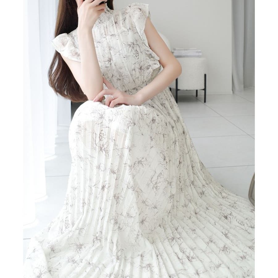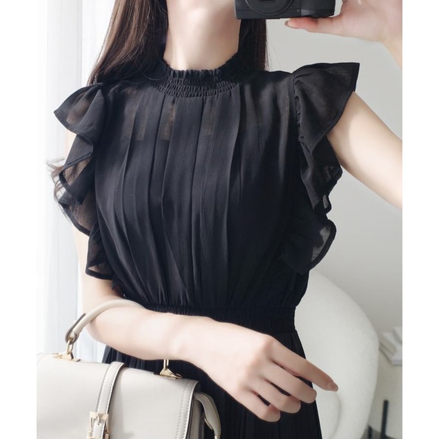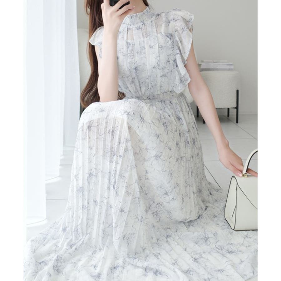 【mily bilet】ふんわり揺れる可愛さ。プリーツ加工シアーフリルワンピース