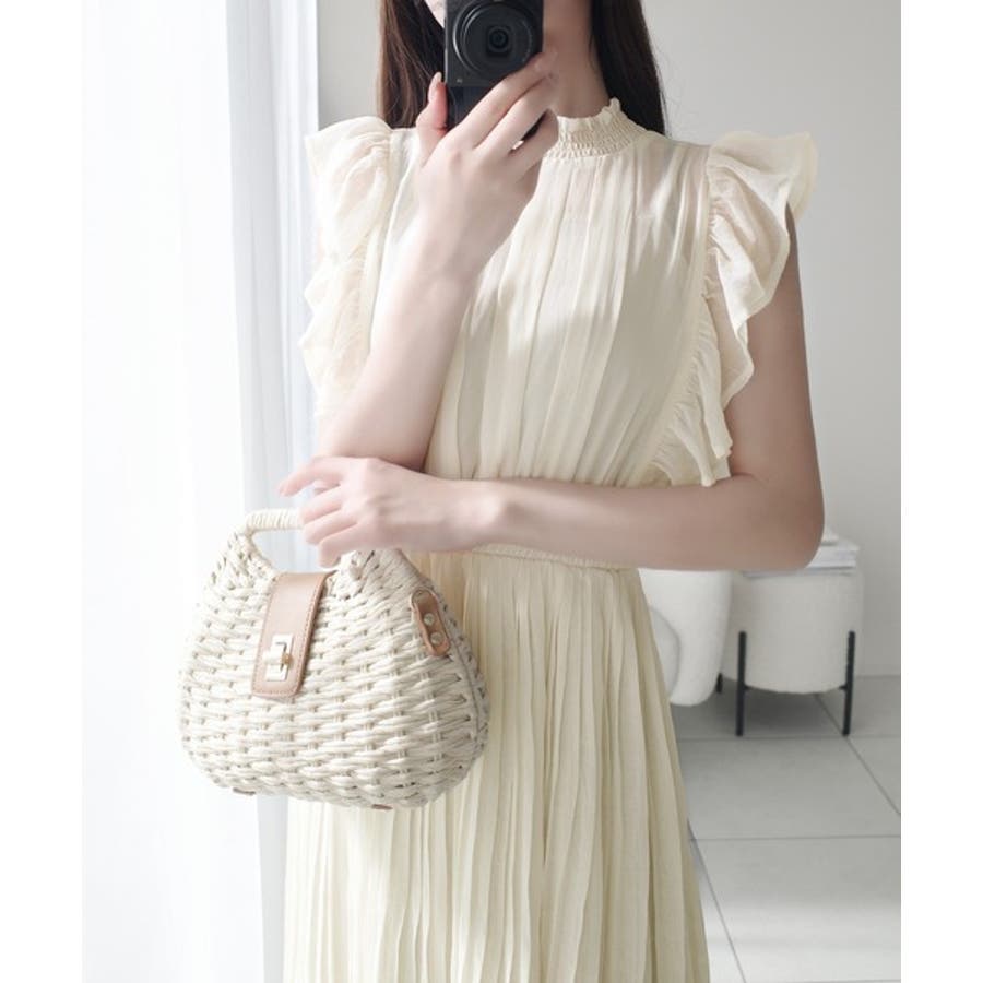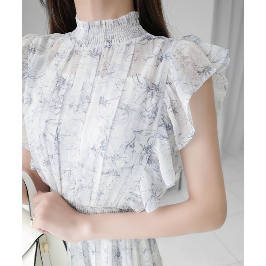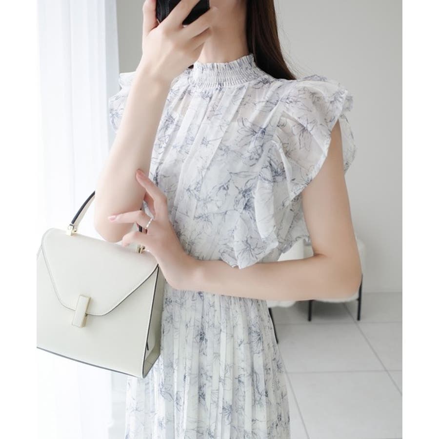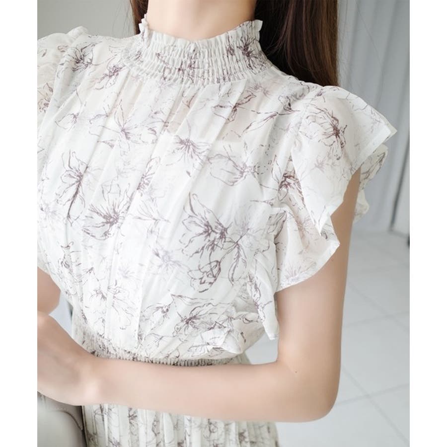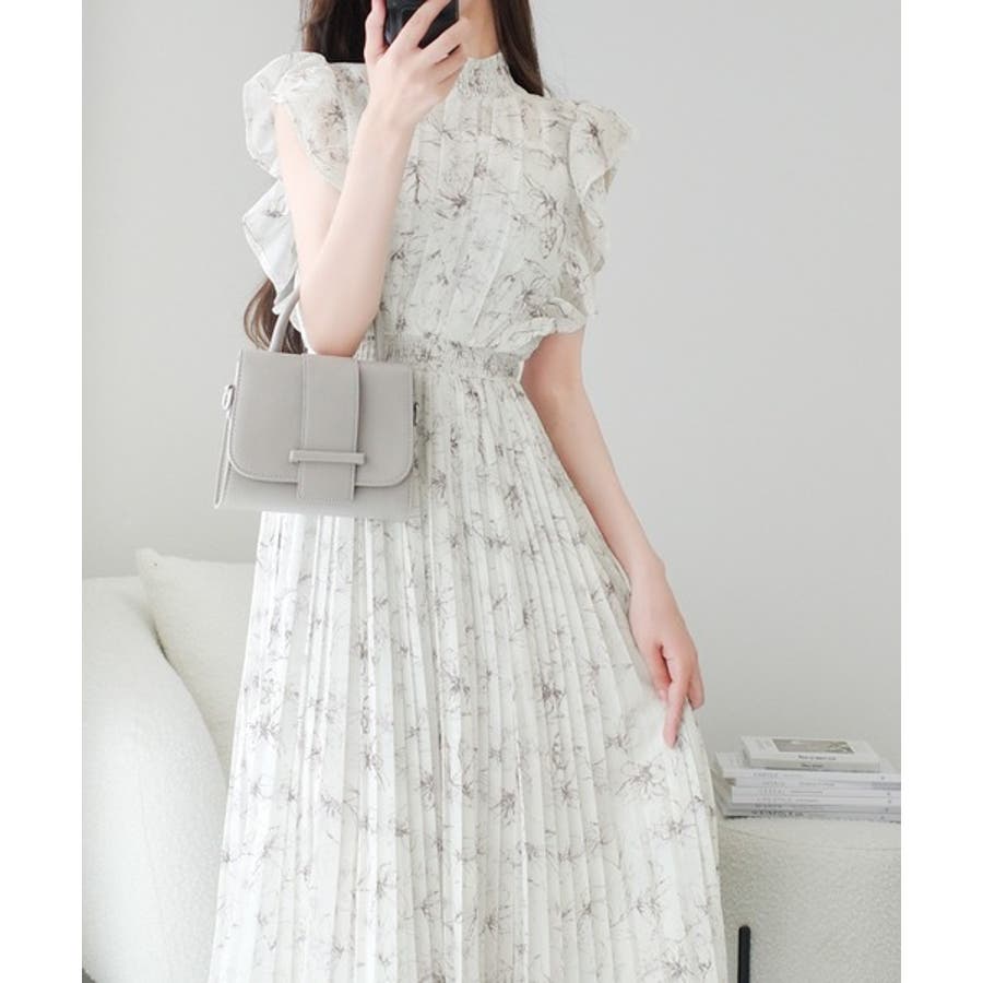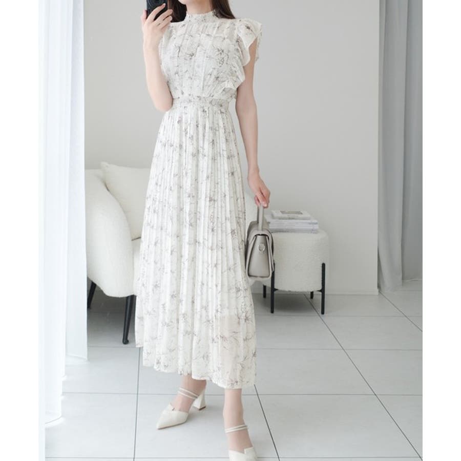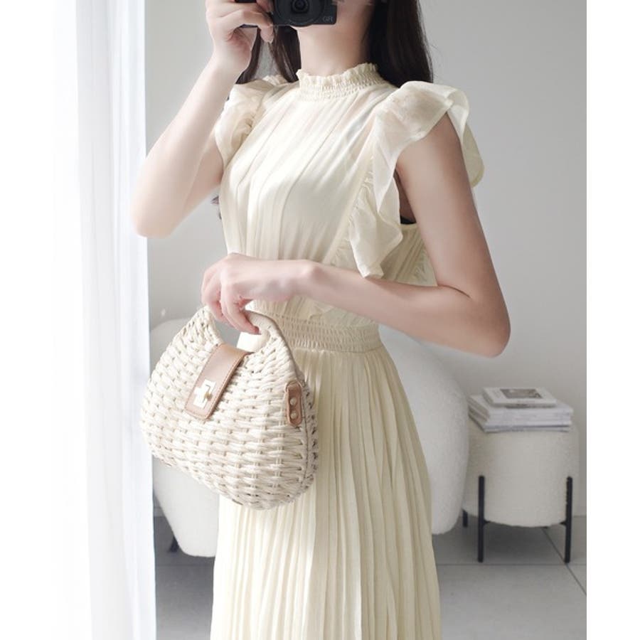 【mily bilet】ふんわり揺れる可愛さ。プリーツ加工シアーフリルワンピース