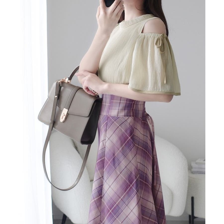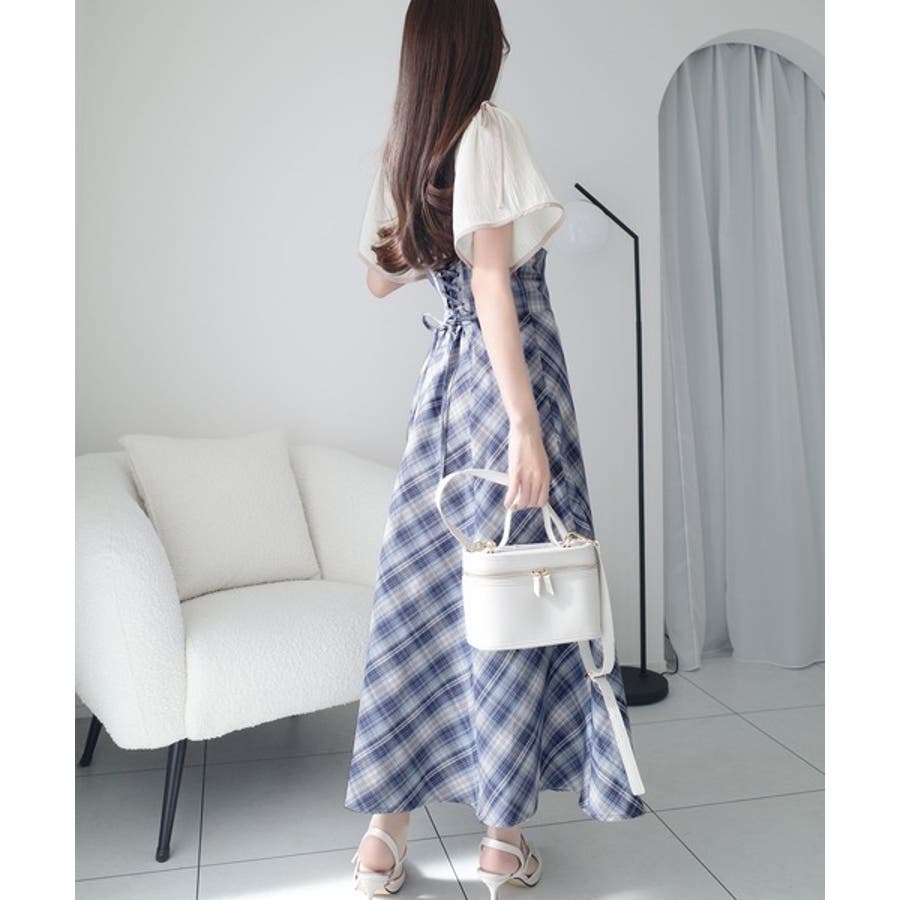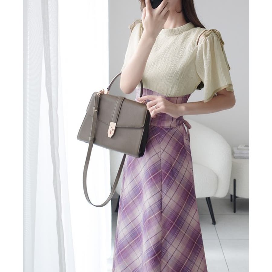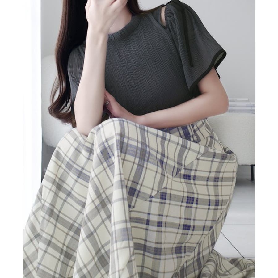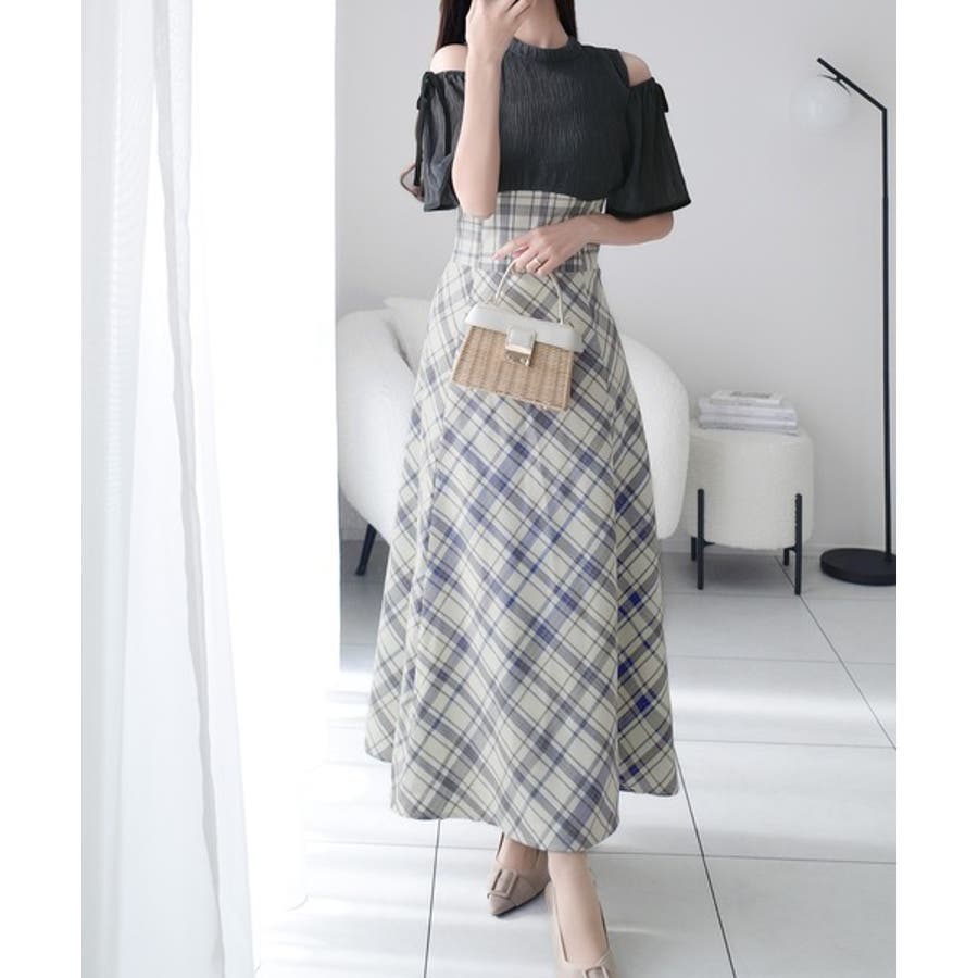 肩開きプリーツブラウスドッキングチェックワンピースは、春夏のさわやかな日々にぴったりのアイテムです。