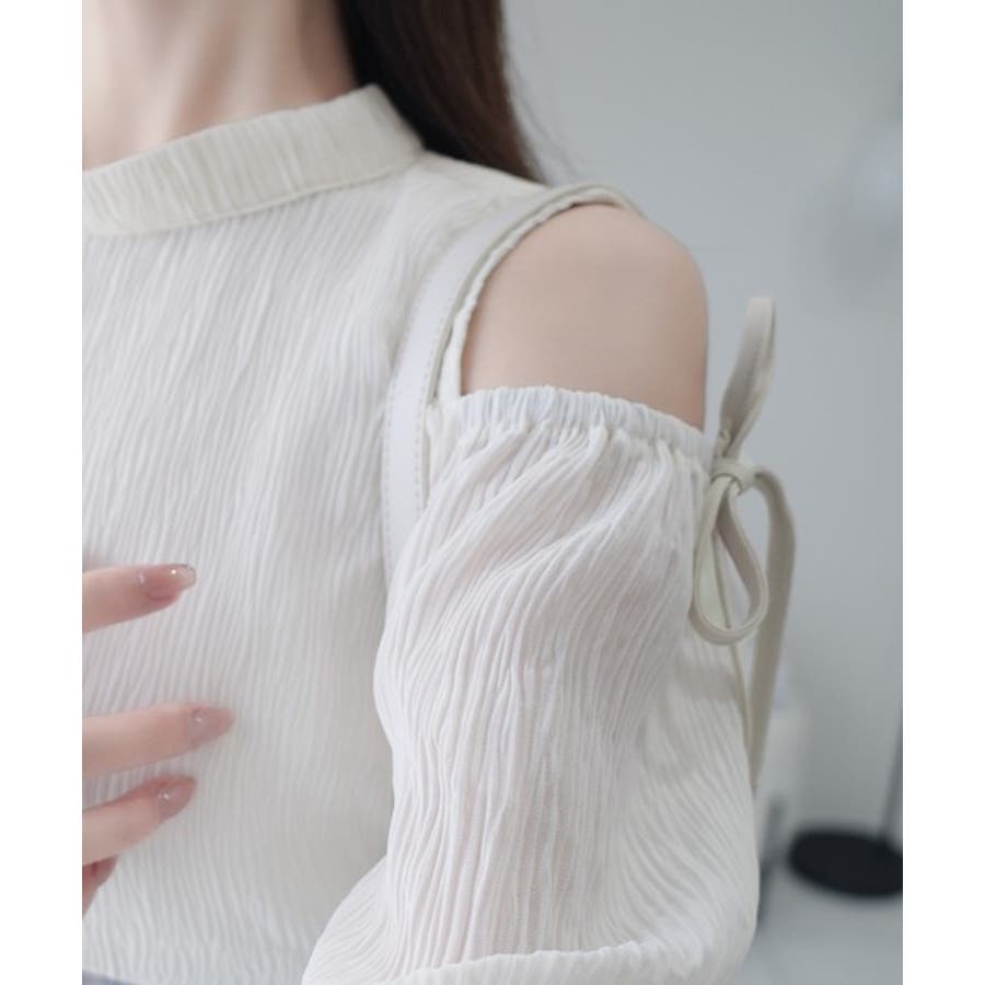 【mily bilet】センス溢れるデザイン。肩開きプリーツブラウスドッキングチ…